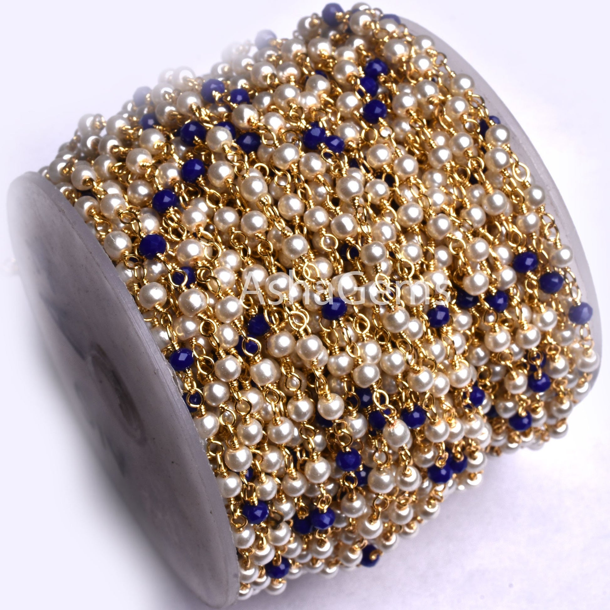 1,10,25,50 foot Bulk Roll Rosary Chain Pearl Blue Lapis Hydro Faceted Rondelle Beads Chain Multi Color Gold Plated Wire Beaded Chain Rosary