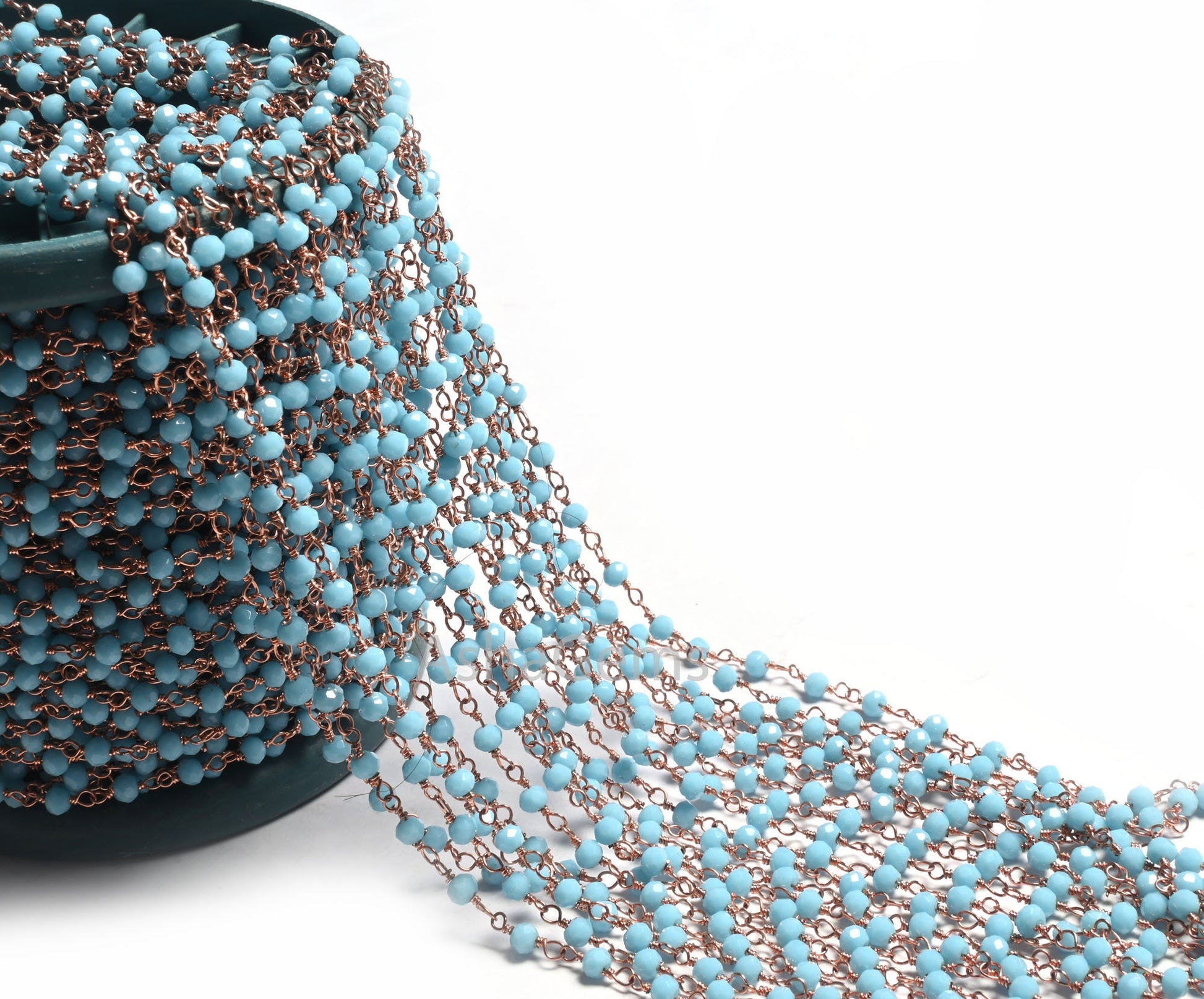 1,3,10,50 Foot Blue Turquoise Hydro Rondelle Faceted Beads Rosary Chain Rose Gold Plated Wire Wrap Chain Jewelry Making Beaded Rosary Chains