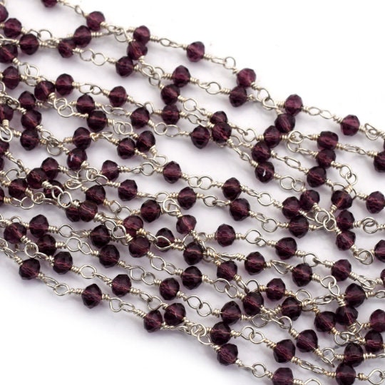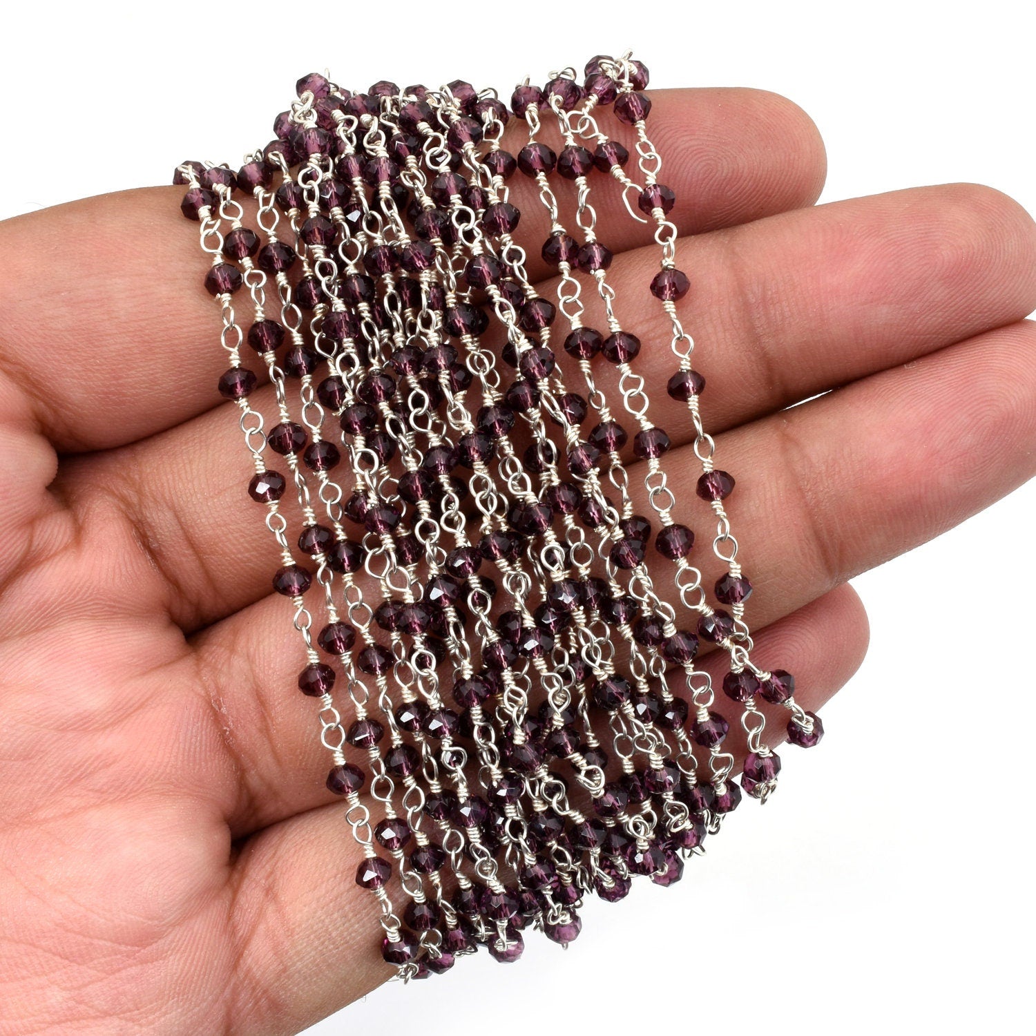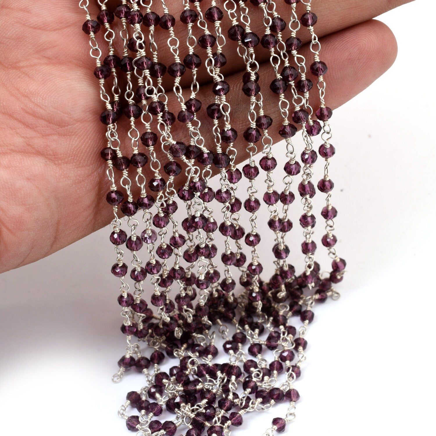 1,3,5,10 Feet Roll Bulk,Silver Plated, Faceted Rondelle Garnet Hydro Beads Rosary Chain Beaded Jewelry Making Finding Wire Wrapped Chain 3mm