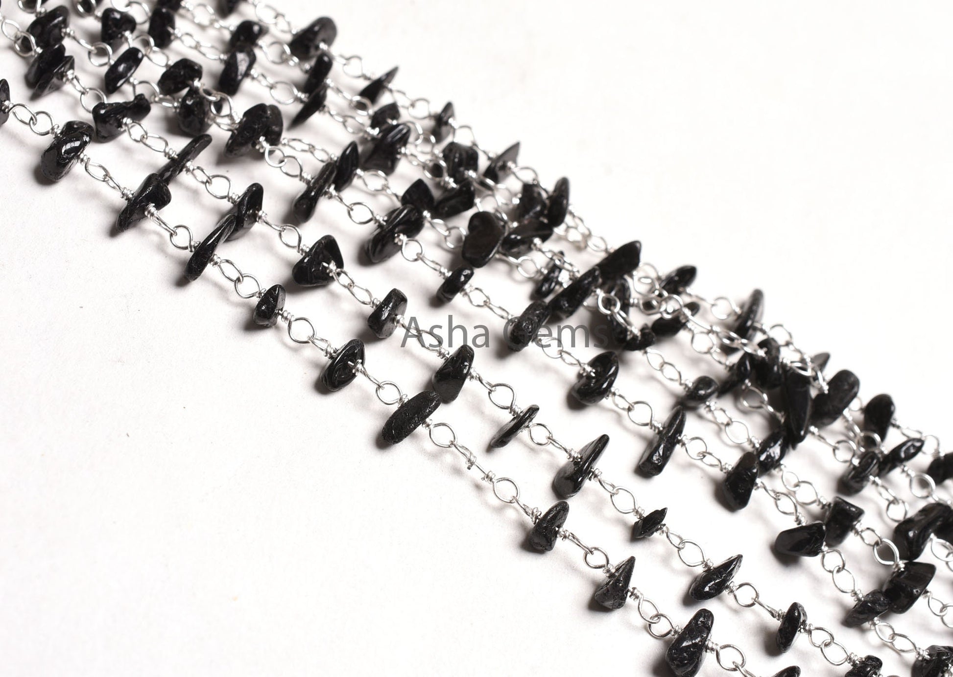 1,3,5,25 Foot, Natural Black Tourmaline uncut Chip Beads Rosary Chain Silver Plated wire Bulk Roll Tourmaline Beaded Rosary Chain For Crafts