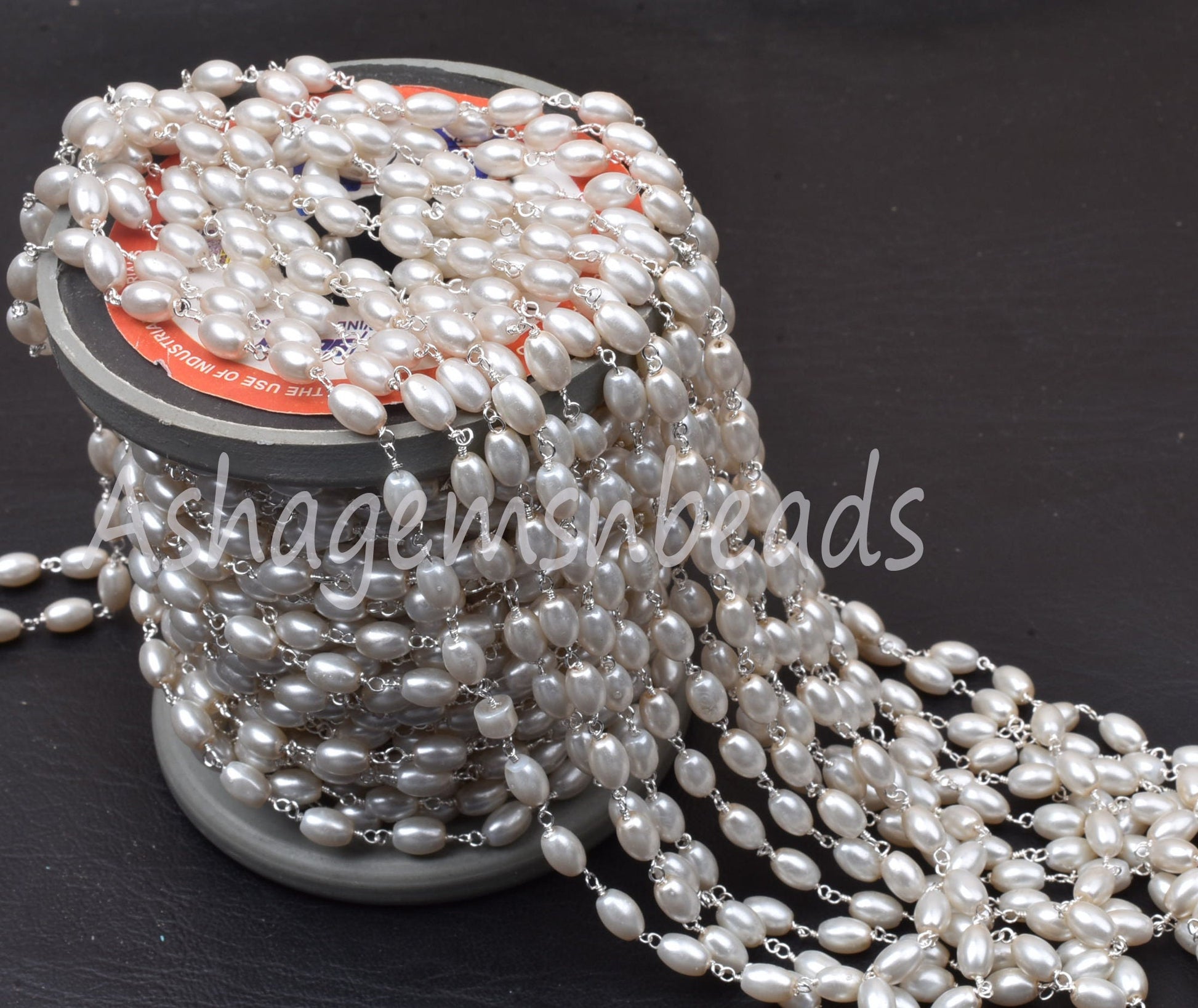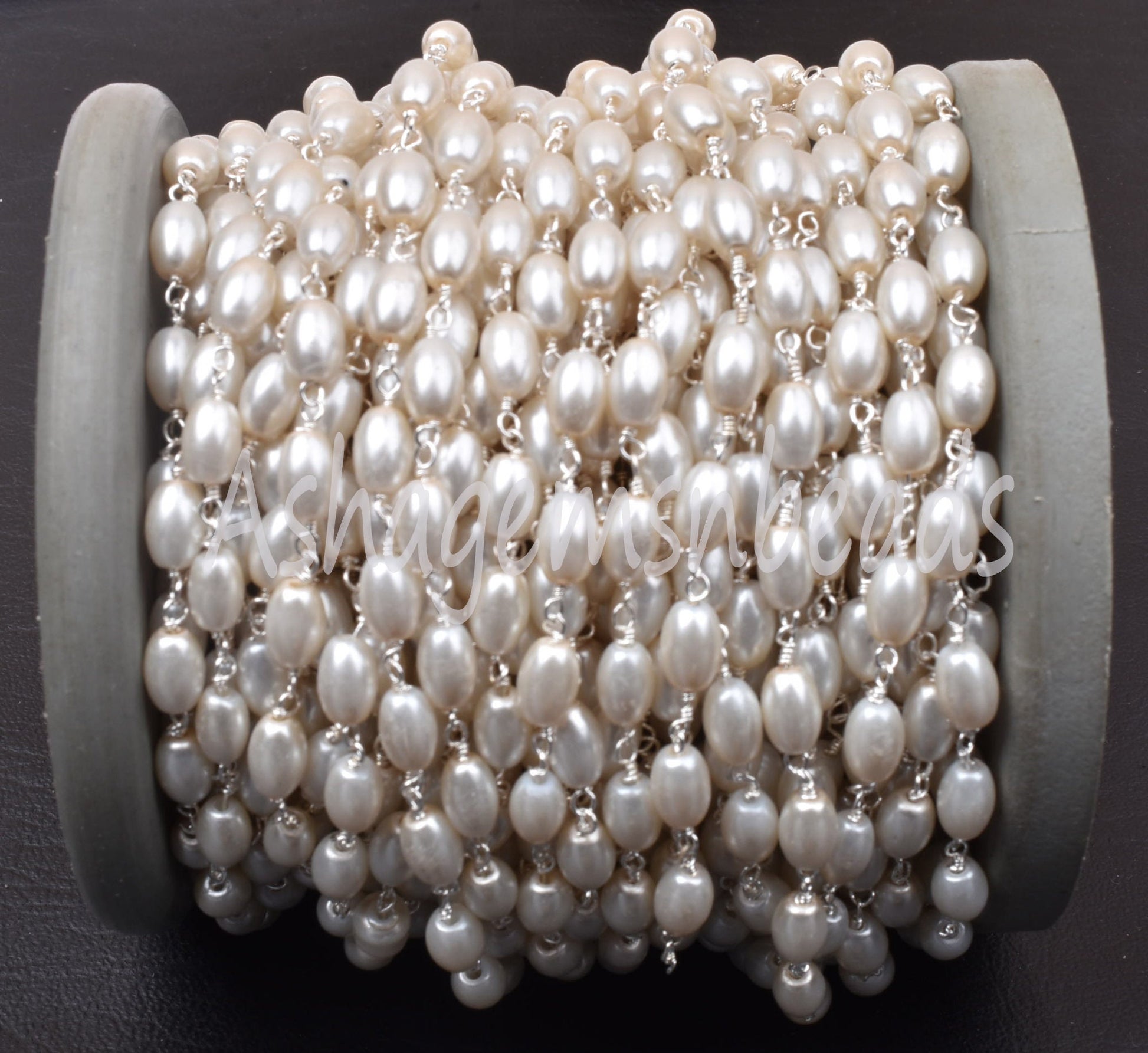 1,3,5,25 Ft Beautiful Rice Pearl Hydro Smooth Beaded Rosary Chain Pearl Hydro Silver Gold Plated Chain,Bulk Roll Wire Wrap Rosary Chain SALE