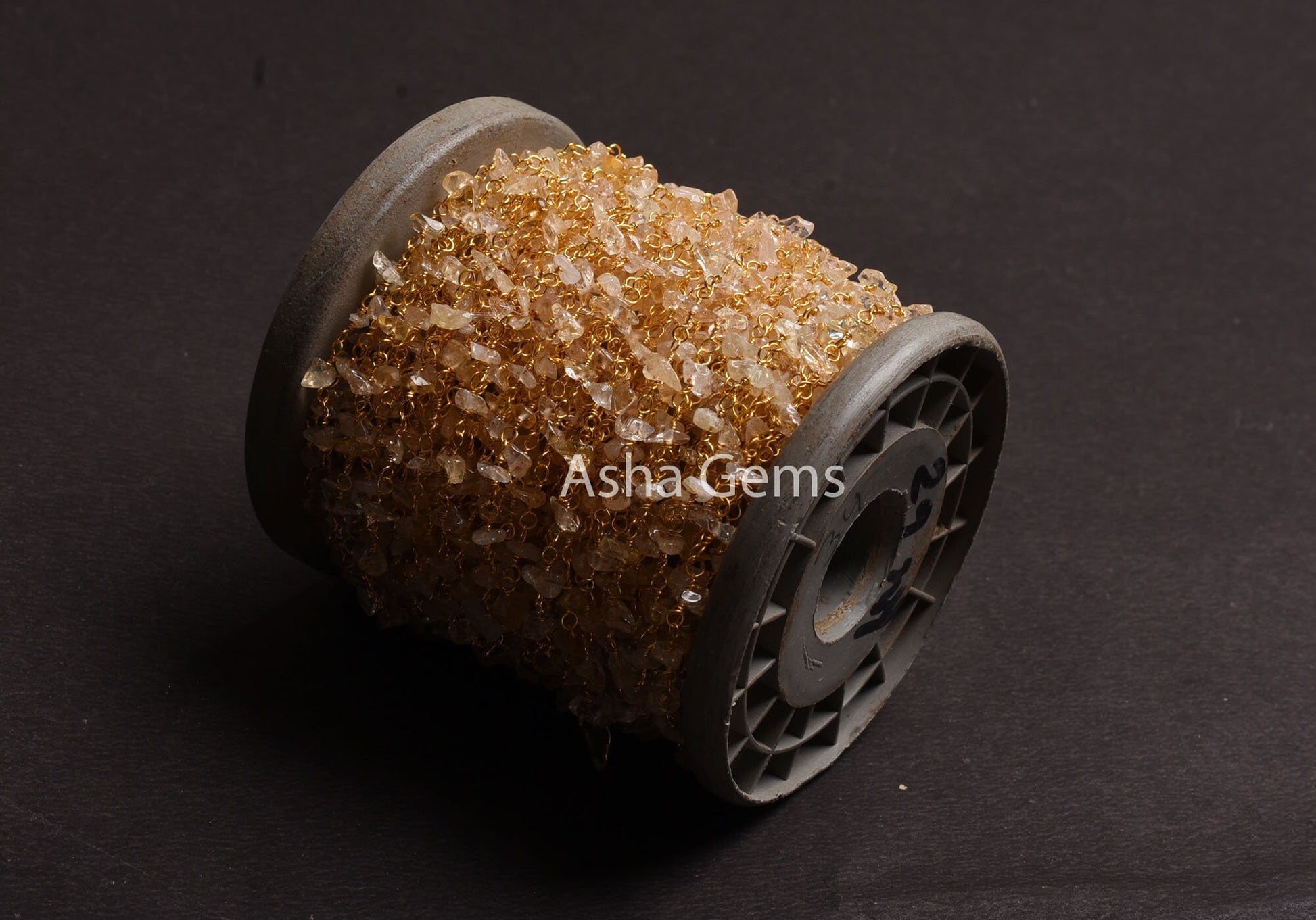 1,5,10,25 Feet Natural citrine Uncut Chip Beads Chain Gold Silver Plated Wire Wrapped Bulk Rosary Chain Citrine Uncut Beaded Chain Craft