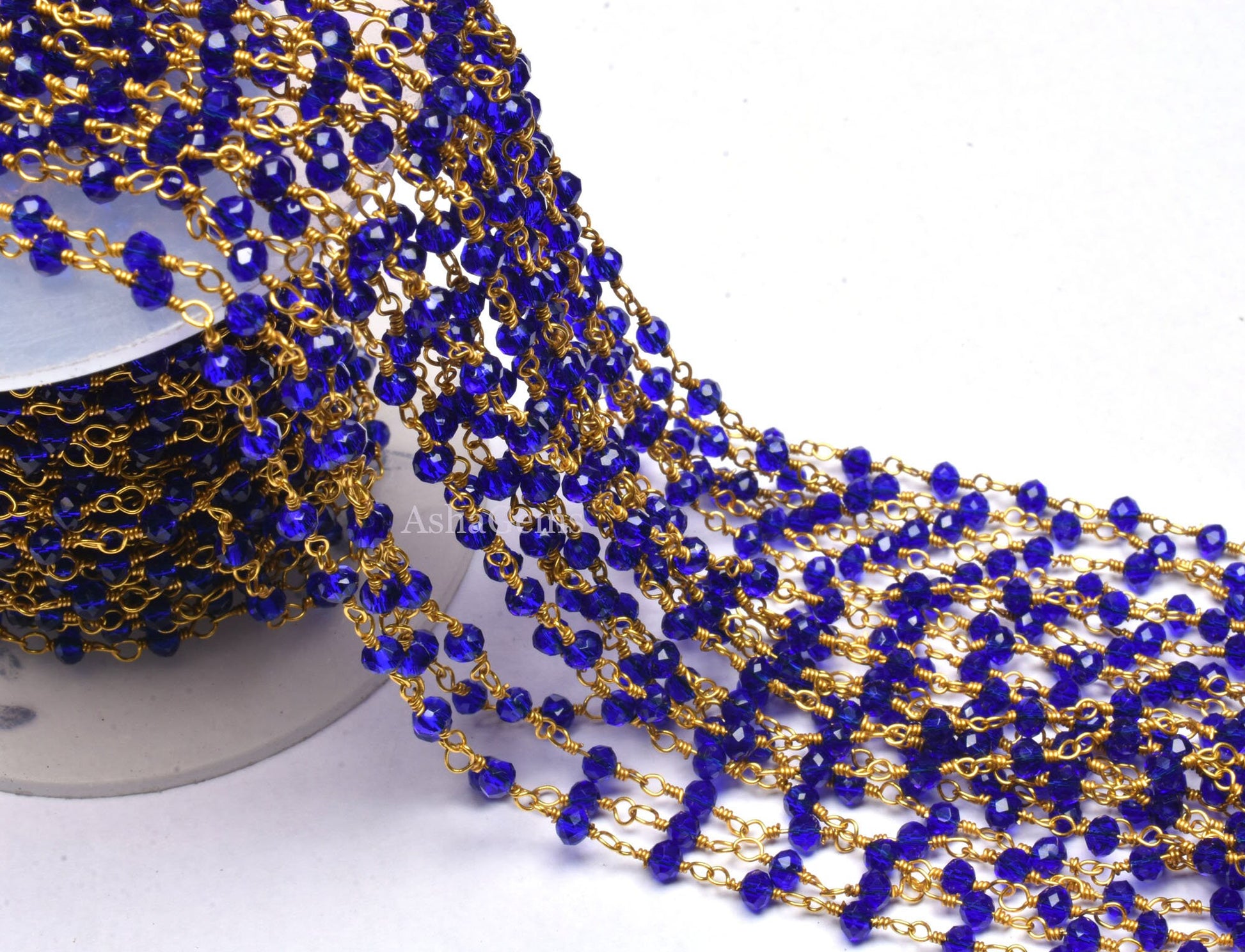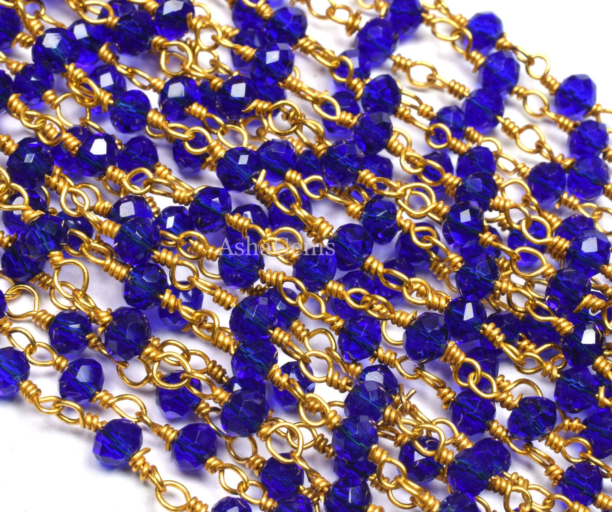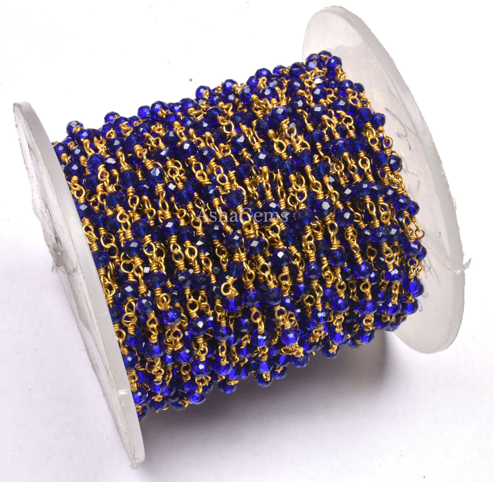 1,5,10,50 Feet Royal Blue Quartz Hydro Rosary Chain Gold Plated Wire Wrap Faceted Rondelle Bead Chain 3-3.5 mm Handmade Rosary Chain Jewelry
