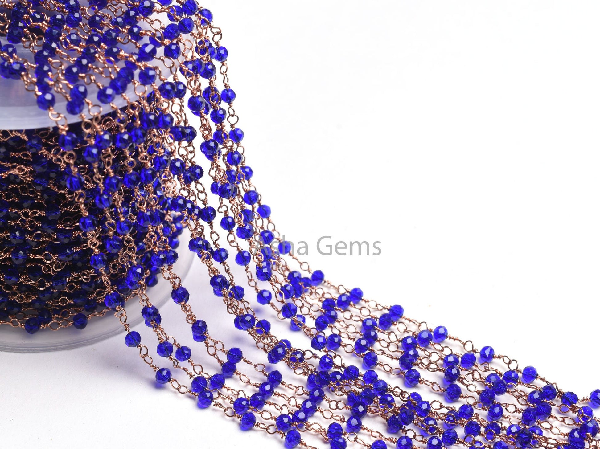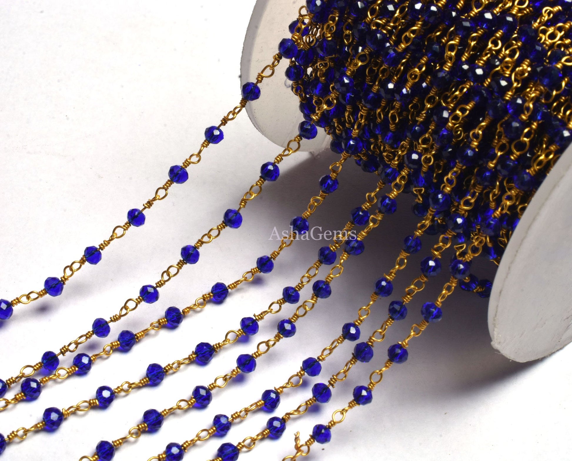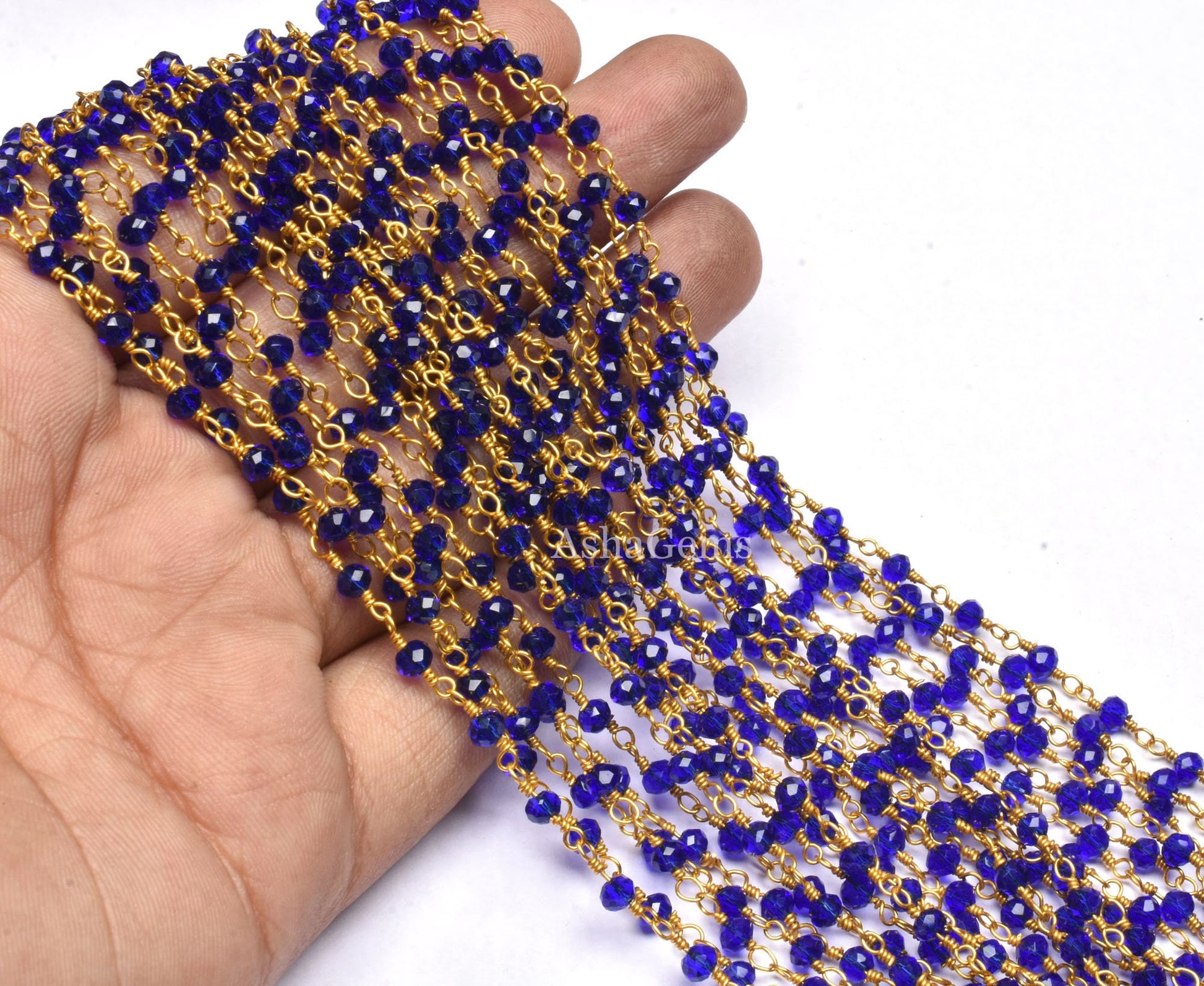1,5,10,50 Feet Royal Blue Quartz Hydro Rosary Chain Gold Plated Wire Wrap Faceted Rondelle Bead Chain 3-3.5 mm Handmade Rosary Chain Jewelry
