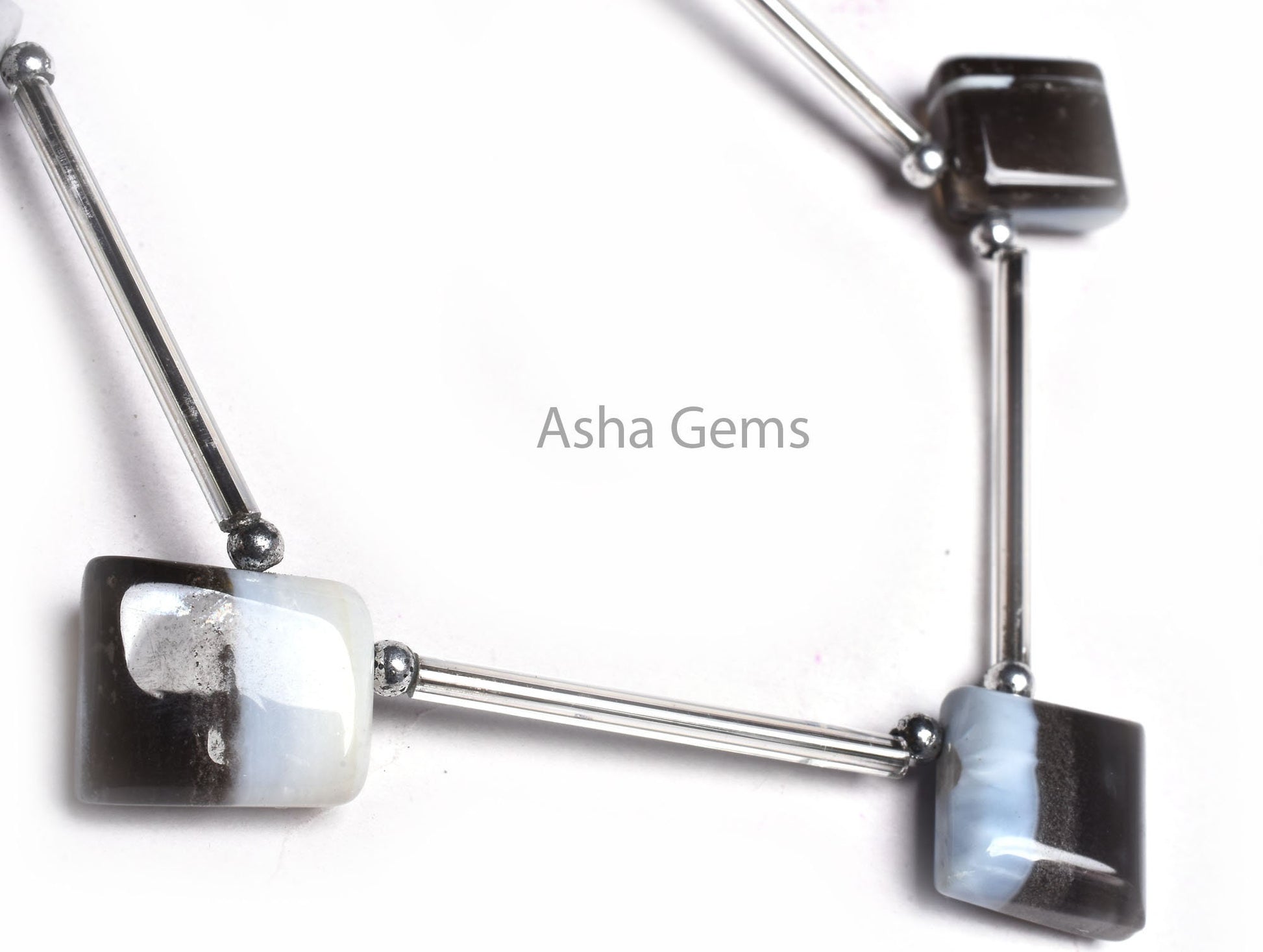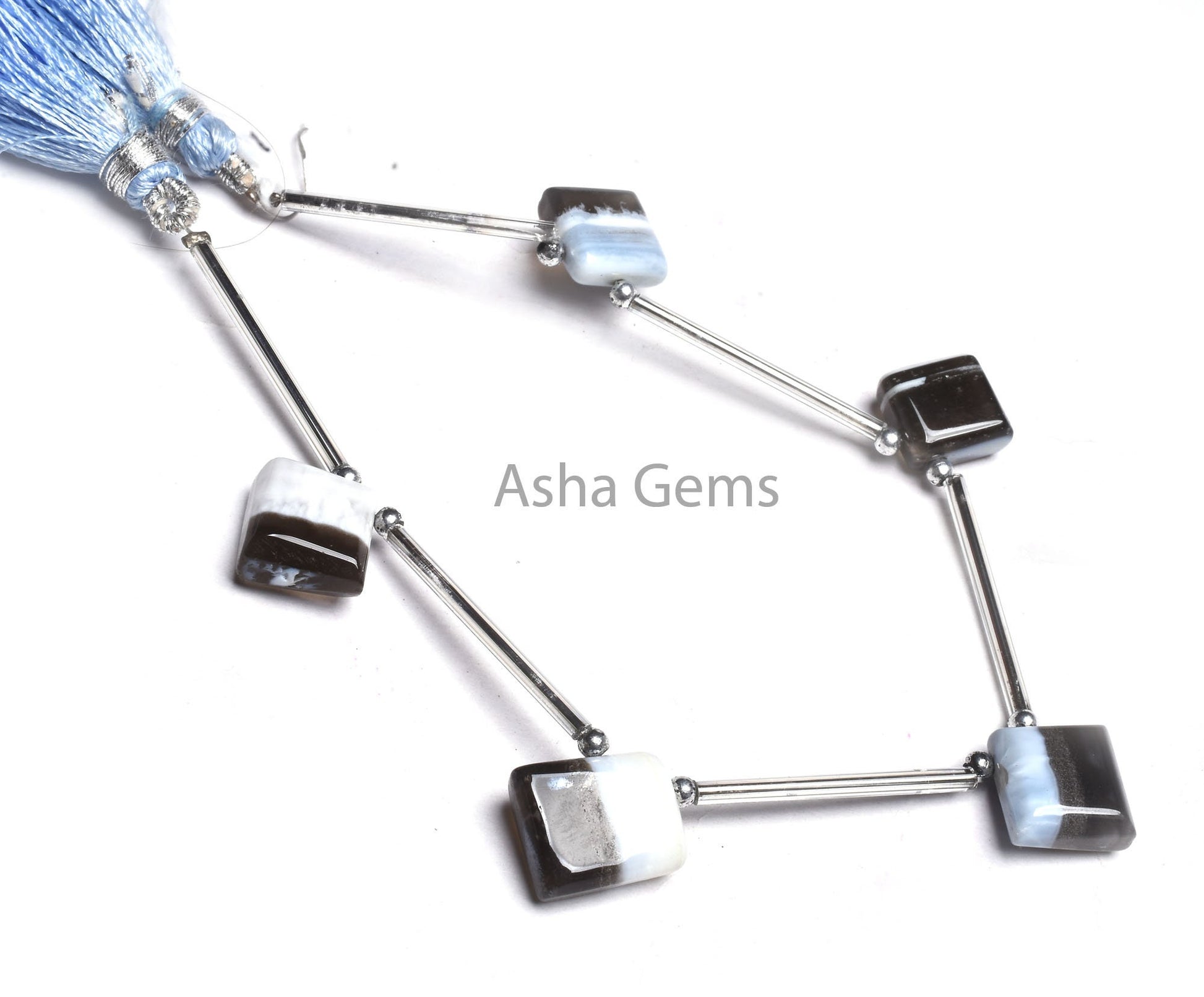 10-11 mm Blue Boulder Opal Fancy Square Shape Beads,5 Piece Strand Boulder Opal Side Drill Square Gemstone Beads Blue Opal Bead Jewelry SALE