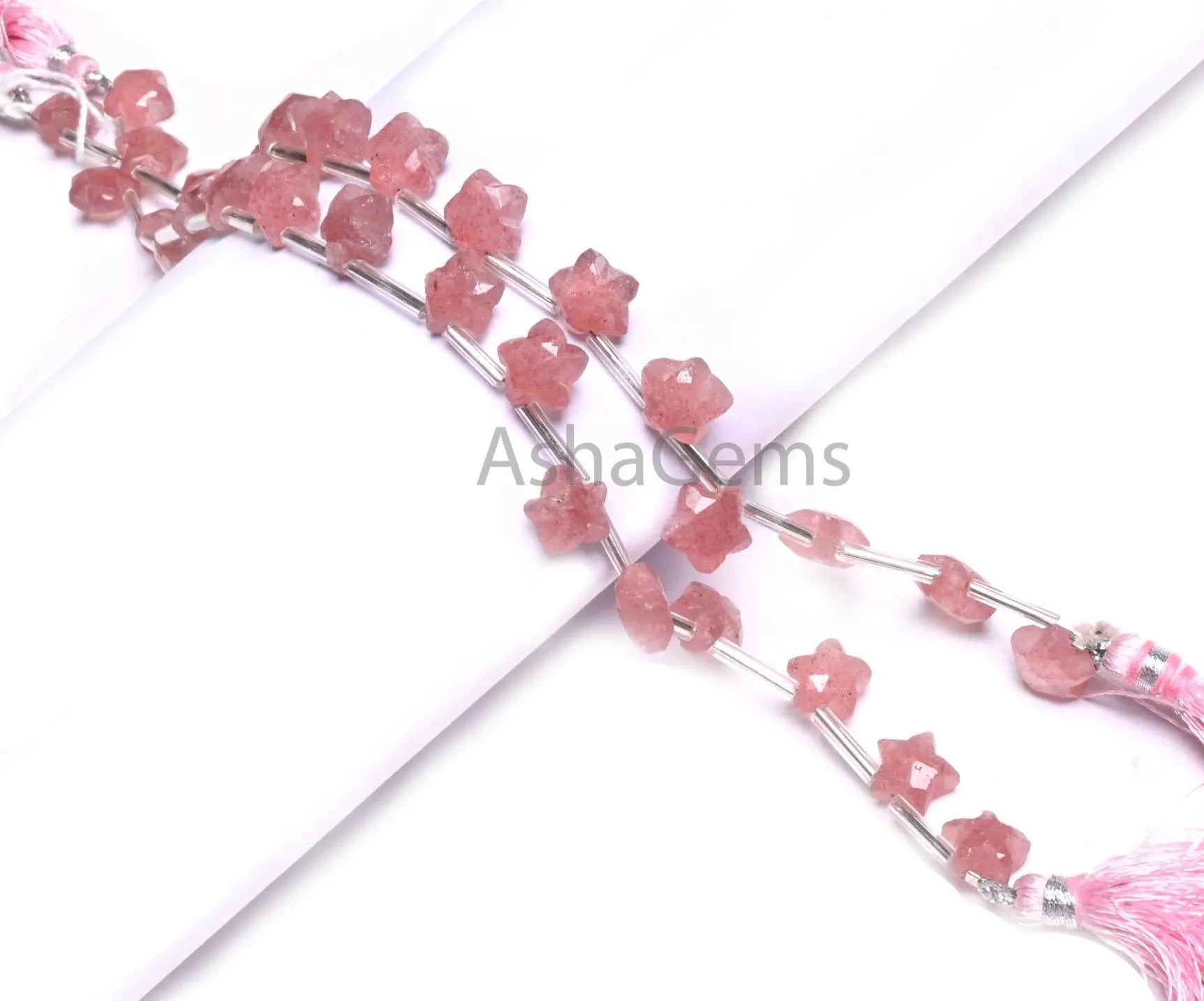 10 mm Natural Pink Strawberry Quartz Faceted Star Shape Carving Beads,8" Fine Beautiful Pink Strawberry Fancy Star Carved Bead Jewelry Craft (AG 18928)