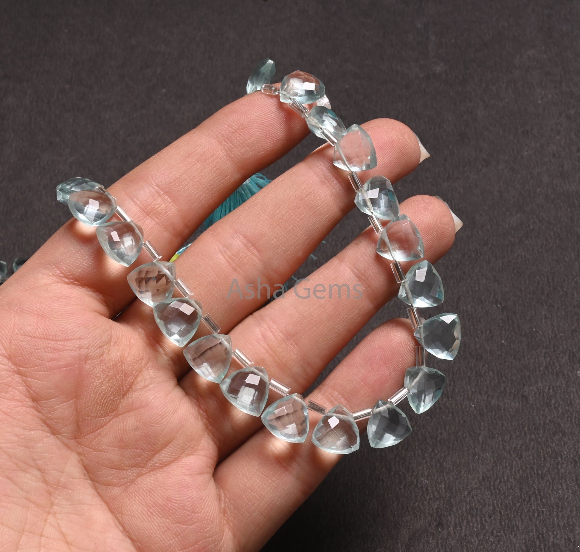 10mm AAA Quality Aqua Blue Hydro faceted Trillion Shape Beads,7.5" Aquamarine Color Hydro fancy Triangle Briolette Bead Jewelry Craft SALE