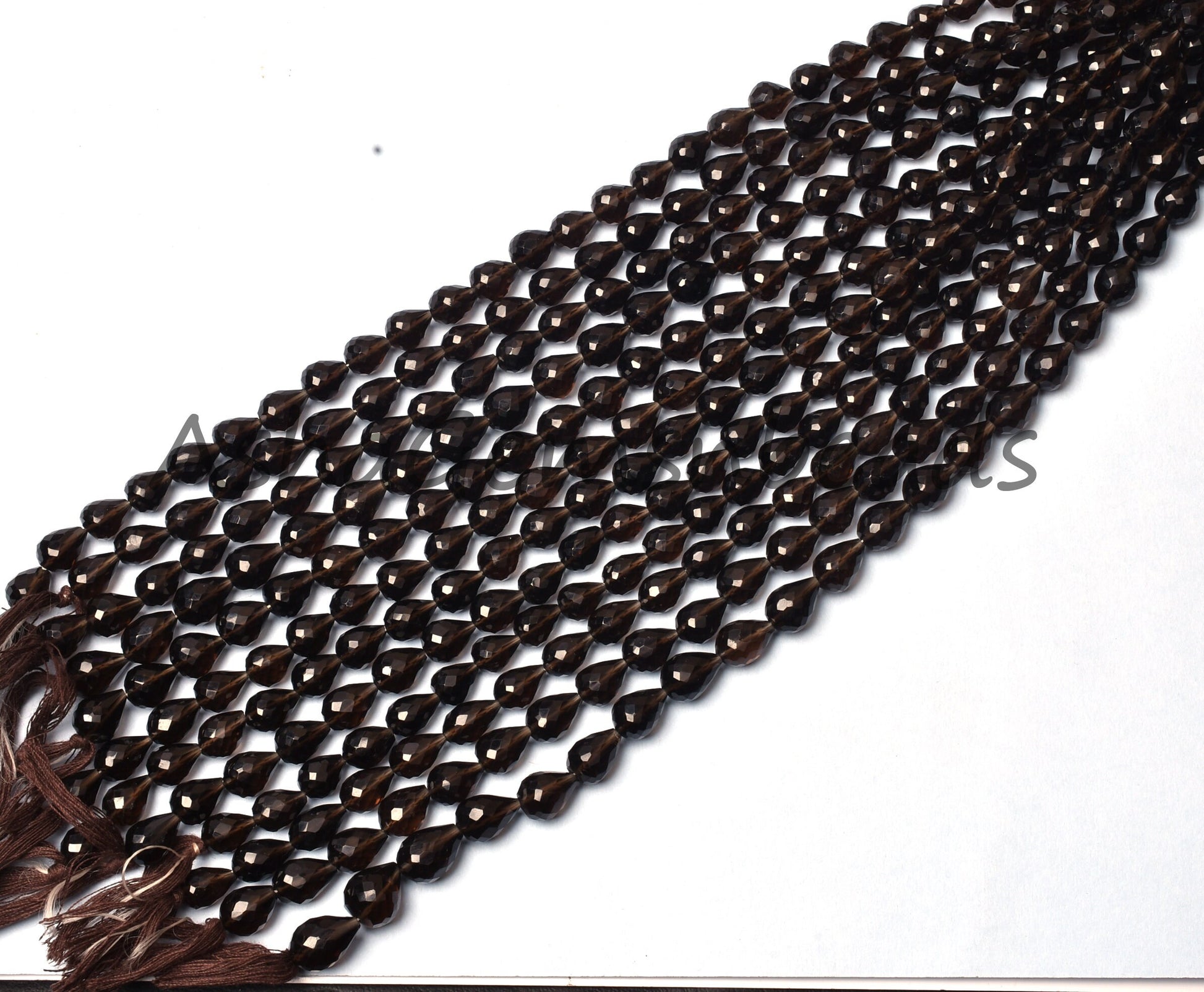 10"Strand Beautiful Smoky Quartz Faceted Drops Shape Gemstone Beads,Quartz Teardrop,7x10-8x11mm Smoky Drops Beads Jewelry Making Craft Sale