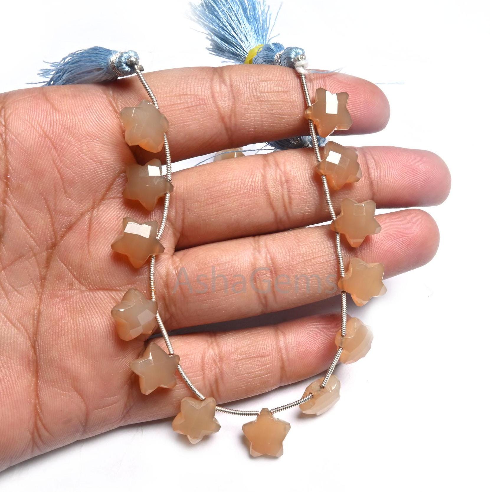 11 mm Beautiful Chalcedony Faceted Star Carving Beads, Shaded Gray Brown chalcedony Fancy Star Shape Carved handmade Gemstone Beads Jewelry