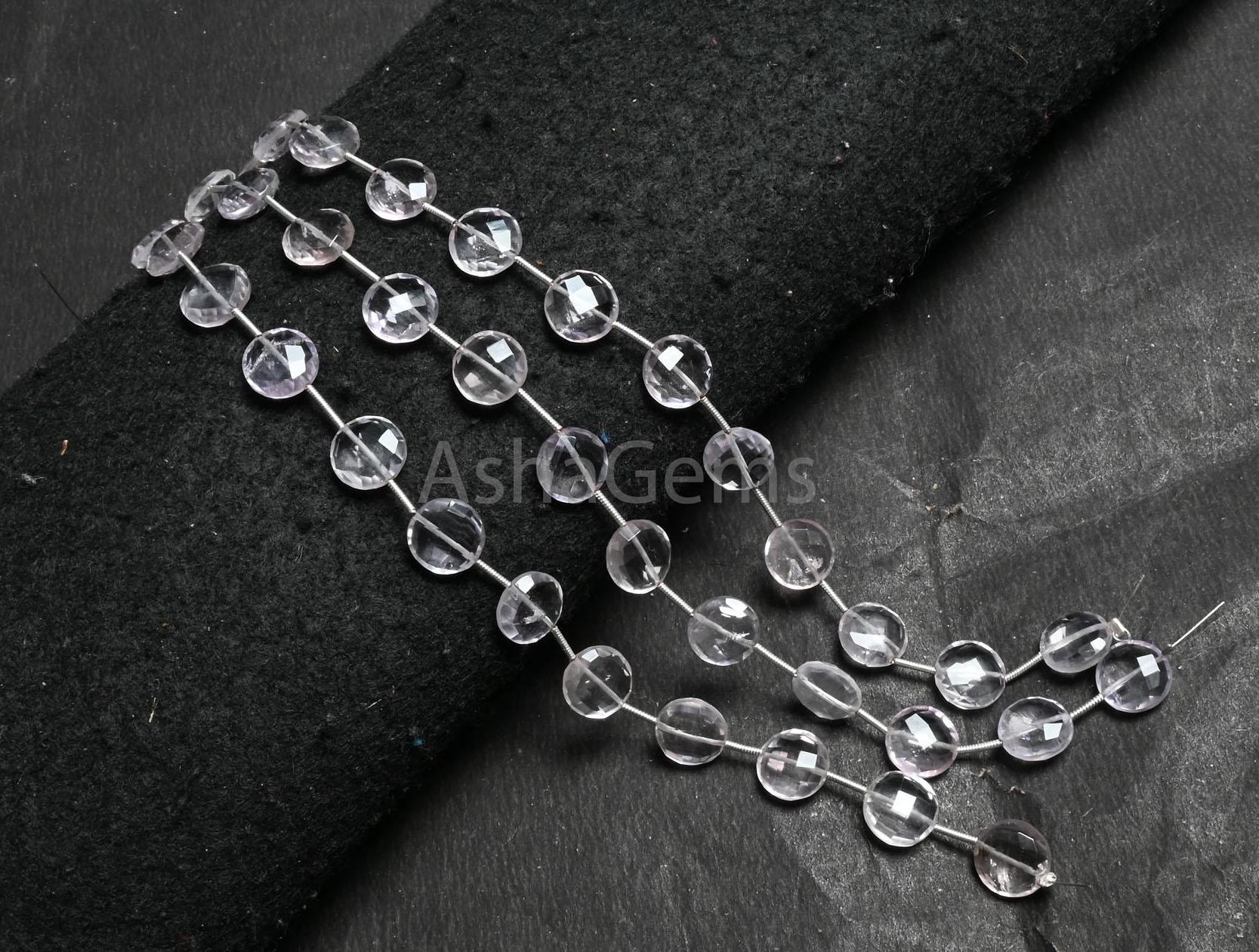11 mm Beautiful Pink Amethyst Checker Cut Coin Straight Drill Beads,9" Natural Amethyst Coin Briolette Faceted Light Gemstone Beads Jewelry