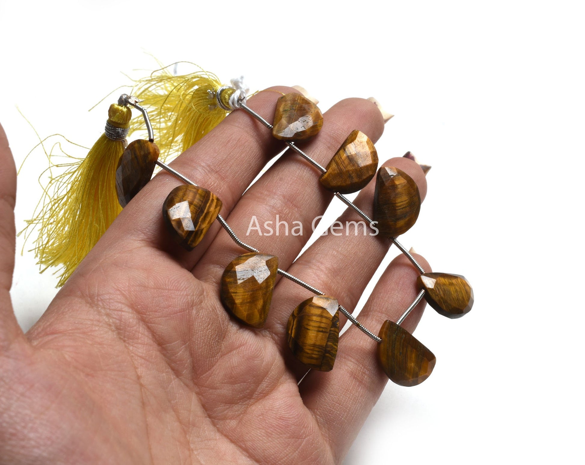 11x17-12qx18 mm Tiger Eye Faceted Fancy Briolette Gemstone Beads, Natural Tiger Eye Side Drill Fancy D Shape Beads, Tiger Eye Beads Jewelry