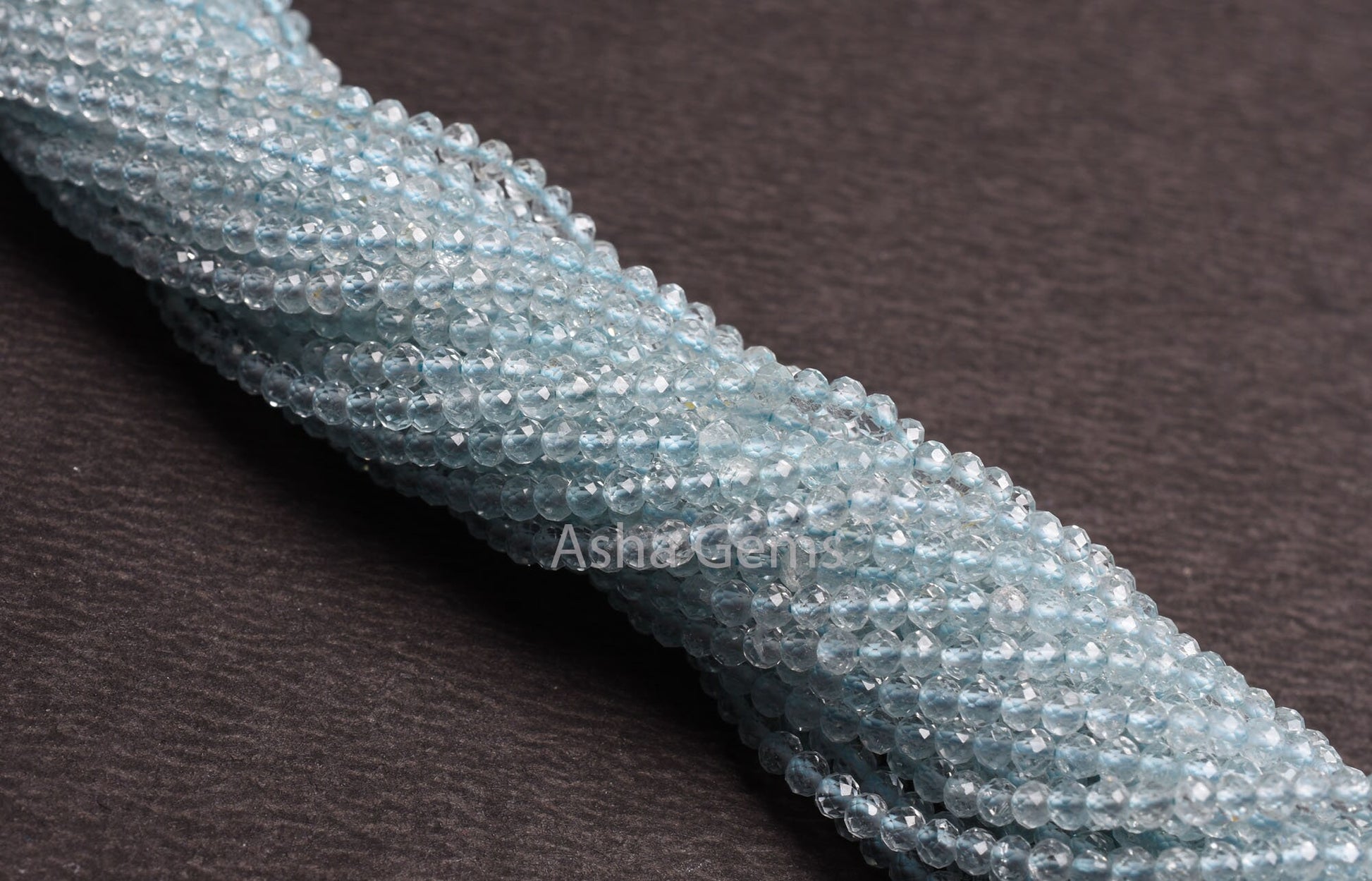13" Strand AAA Sky Blue Topaz Machine Cut Faceted Beads,2.75 mm Natural Topaz Micro Cut Gemstone Beads, Real Sky Topaz Bead For Jewelry SALE