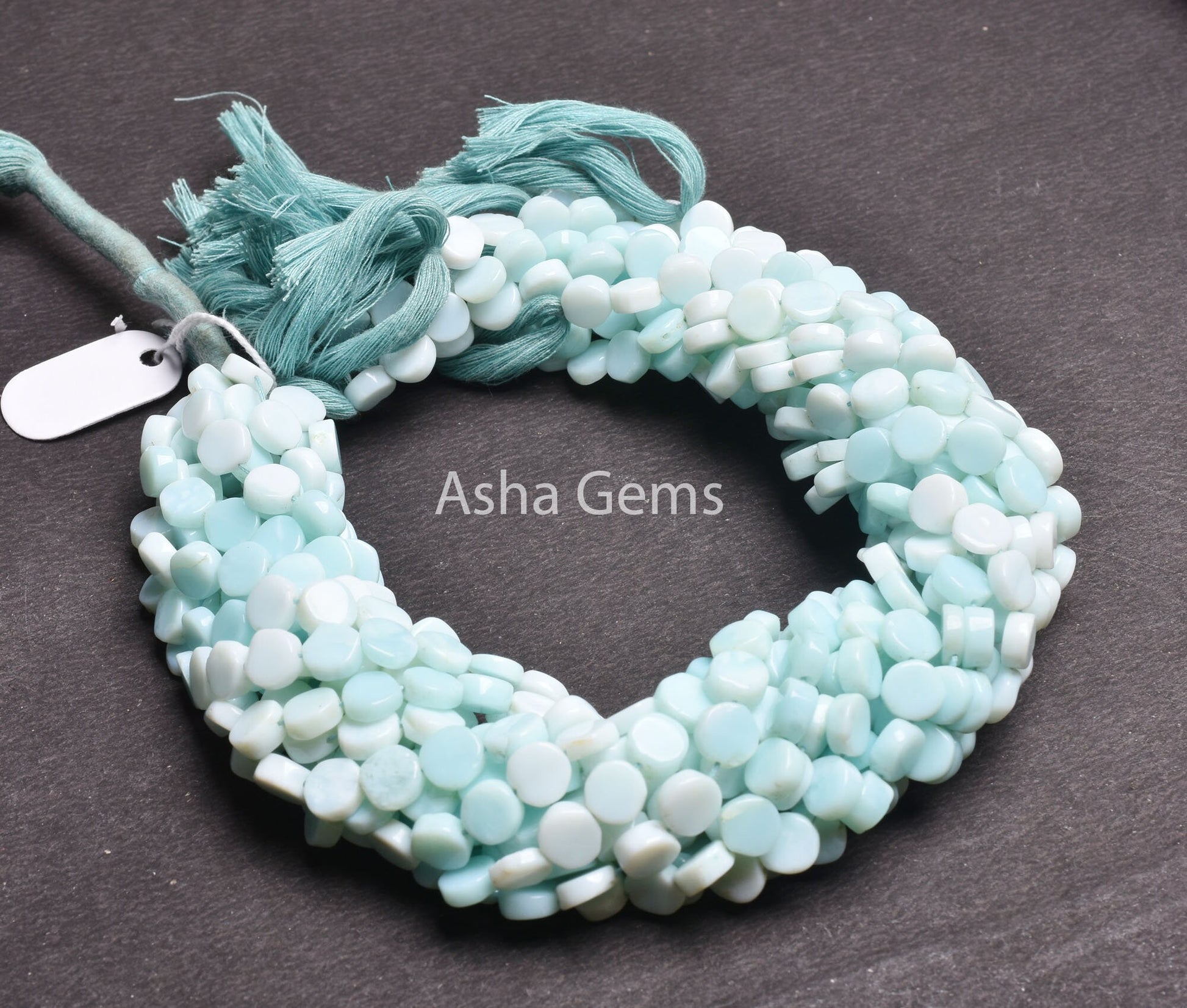 13" Strand Peru Opal Smooth Coin Shape Gemstone Beads, Opal Plain coin Handmade Straight Drill Bead, Sky Blue Opal Beads Jewelry Making SALE