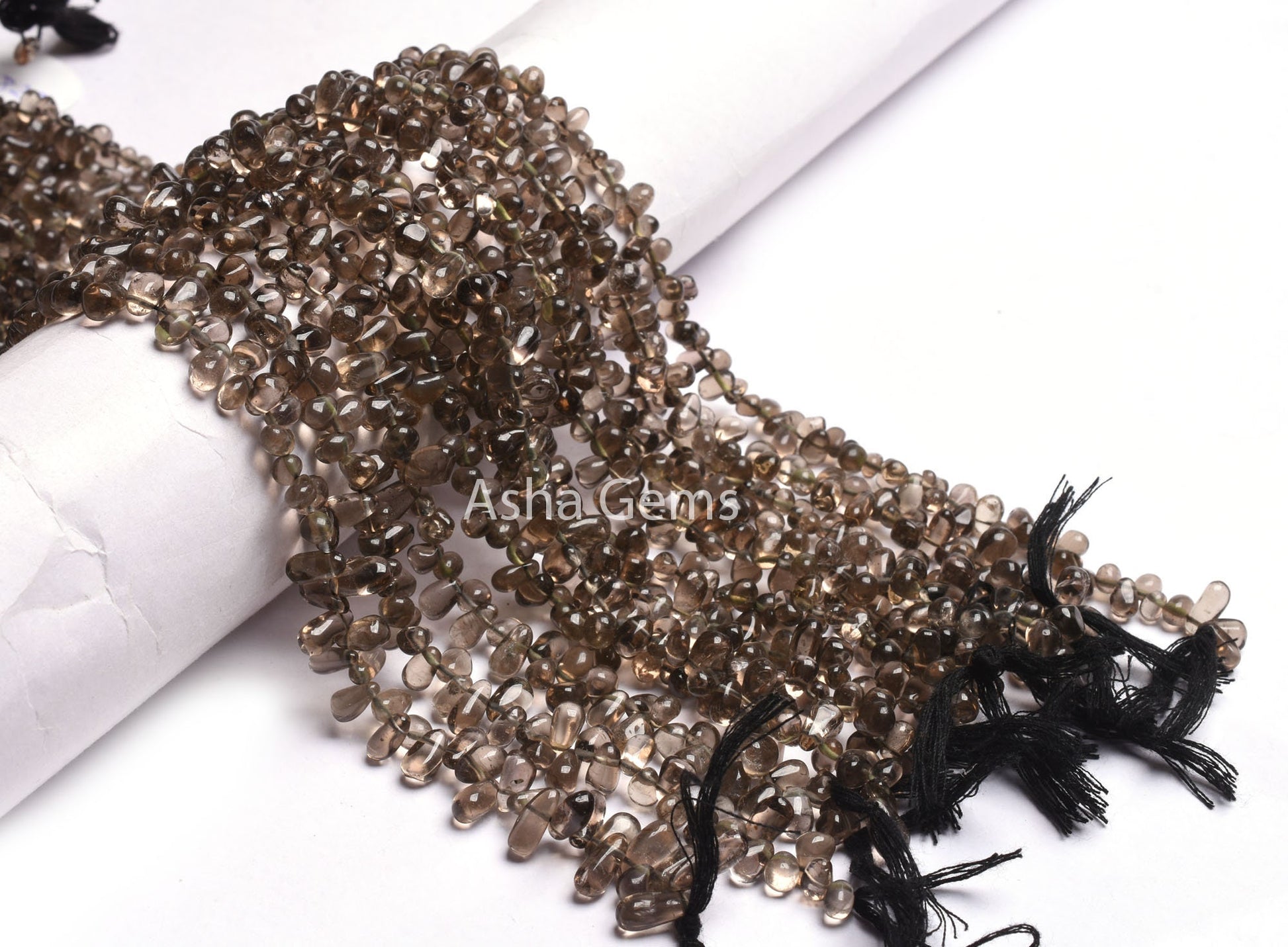 13" Strand Smoky Quartz Smooth Drops Gemstone Beads, Natural Smoky Handmade Uneven Teardrop Side Drill Bead, Fine Smoky Bead Jewelry Crafts