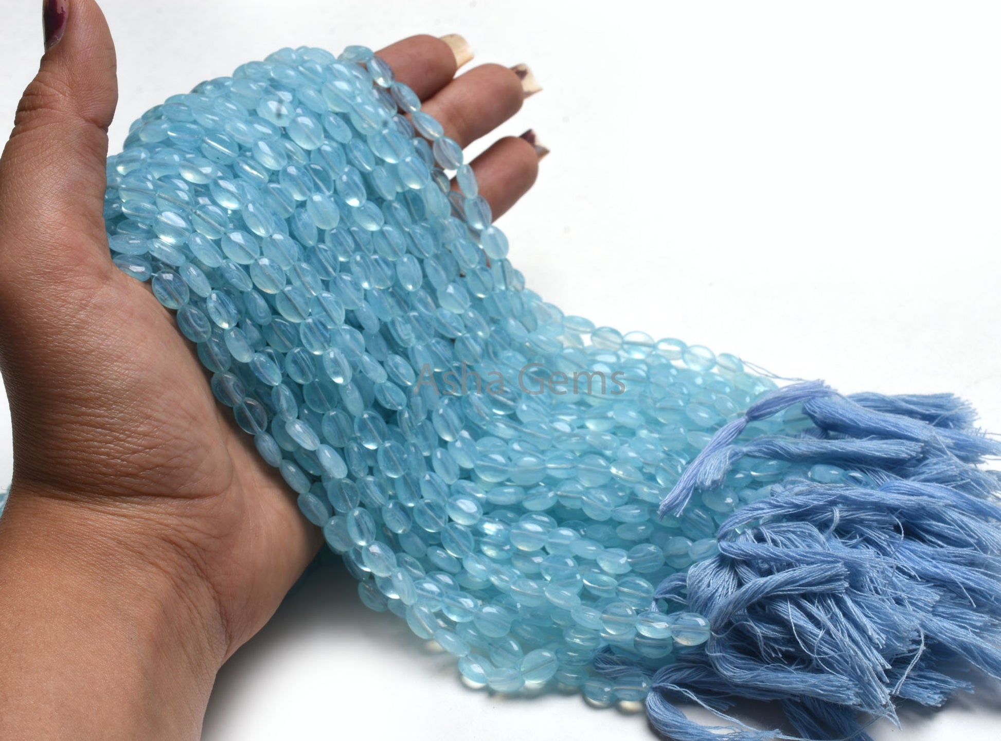 14" Strand Fine Sky Blue Quartz Hydro Smooth Oval Handmade Beads, 6.5-8.5 mm Blue Hydro Plain Handmade Oval Shape Beads Jewelry Crafts SALE