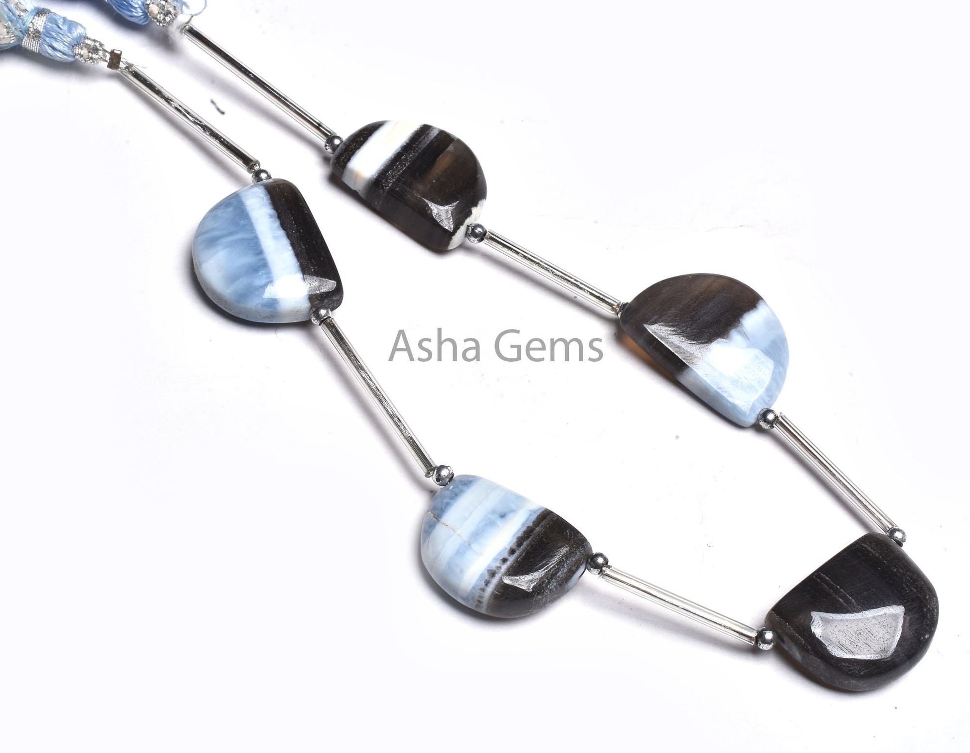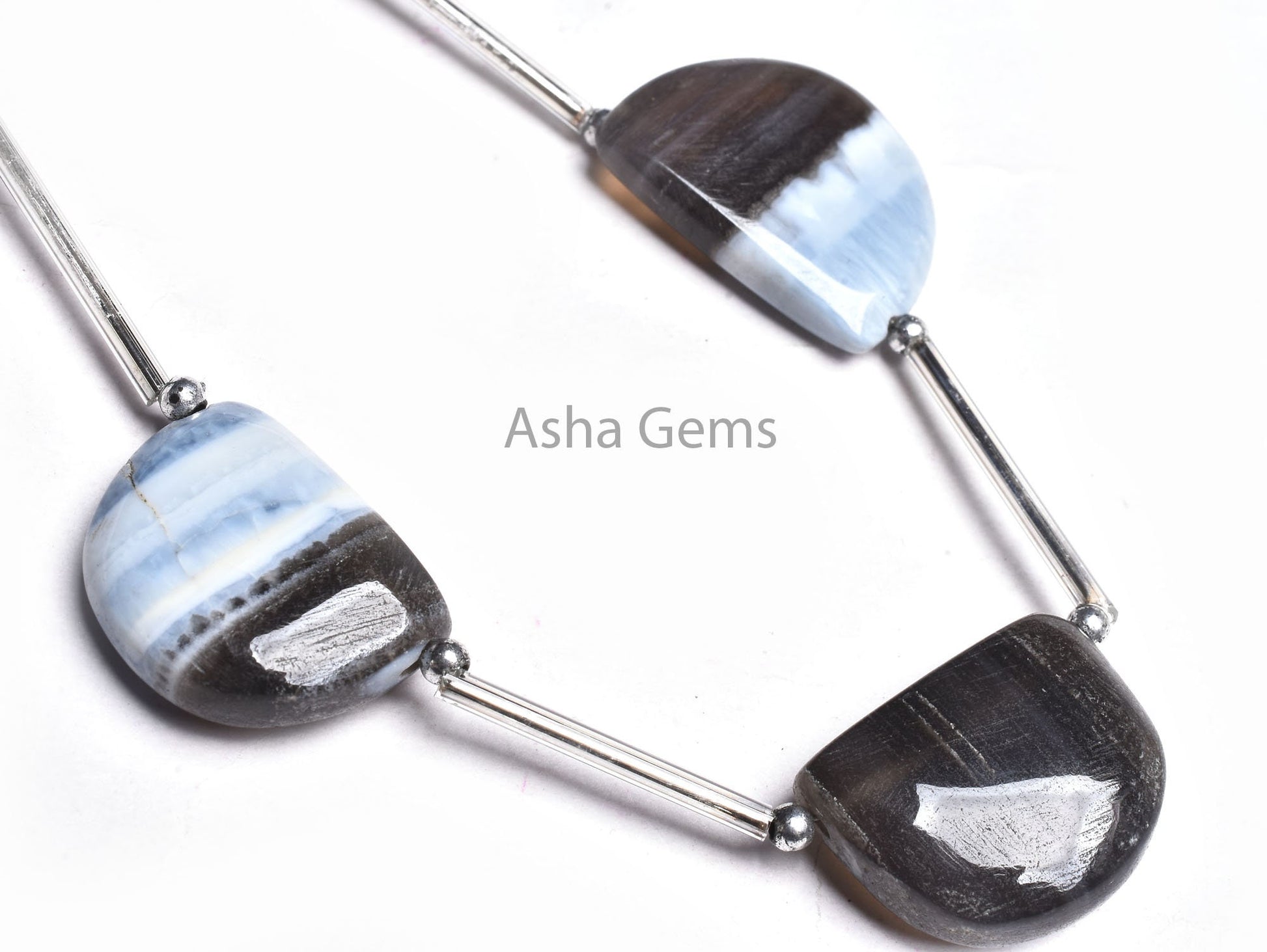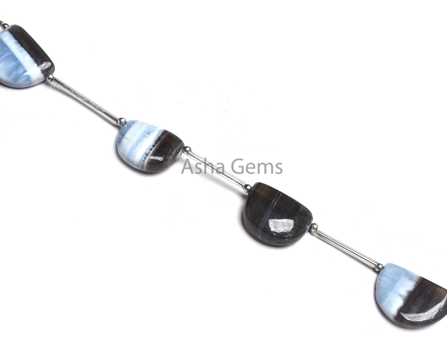15-22 mm Boulder Opal fancy D Shape Handmade Smooth Beads, Blue Boulder Opal Straight Drill Gemstone Smooth Beads, Opal Bead Jewelry Makings