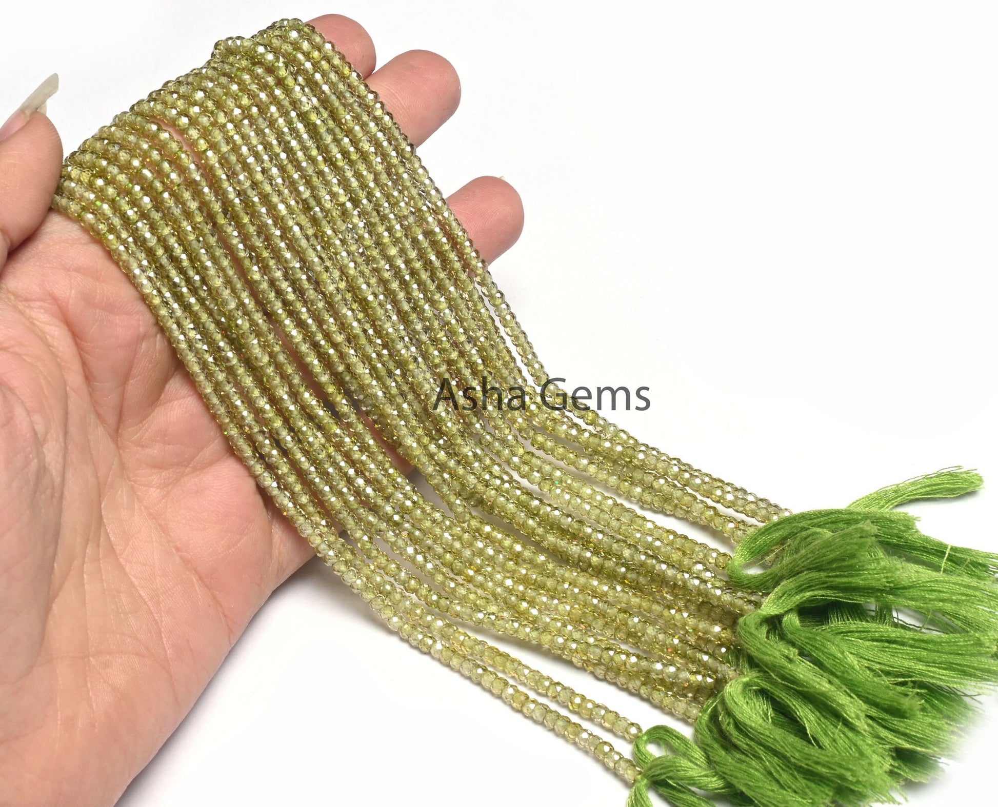 15" Strand Beautiful Green Zircon Micro Cut Rondelle Faceted Gemstone Beads 3 mm, AAA Quality Peridot Green Color Cubic Zircon Beads Jewelry