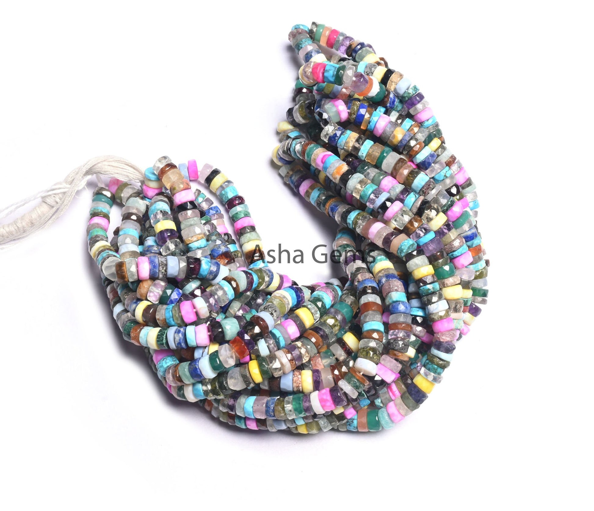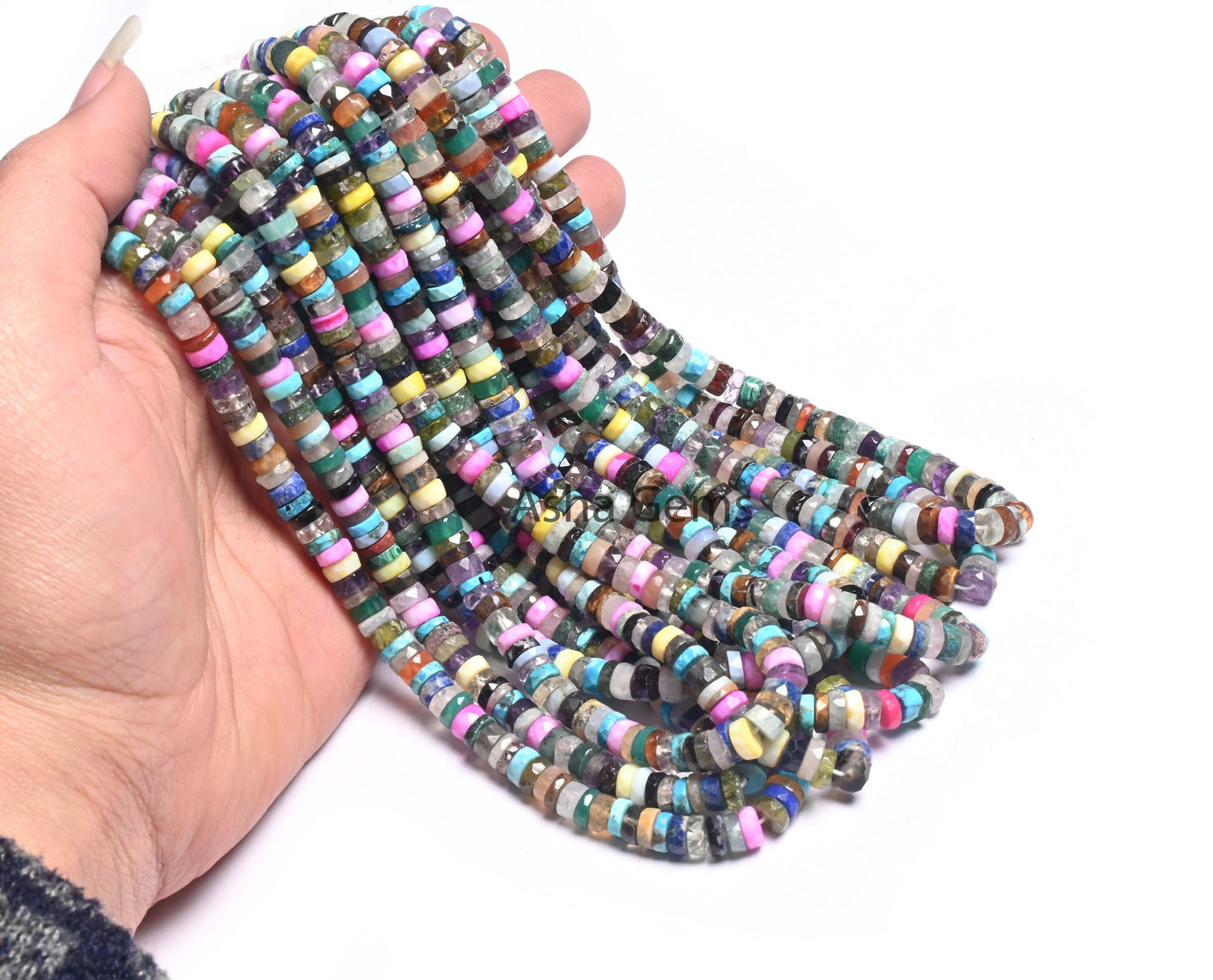16" Strand Beautiful Multi Color Faceted Heishi Tyre Beads,6 mm Natural Mix Gemstone Disco Flat Wheel Shape Beads Jewelry Making Craft Sale