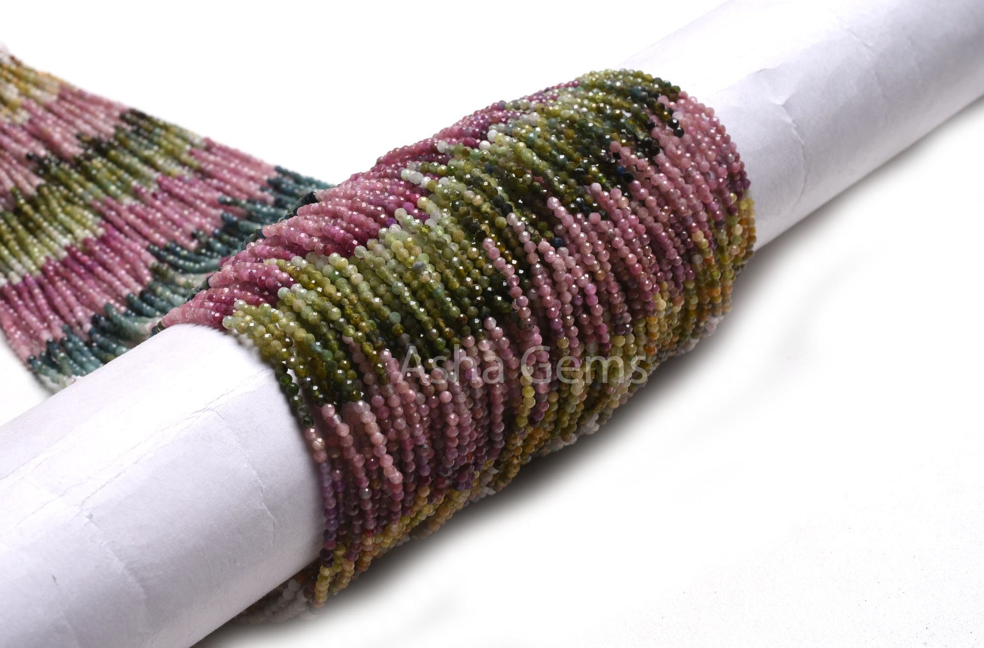 2.25 mm Natural Tourmaline Micro Cut Beads, Fine Multi Tourmaline Faceted Rondelle Machine Cut Gemstone Tiny Bead Jewelry Making Crafts SALE