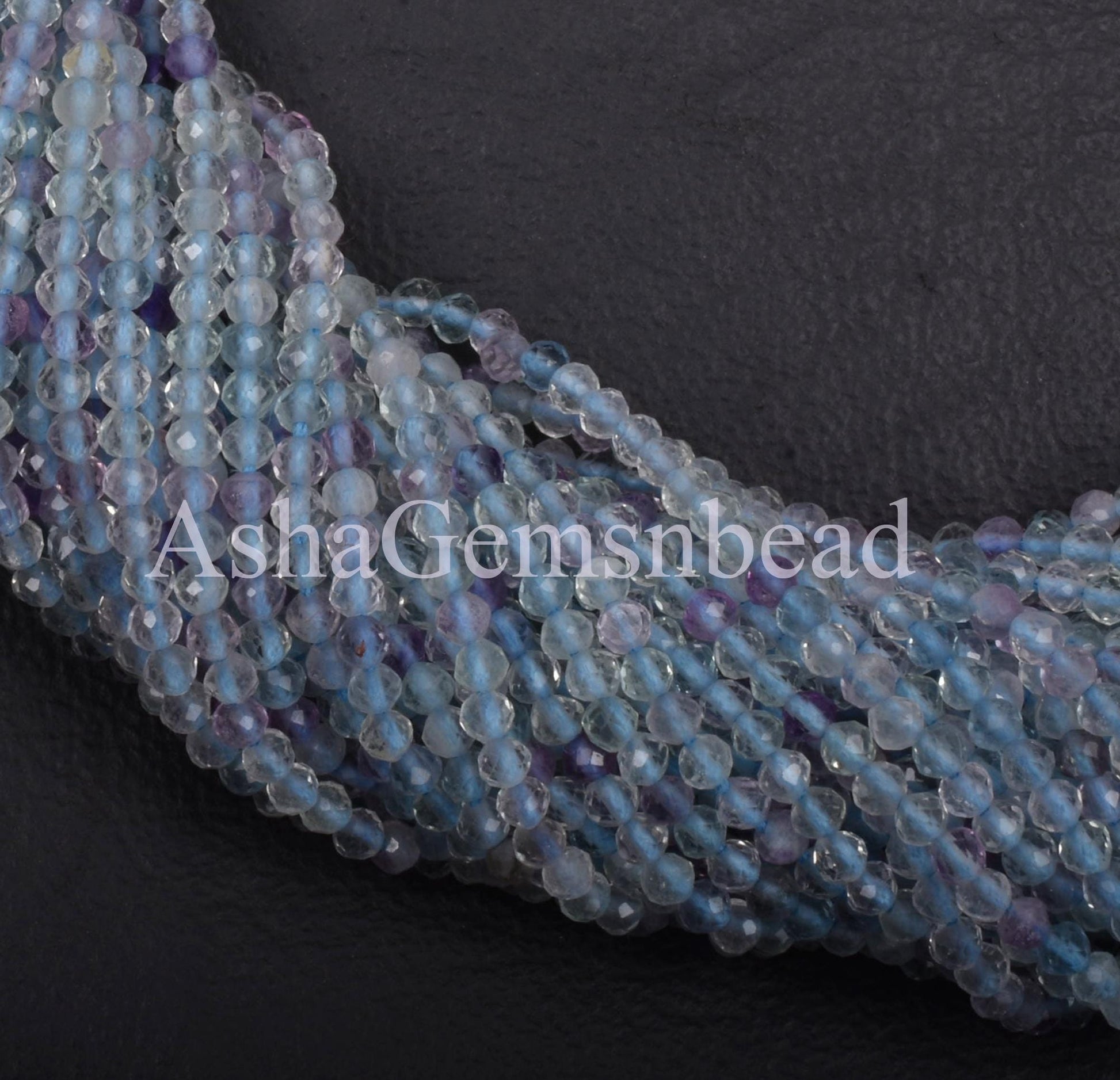2.5mm Fine Quality Blue Fluorite Micro Cut Faceted Rondelle Gemstone Beads, Natural Fluorite Machine Cut Beads for Jewelry Making Craft SALE