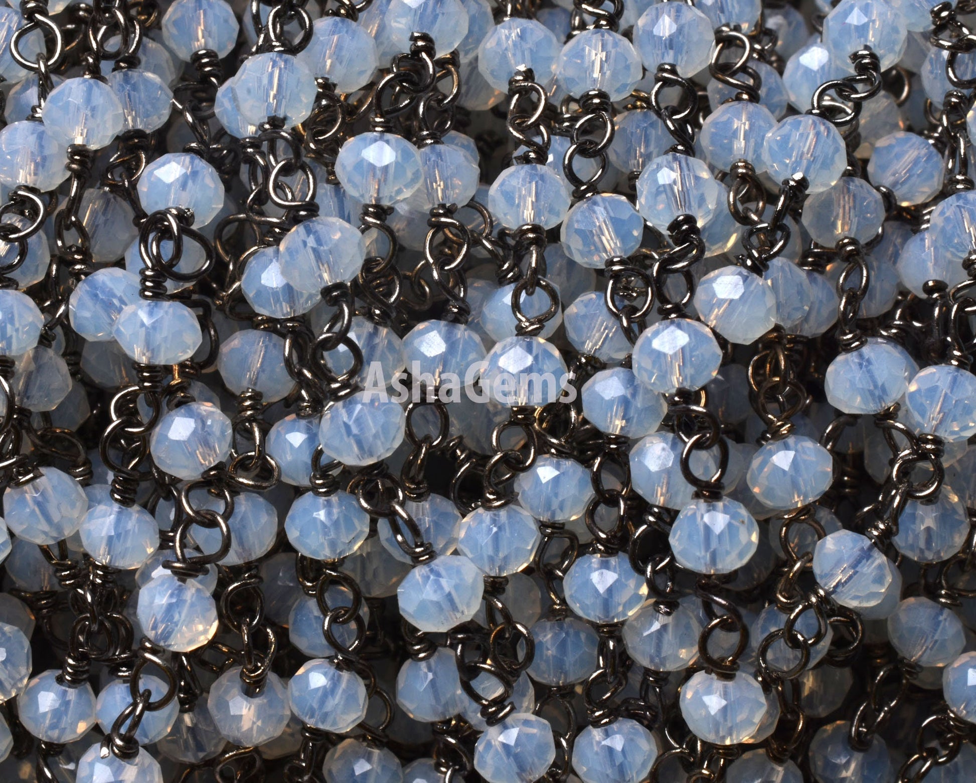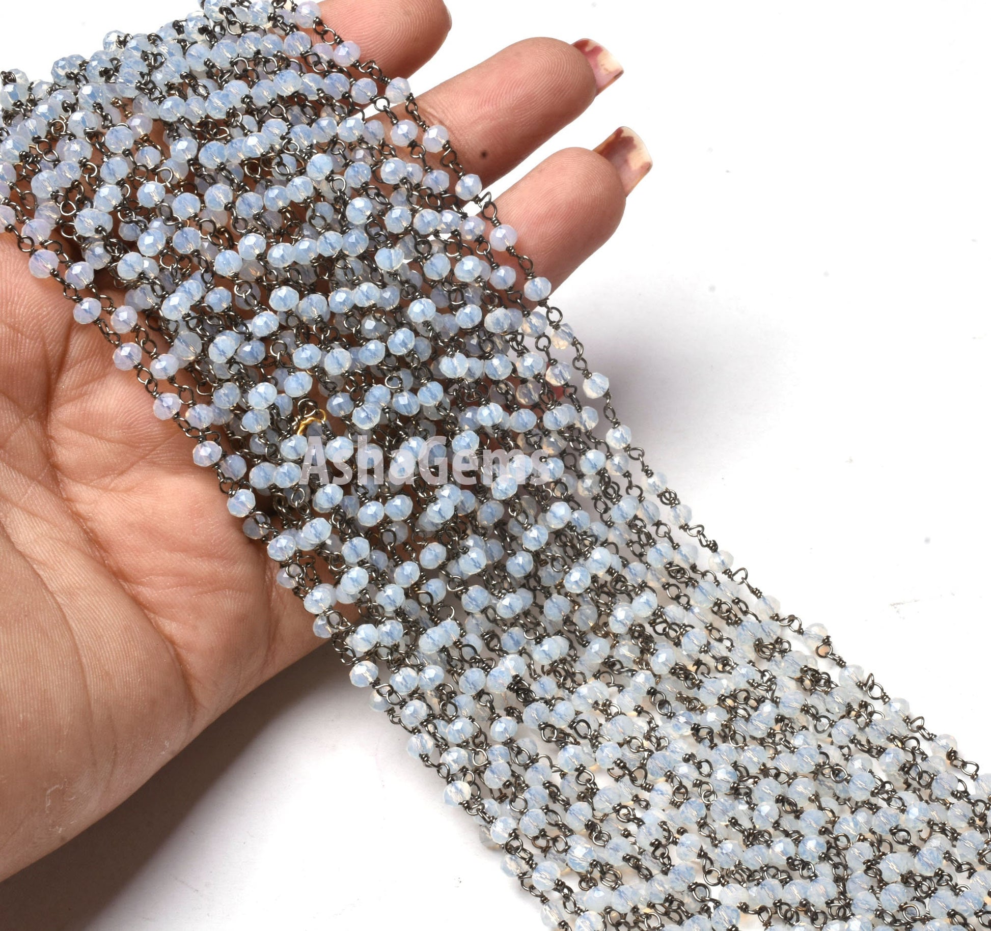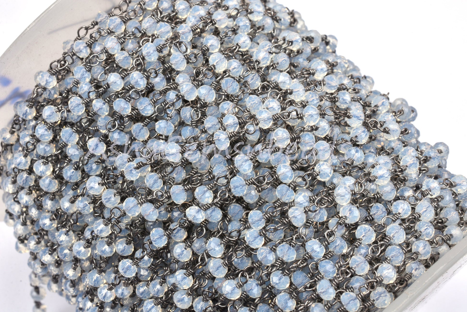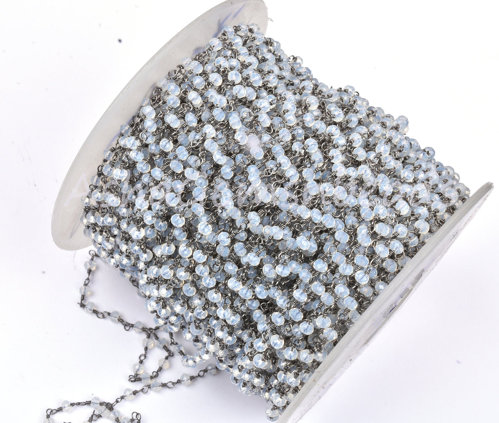 3,10,25,50 Rainbow Moonstone Hydro Beads Chain Gunmetal Wire Wrap Bulk Roll Chain,3 mm Faceted Rondelle Beaded Rosary Chains Jewelry Finding