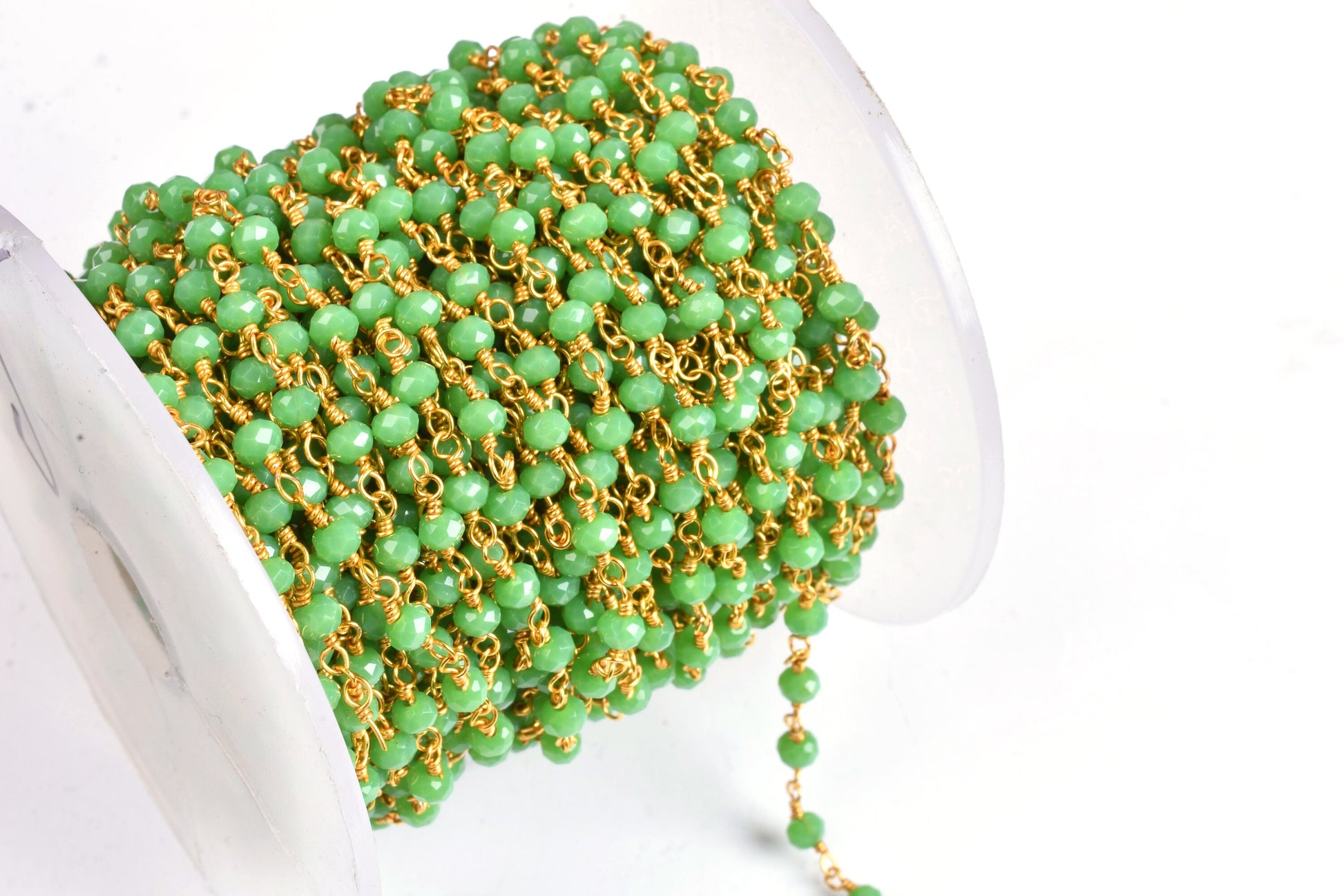 3,10,25 Foot Green Jasper Hydro Faceted Rondelle Beads Rosary Chain 3-3.5 mm Gold Plated Wire handmade Beaded Chain Jewelry Craft SALE DIY