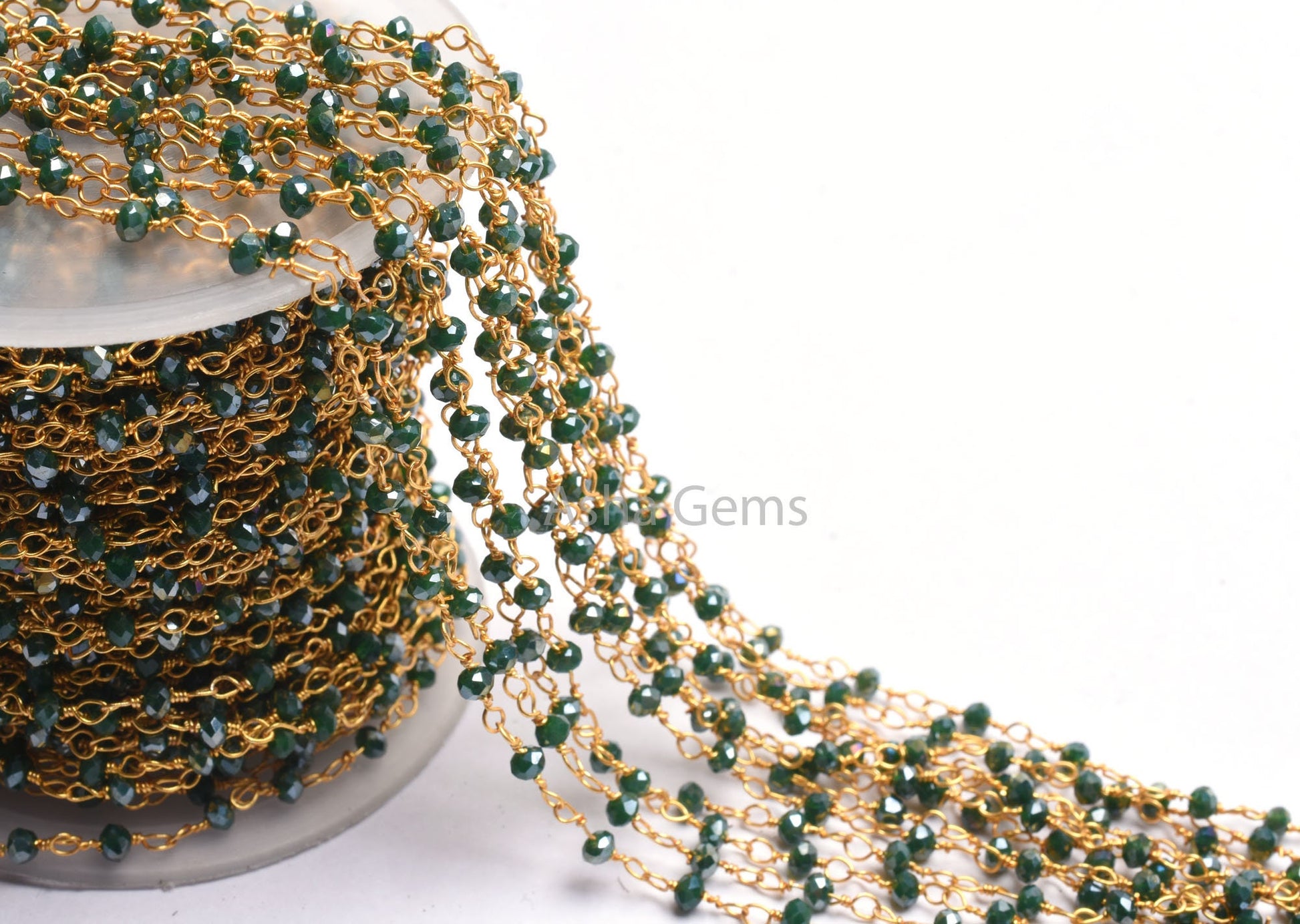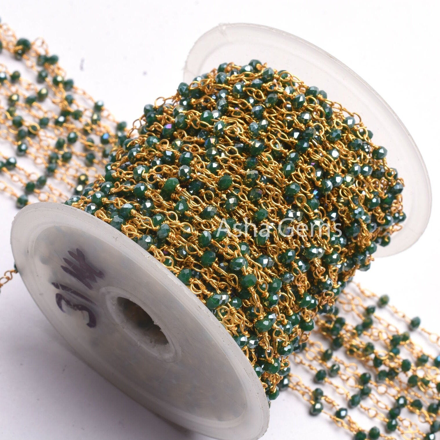 3,10,50 Feet Green Hydro Coated Beads Rosary Chain, Gold Plated Wire Wrap 3mm Micro Cut Rondelle Beaded Chain Jewelry Making handicraft SALE