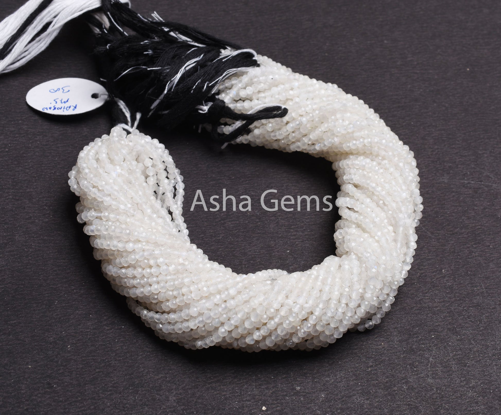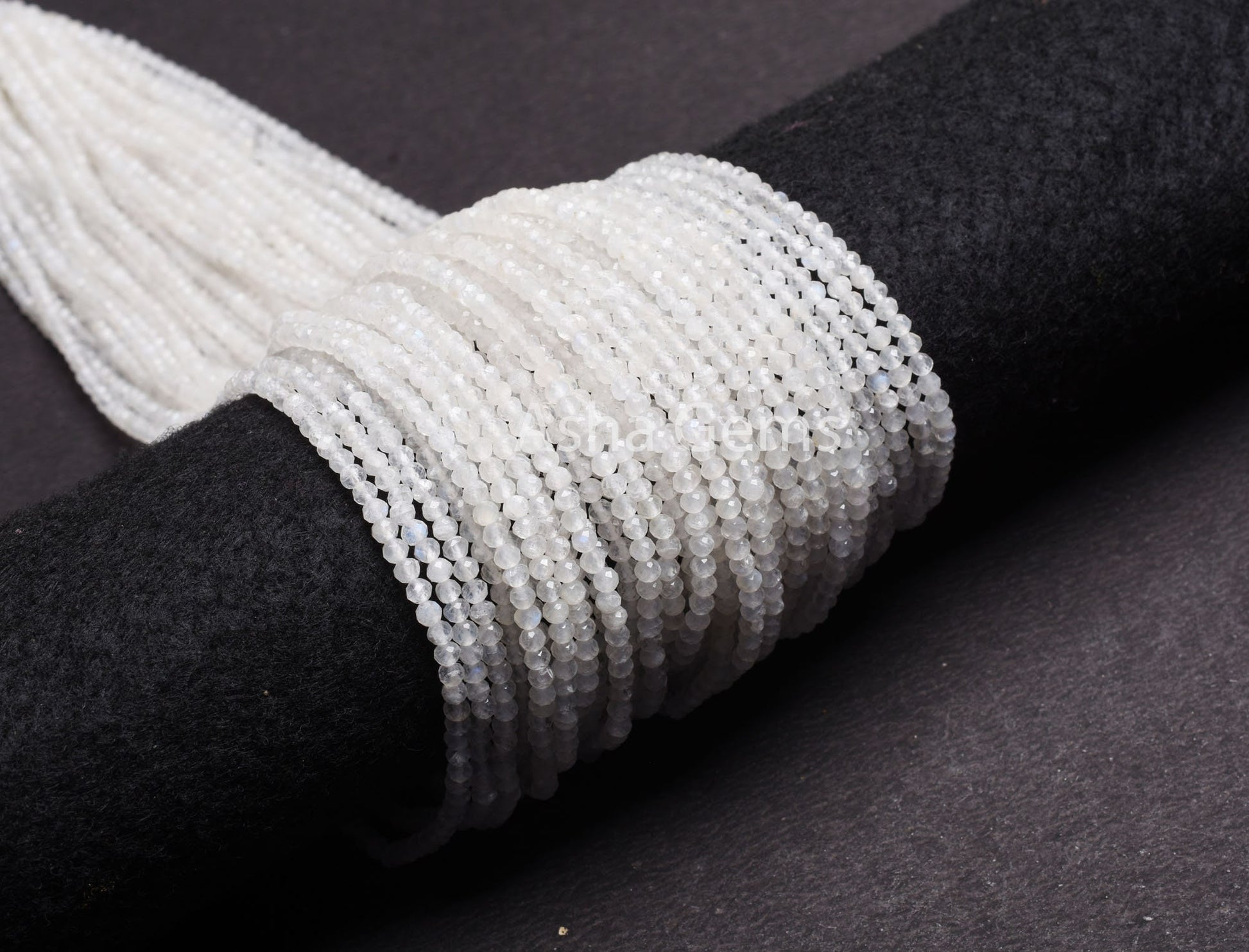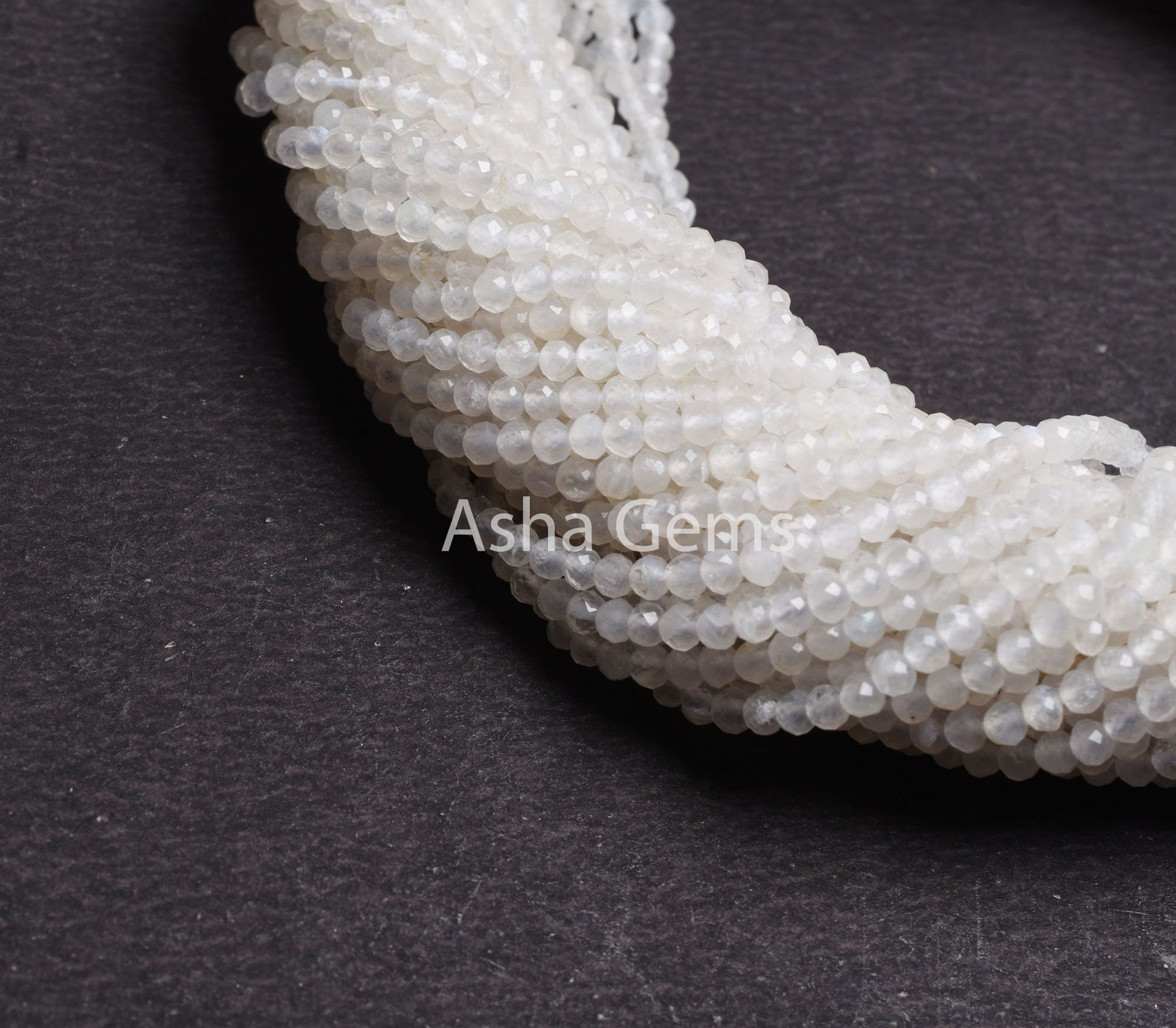 3.2 mm Rainbow Moonstone Faceted Rondelle Beads Natural Blue Fire Rainbow Moonstone Micro Machine Cut Beads,12.5" Strand White Rainbow Beads
