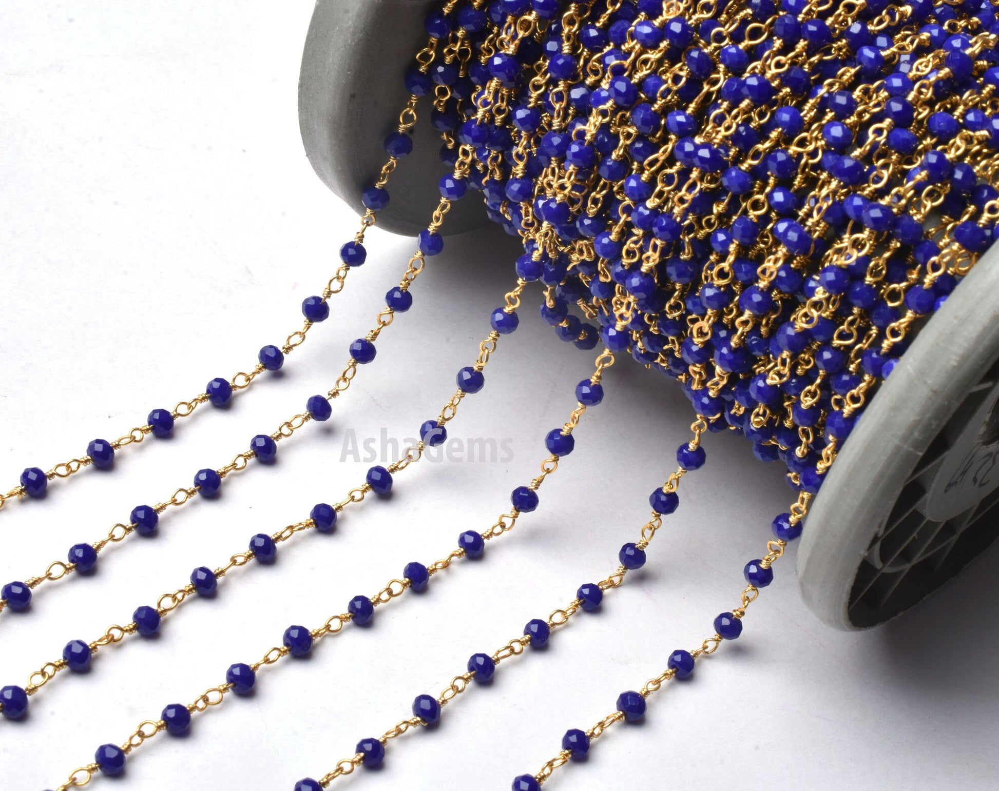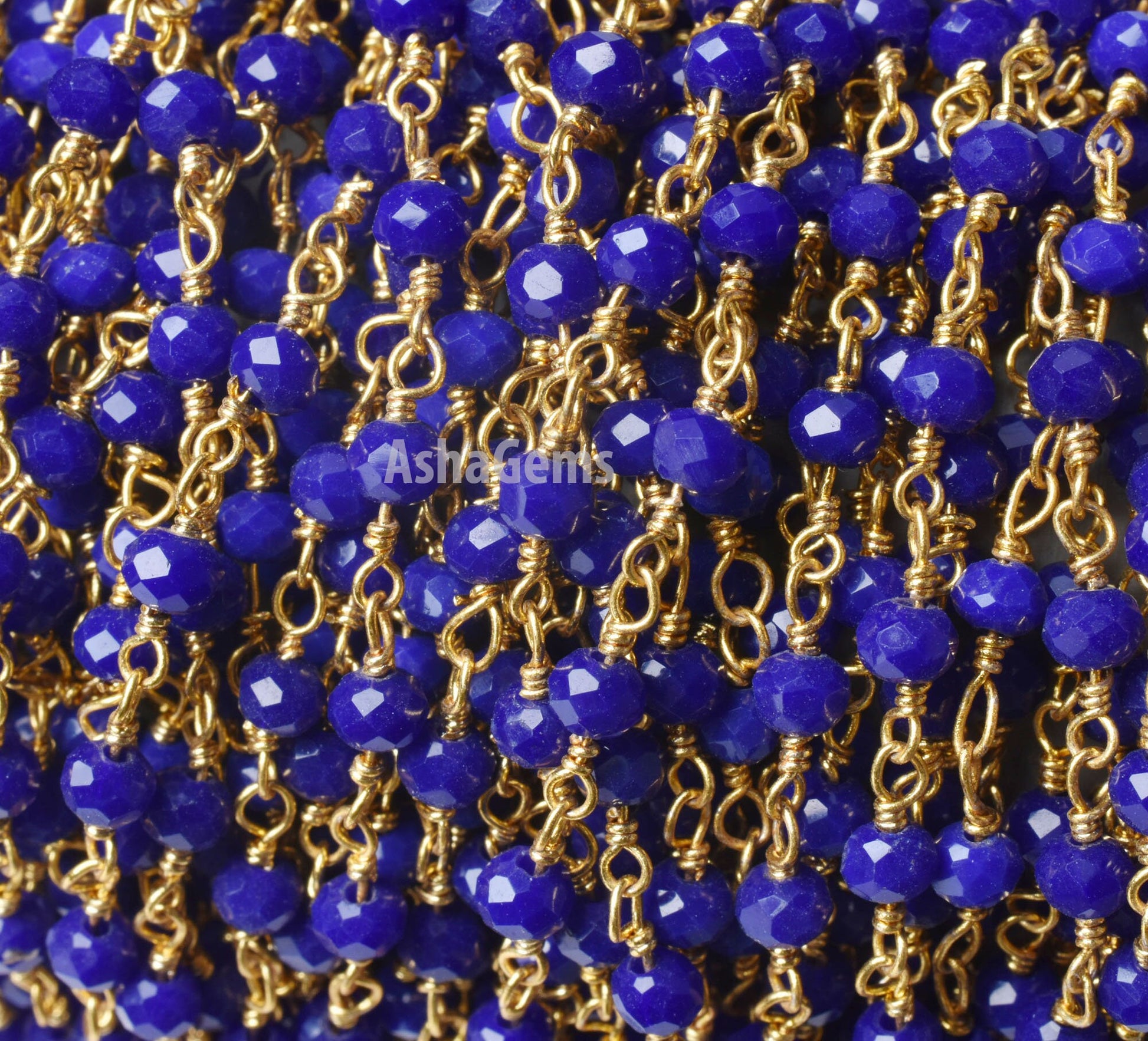3,5,10,25 Feet Blue Lapis Hydro Rondelle Faceted Beads Rosary Chain Gold Plated Wire Wrap Jewelry Making Chain,3-3.5 mm Beaded Rosary Chains