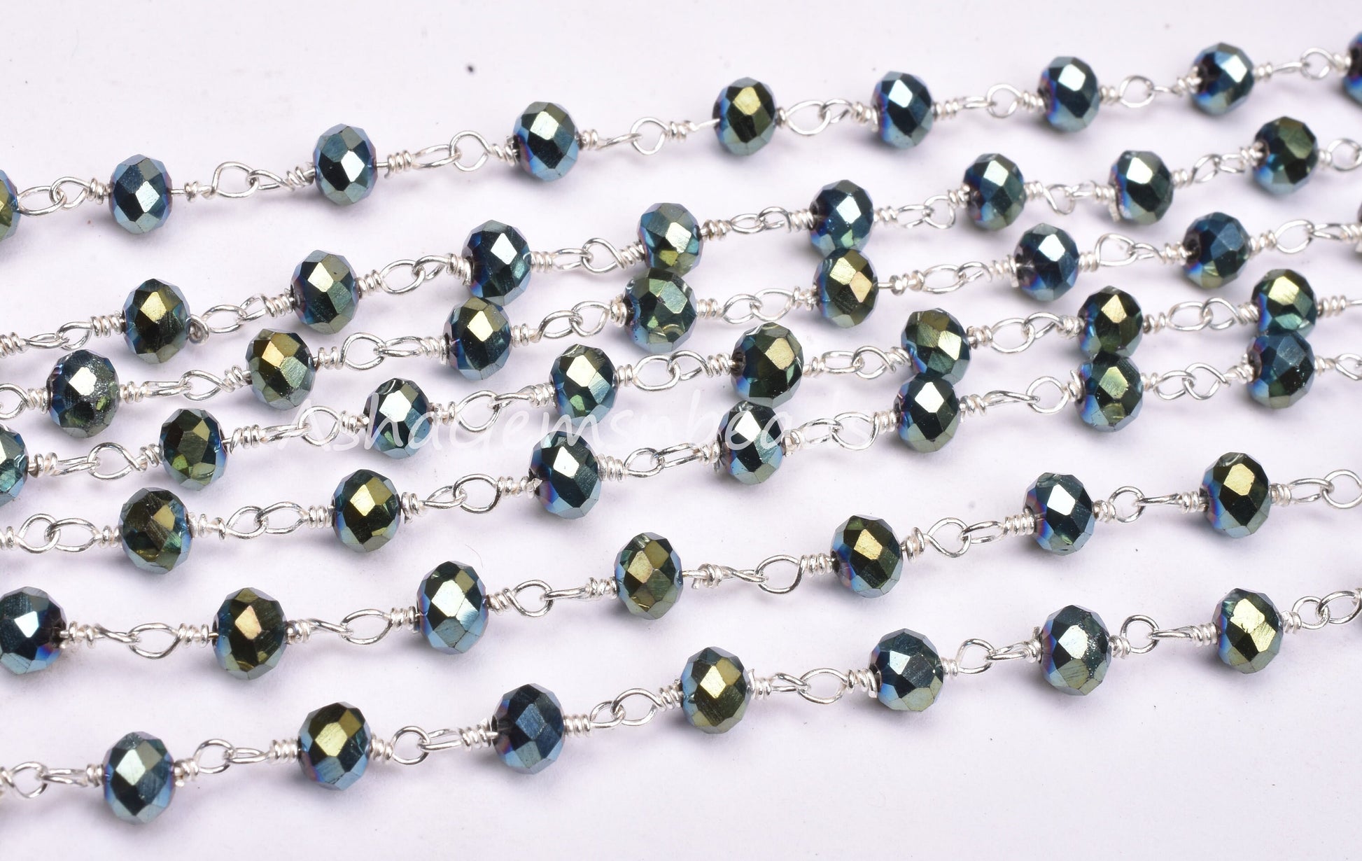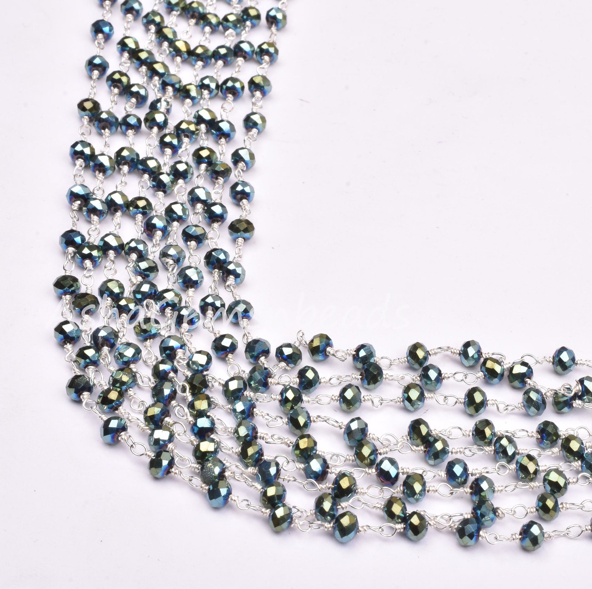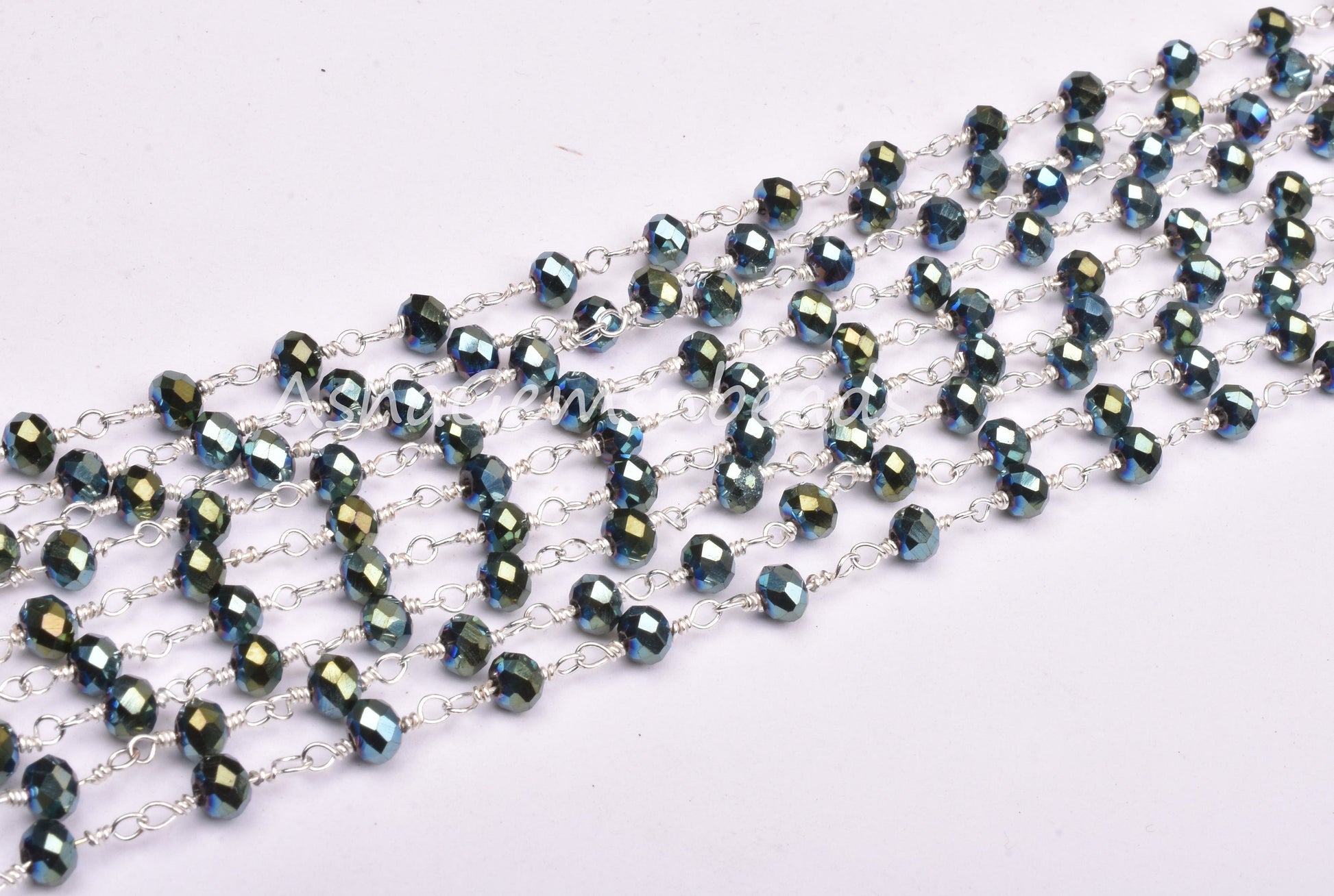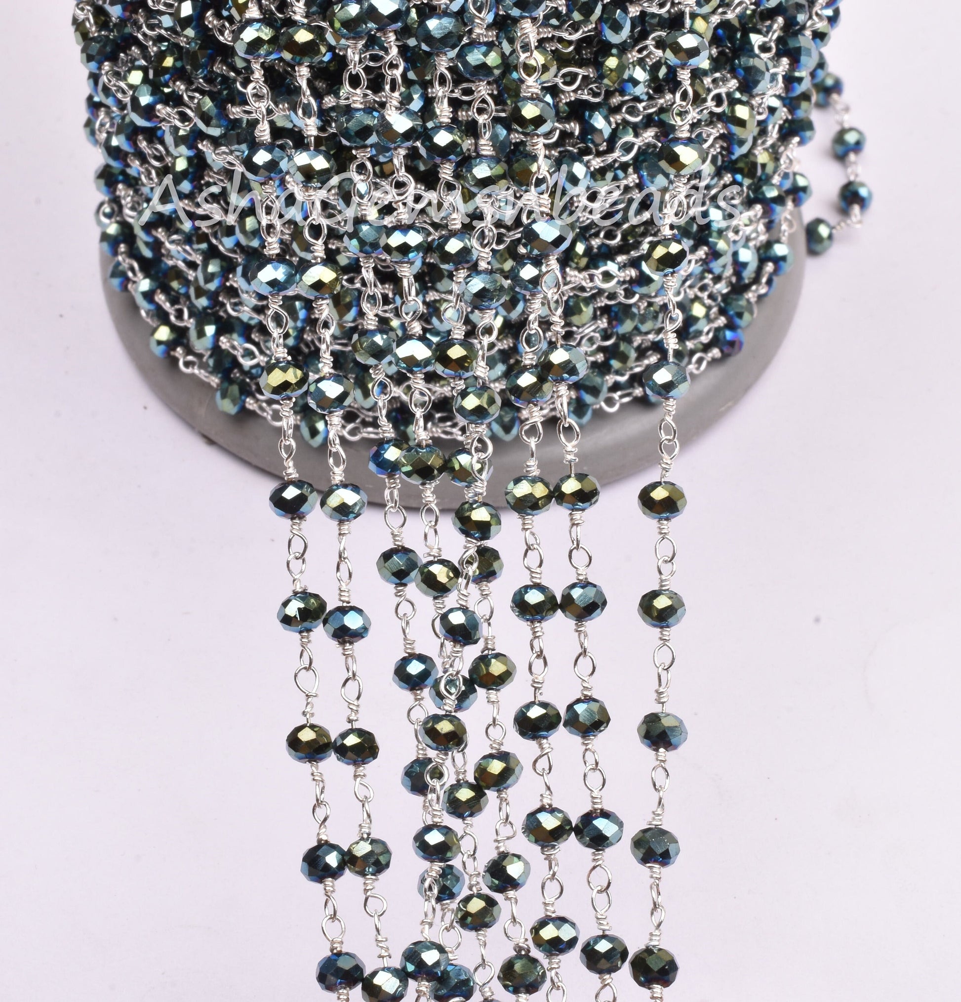 3,5,10,25 Ft Mystic Pyrite Hydro Faceted Rondelle Beaded Rosary Chain Silver Plated Wire,Jewelry Making Finding,Wire Wrapped Chain 3-3.5 mm