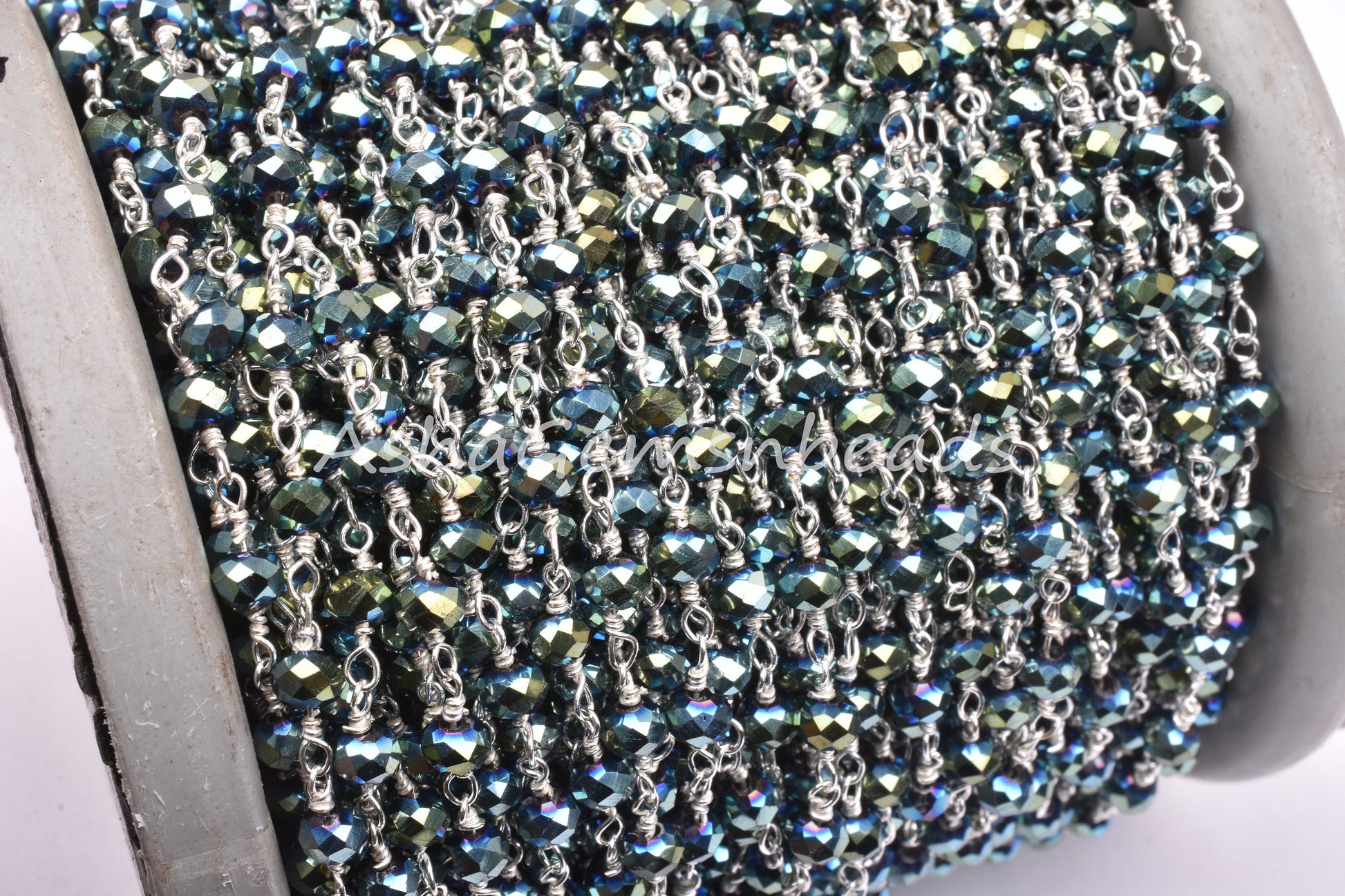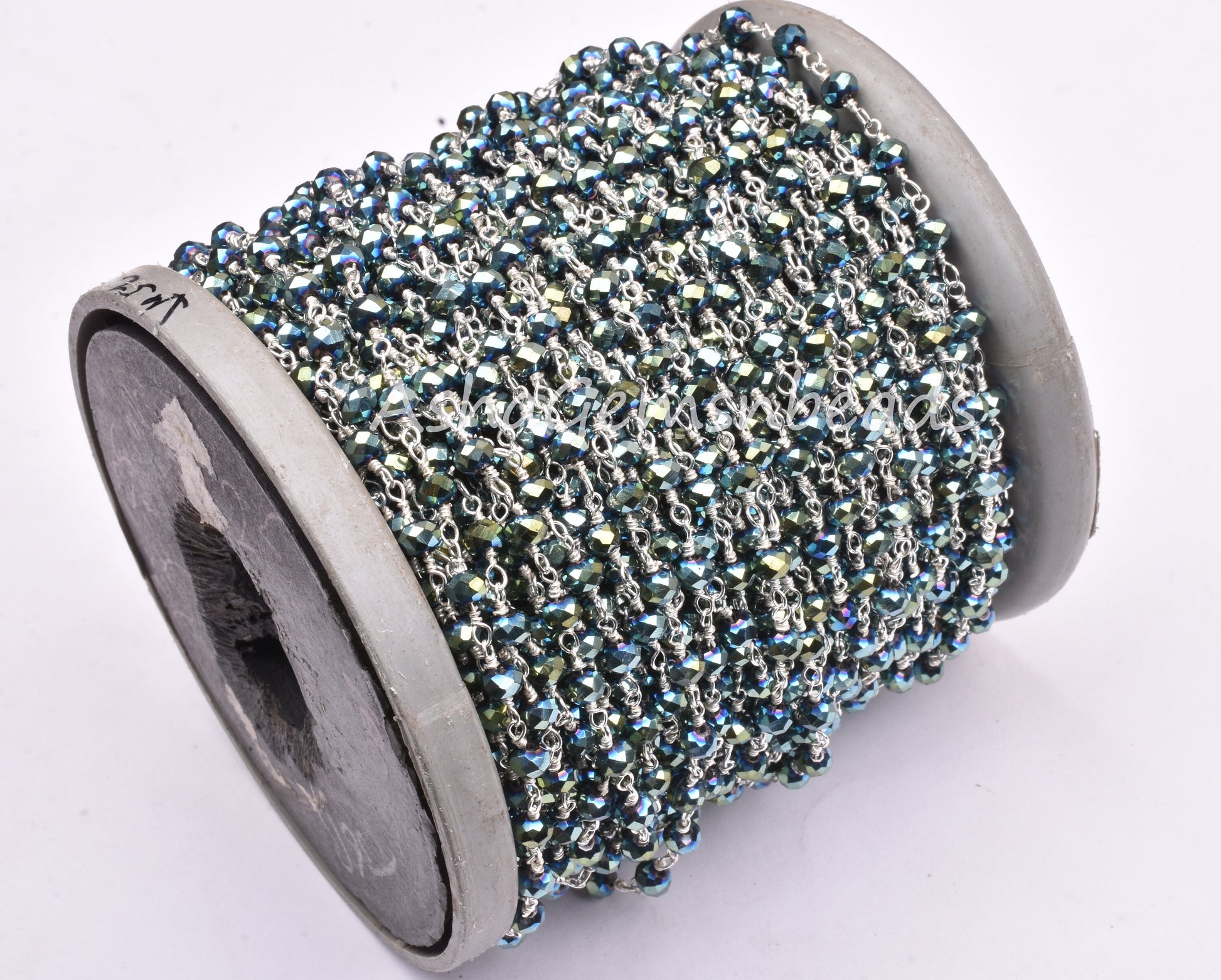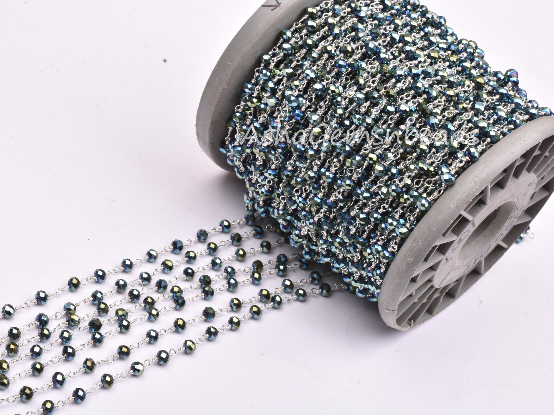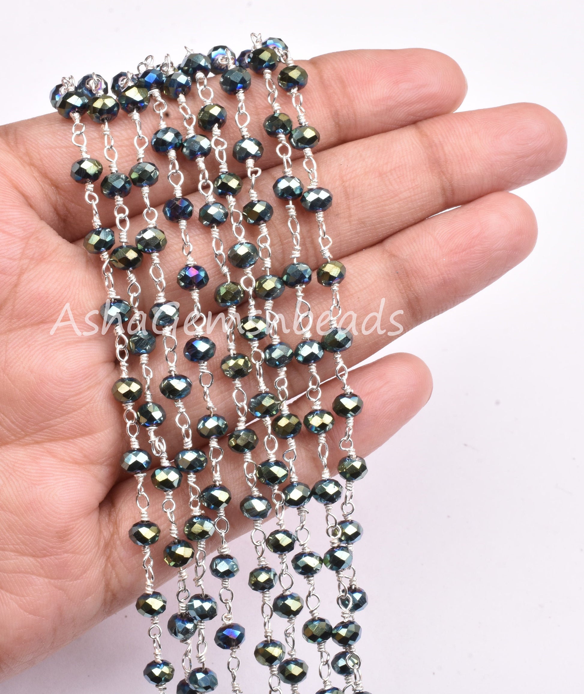 3,5,10,25 Ft Mystic Pyrite Hydro Faceted Rondelle Beaded Rosary Chain Silver Plated Wire,Jewelry Making Finding,Wire Wrapped Chain 3-3.5 mm