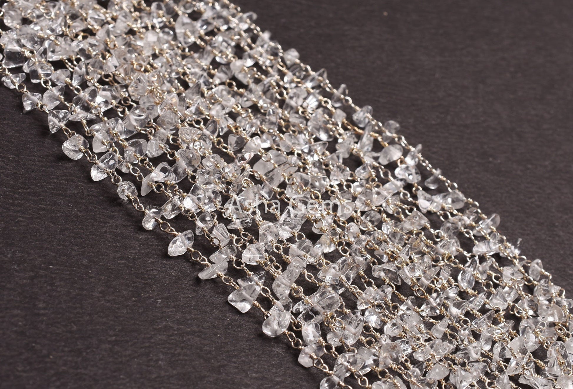 3,5,10,25,Ft Natural Crystal Uncut Chip Beads Rosary Chain Gemstone Bead Chain,Clear Crystal Smooth Nugget Beaded Chain,Silver Plated Wire