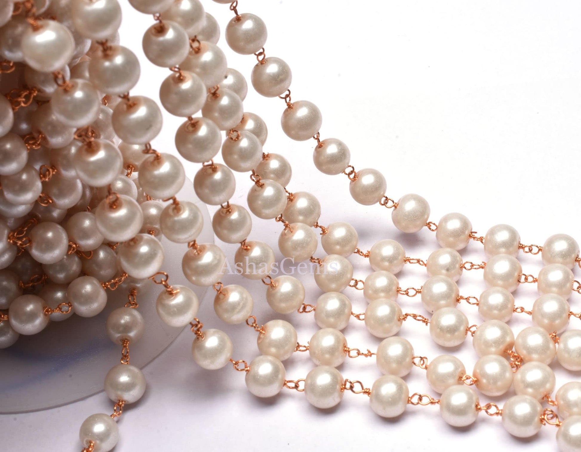 3,5,10,25 Ft,Pearl Hydro Rondelle Beaded Rosary Chain,Gold,Rose Gold Plated,Jewelry Making Chain,Finding,Beutiful Wire Wrapped Chain, 8 mm