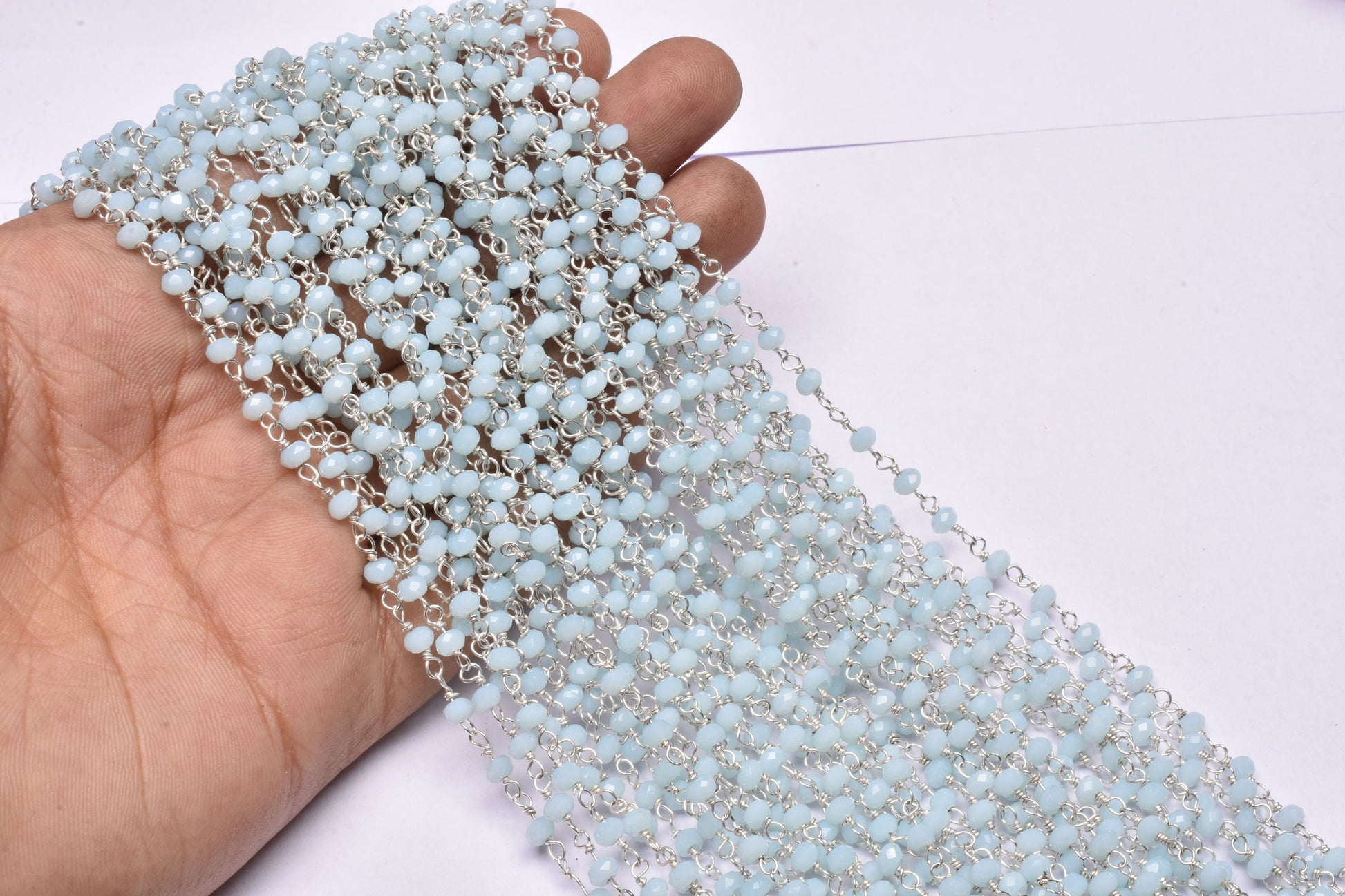 3,5,10,50 Feet Aqua Chalcedony Hydro Rondelle Faceted Beaded Rosary Chain gold Silver black Plated Wire Jewelry Making Finding,Size 3-3.5 mm
