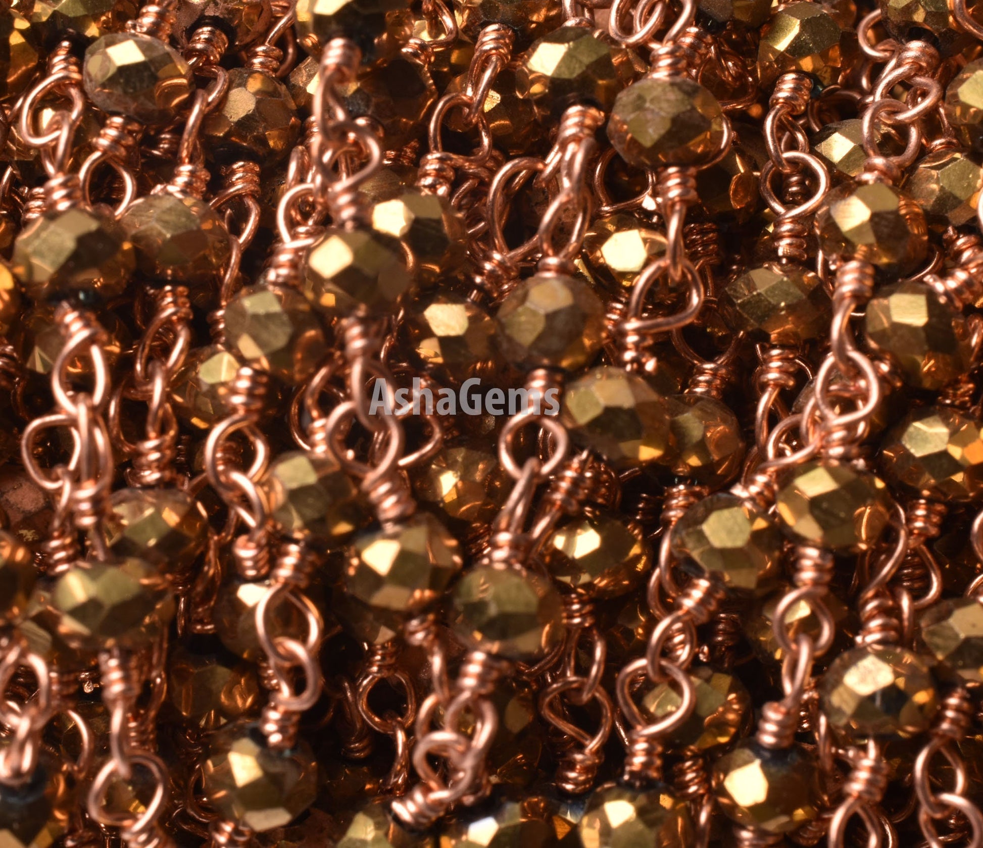 3,5,10,50 Feet Gold Pyrite Hydro Faceted Rondelle Beaded Rosary Chain,3mm,Rose Gold Plated,Wire Wrapped ,Finding,Jewelry Making,Rosary Chain ,Finding,Jewelry Making,Rosary Chain