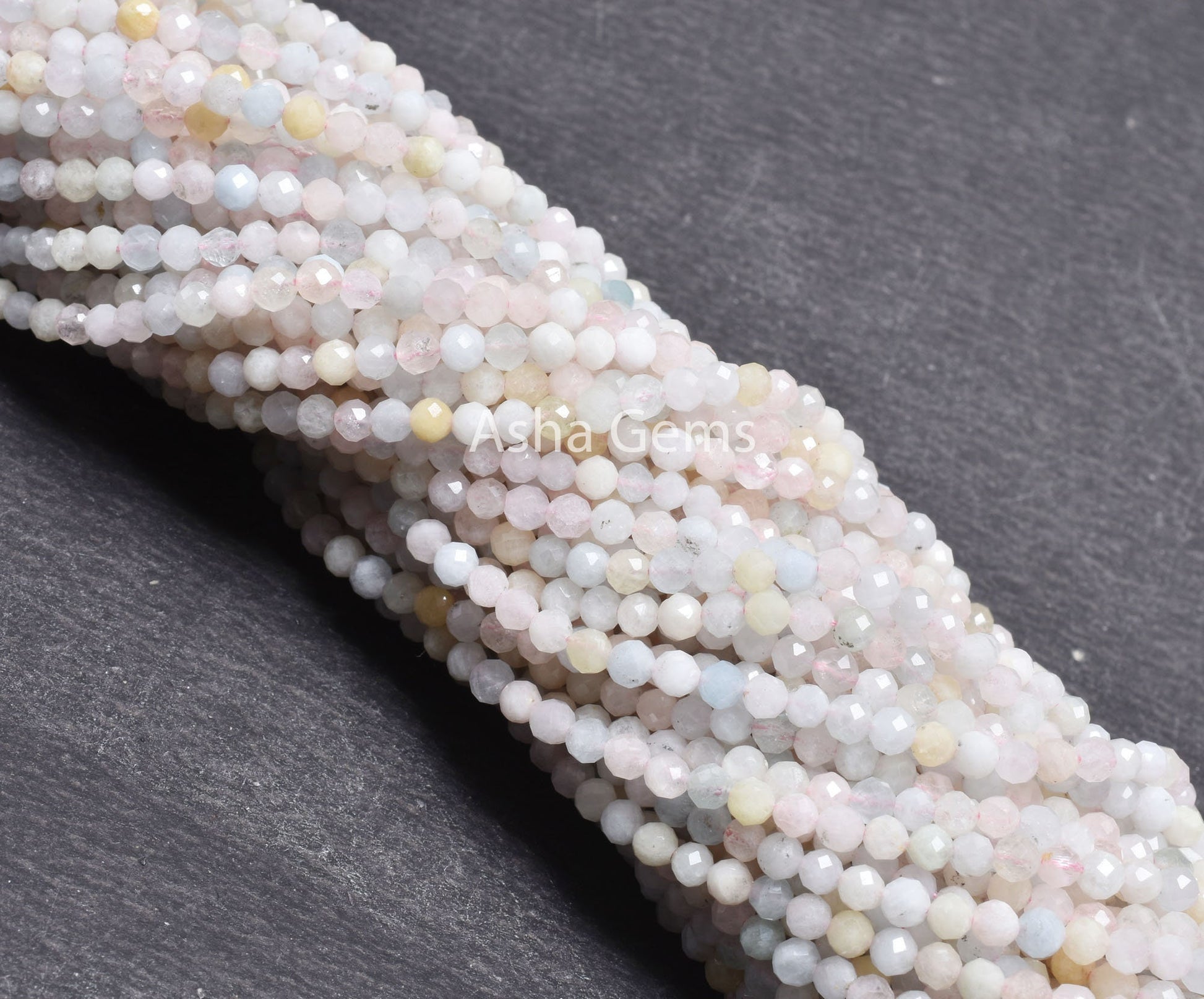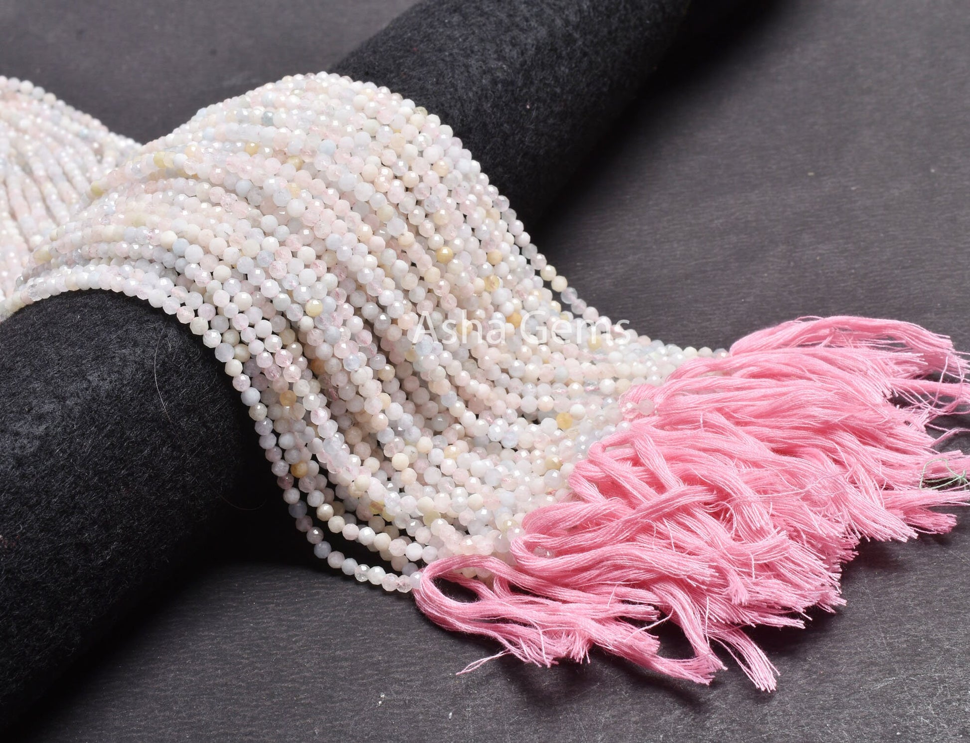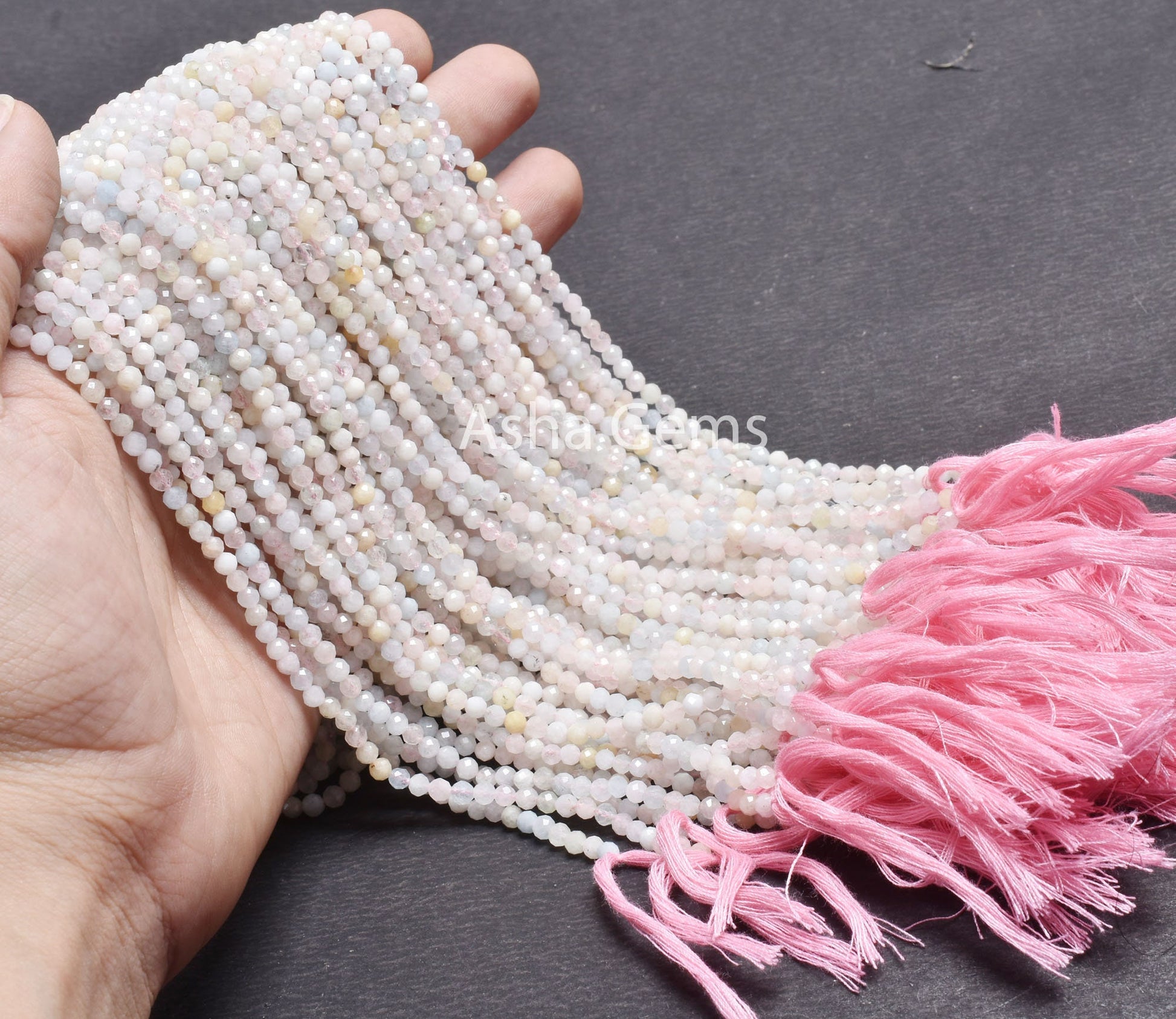 3.5 mm Fine Morganite Quartz Machine Cut Round Ball Beads, Shaded Pink Morganite Quartz Micro Cut Gemstone Roundelle Bead Jewelry Craft SALE