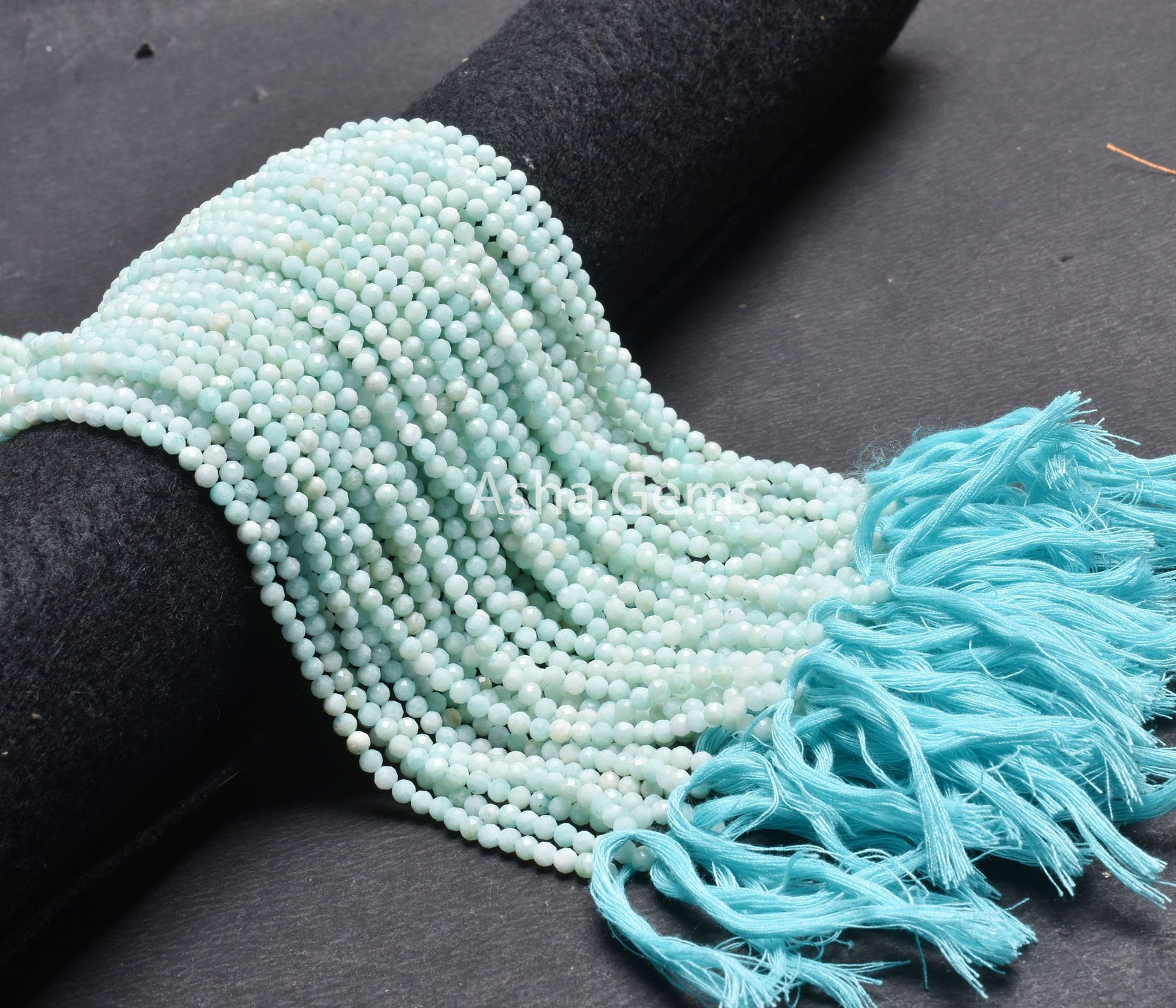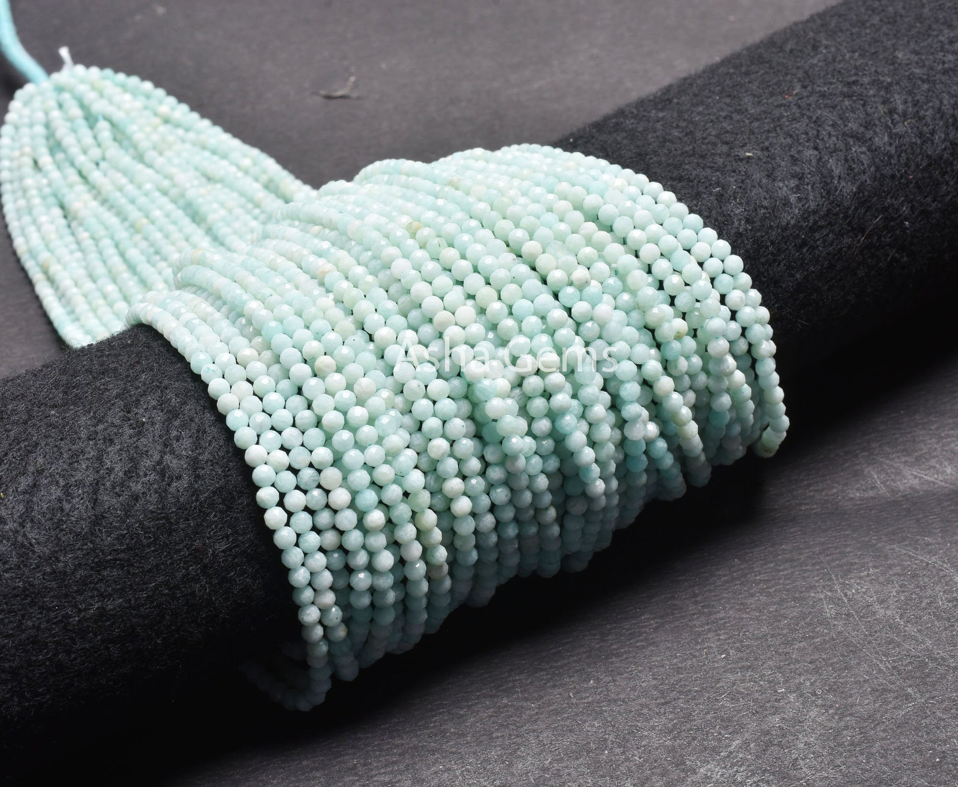 3.6 mm Natural Amazonite Micro Cut Round Gemstone Beads, Fine Blue Amazonite Machine Cut Round Ball Bead, Amazonite Bead Jewelry Crafts SALE