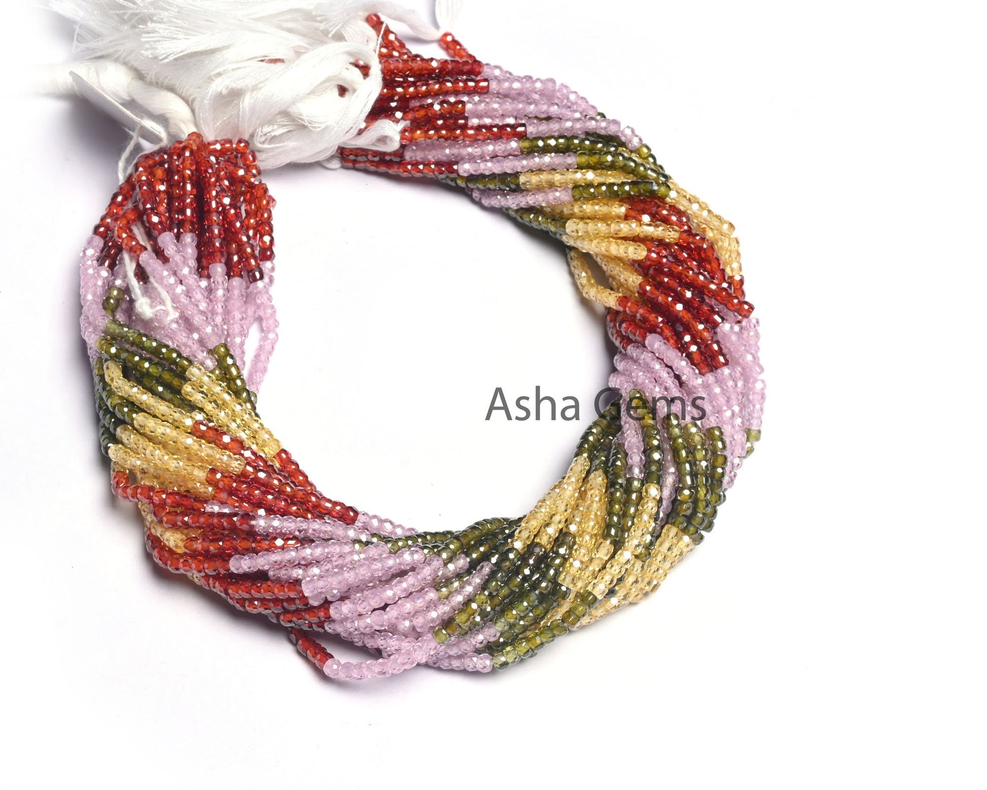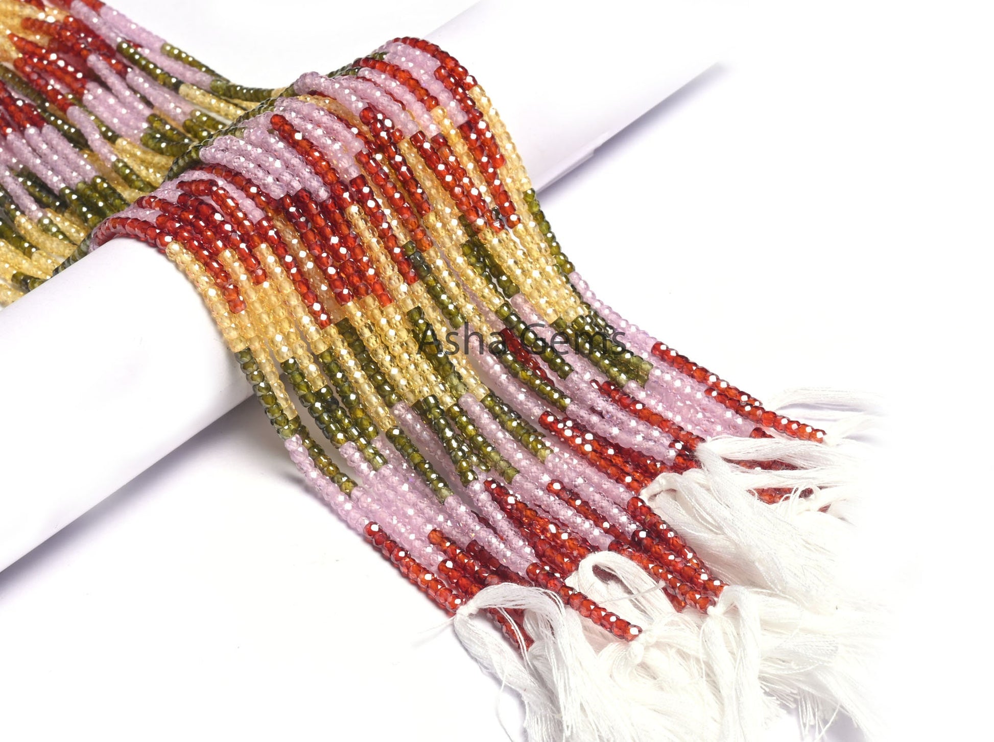 3 mm Multi Color Zircon Micro Cut Faceted Rondelle Beads, Shaded Cubic zirconia Beads,12.5"Zircon Machine Cut Bead Jewelry Making Craft SALE
