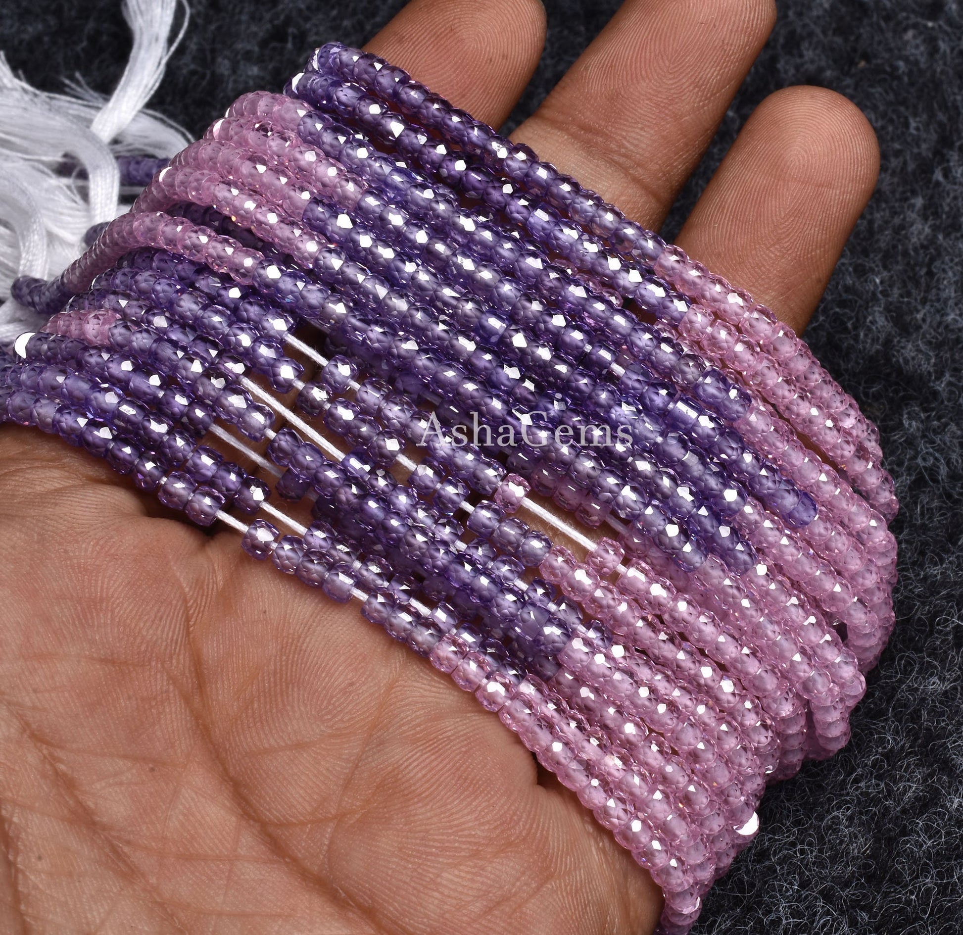 3 mm Shaded pink Blue zircon faceted rondelle shape beads,13" Strand multi cubic Zircon Micro cut Beads, Zircon Micro Faceted Rondelle Bead