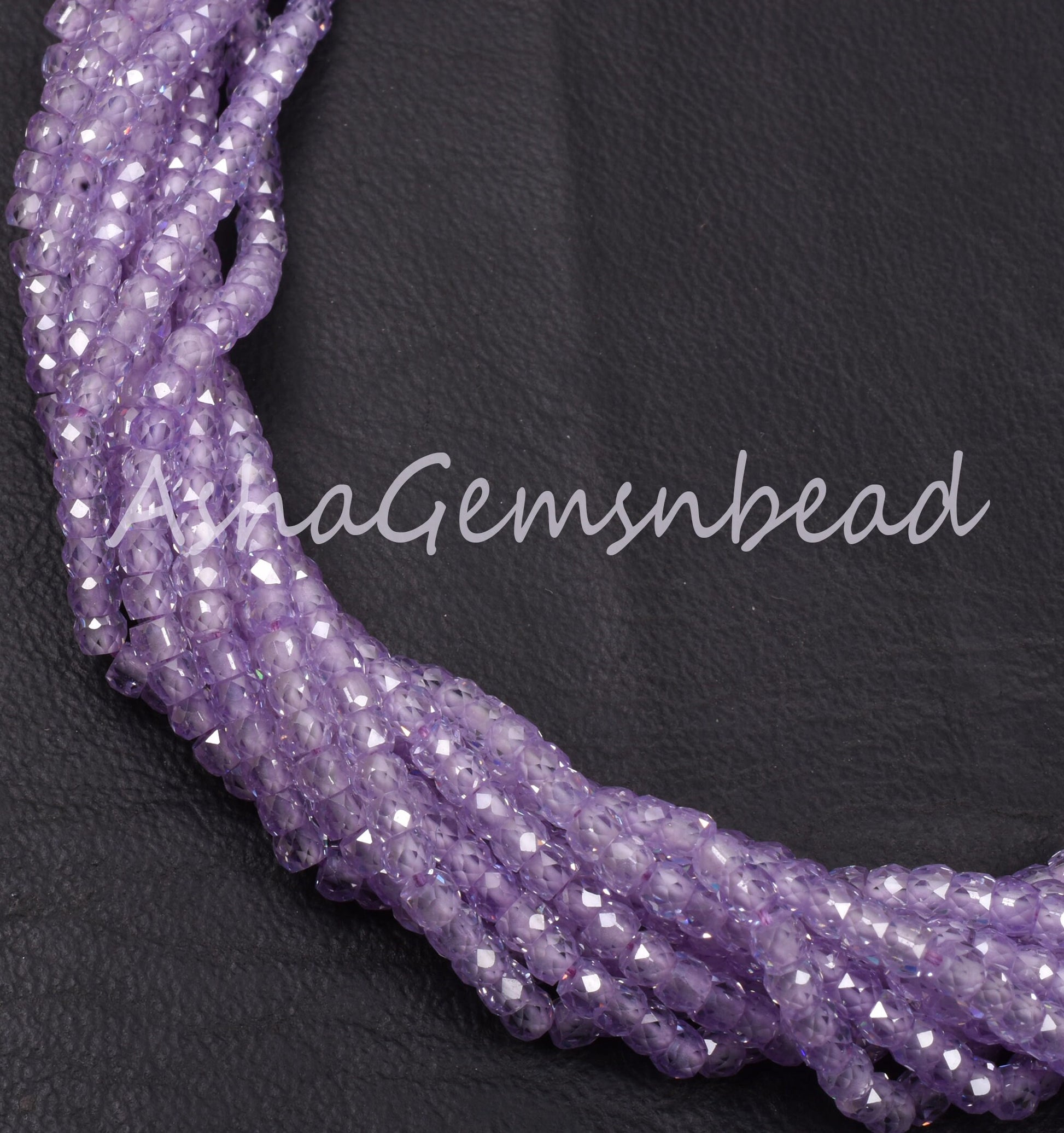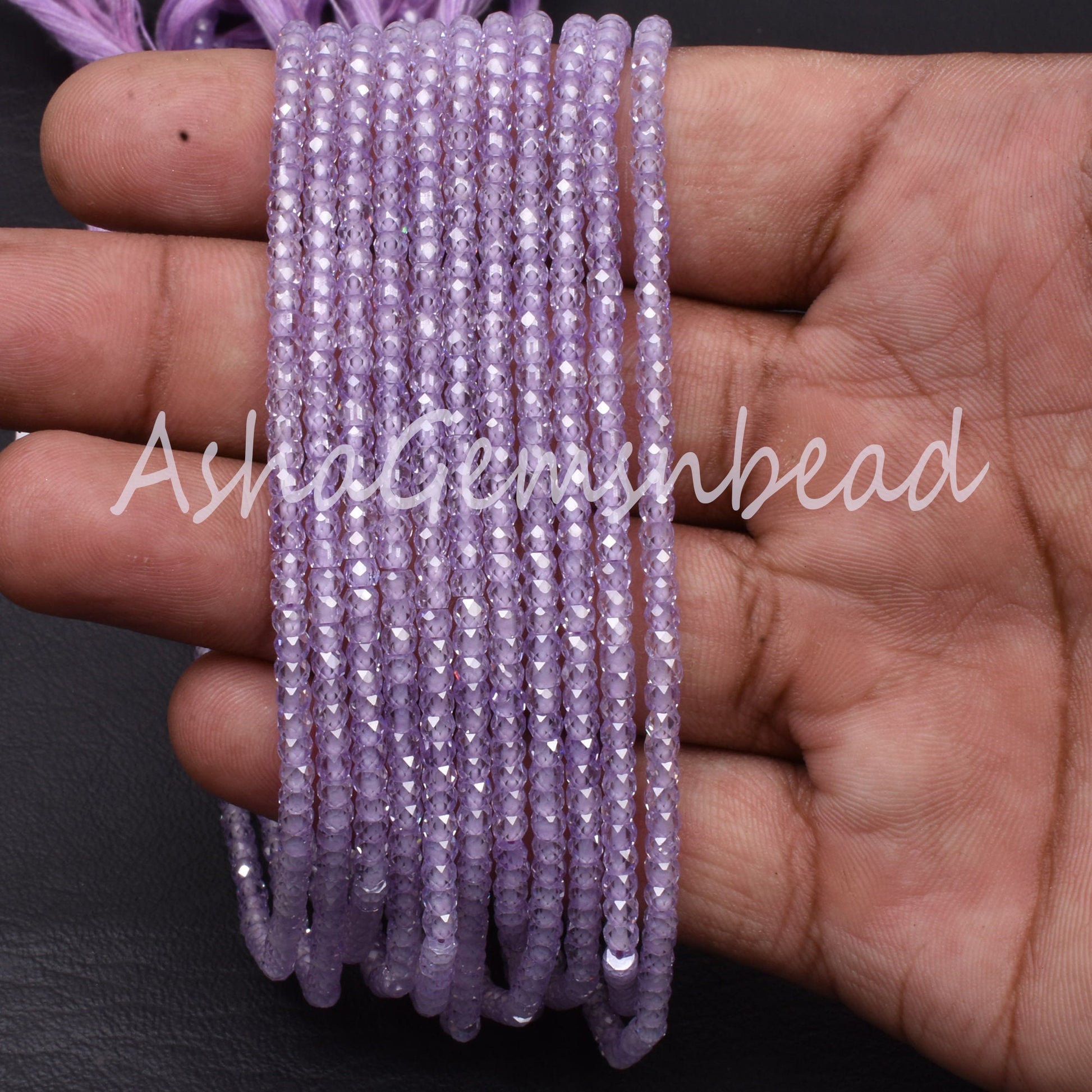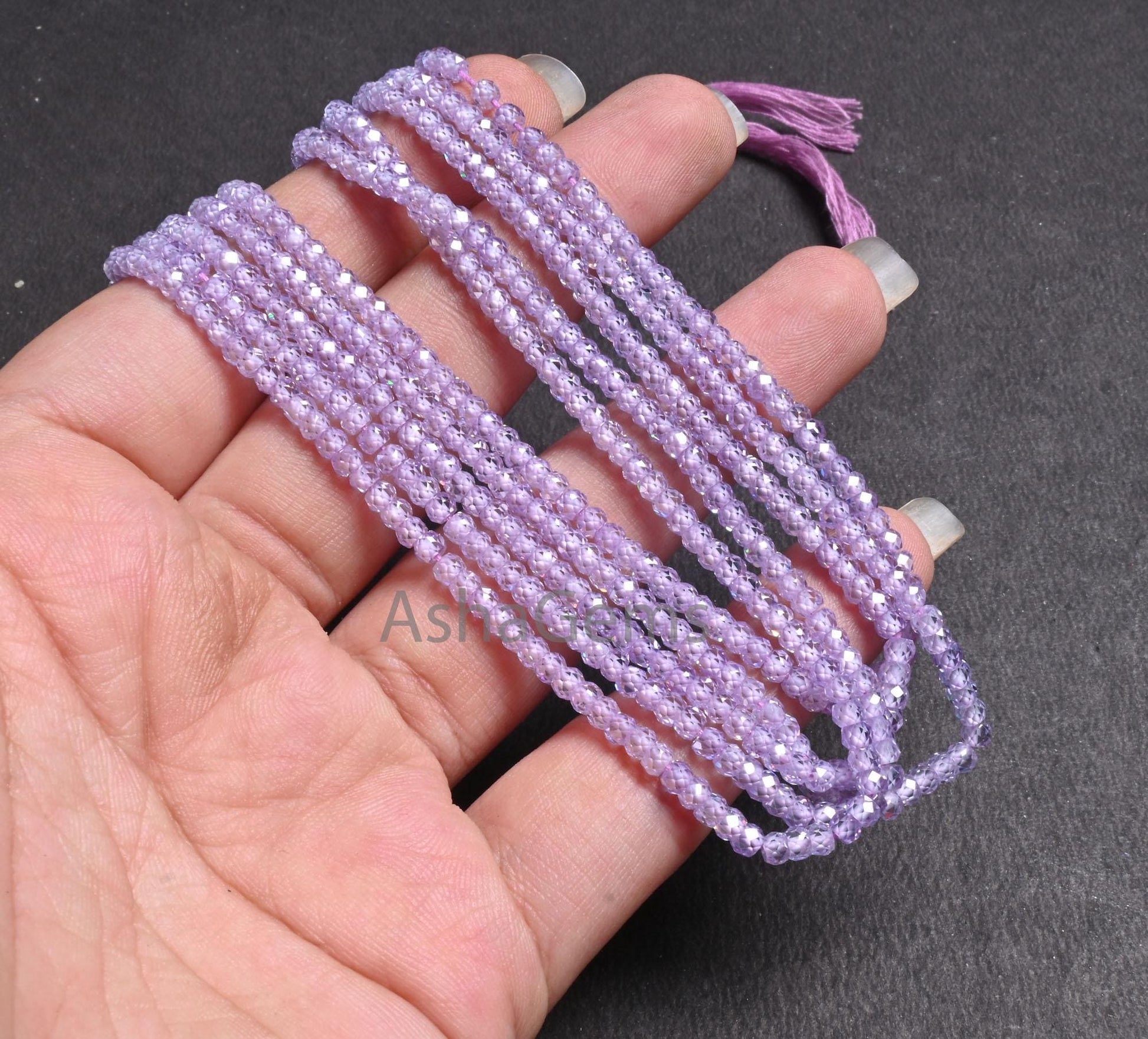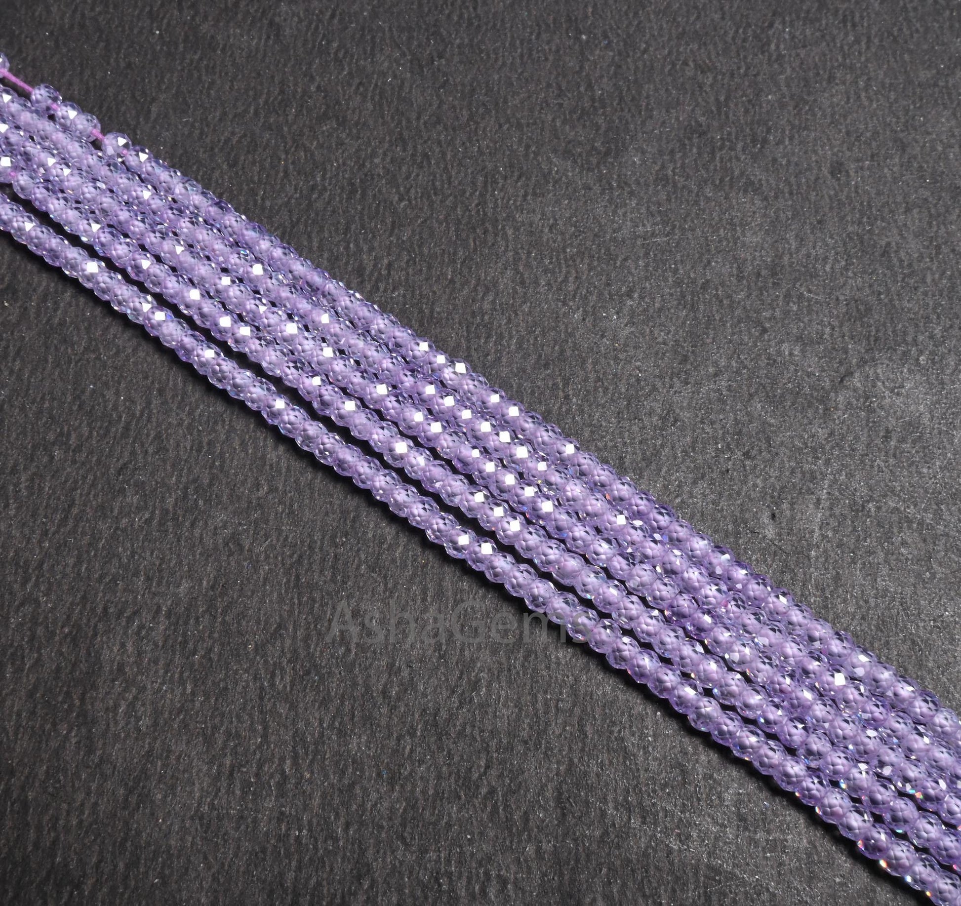 3 mm Wonderful Light purple Lavender Zircon Machine Cut Rondelle Beads, 13" Cubic zircon Micro Faceted Rondelle Beads Jewelry Craft SALE