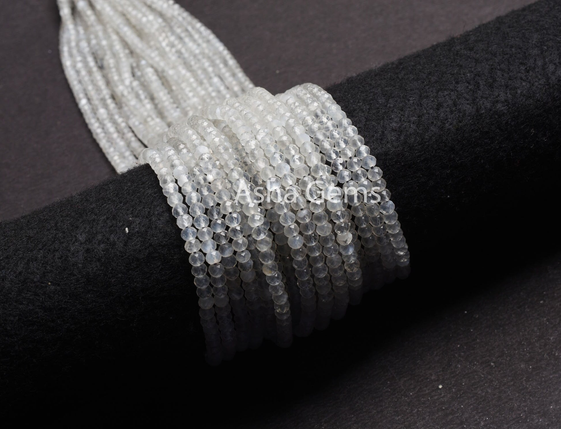 4.25 mm AAA White Moonstone Micro Cut Faceted Rondelle Beads,Top Quality Moonstone Bead,13.5" Rare Translucent White Moonstone Bead Jewelry
