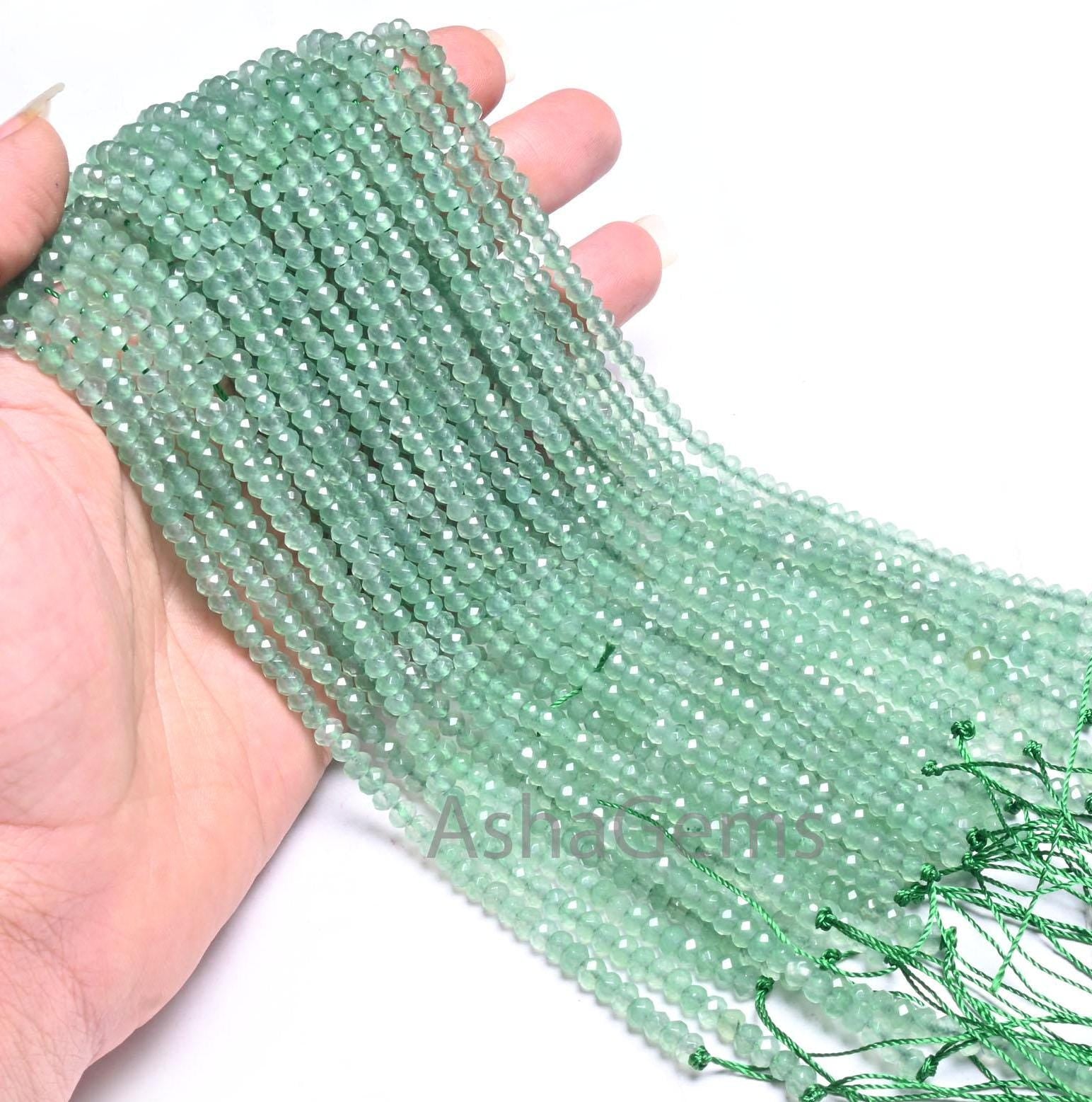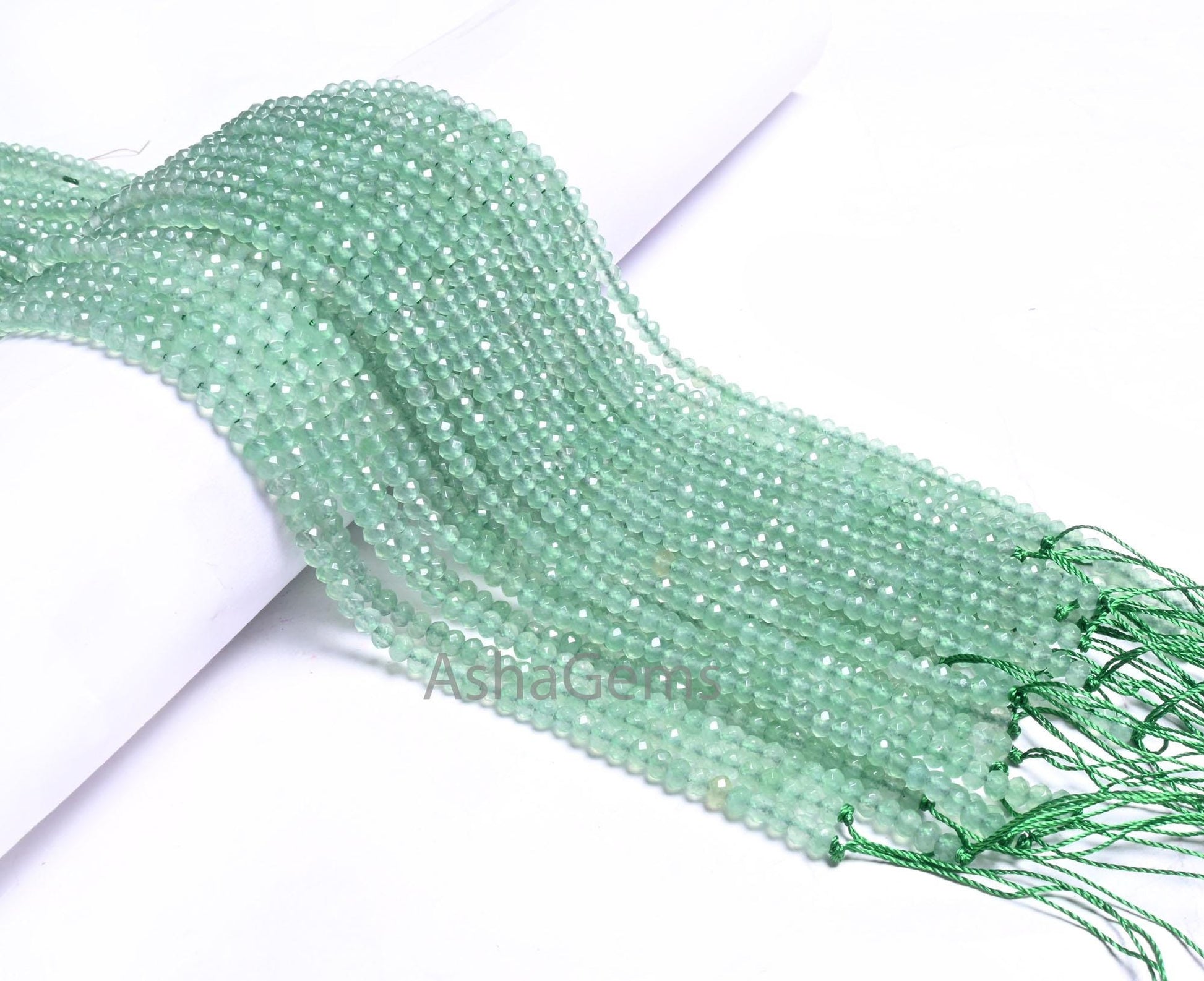 4.5 mm Beautiful Light Green Jade Quartz Faceted Gemstone Beads, Fine Green Jade Machine Cut Rondelle Beads, Jade Beads Jewelry Crafts SALE