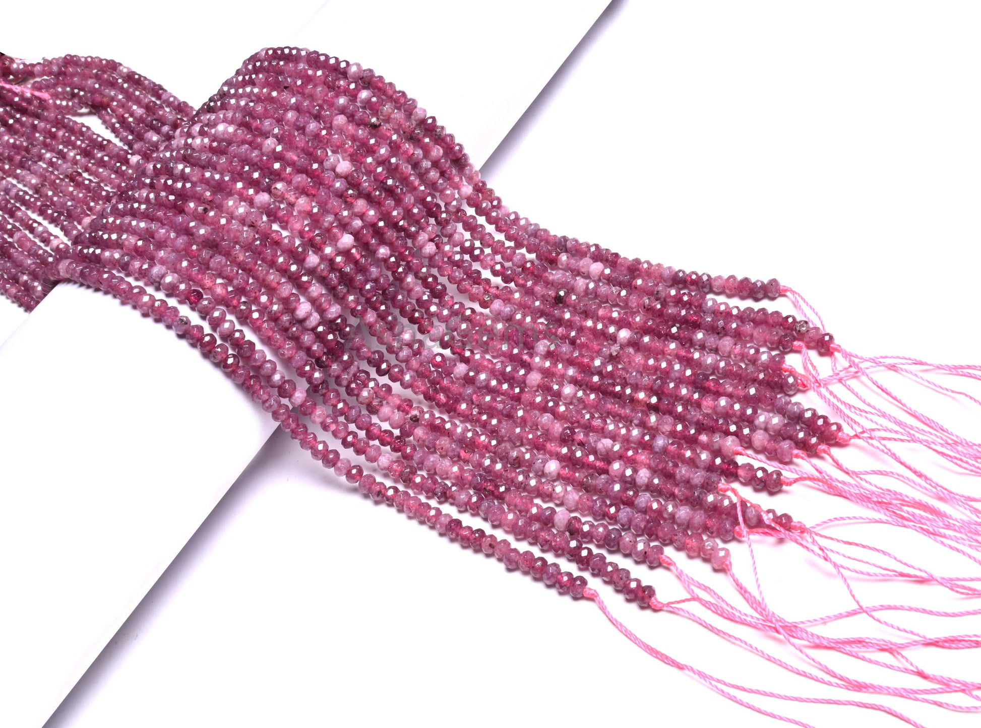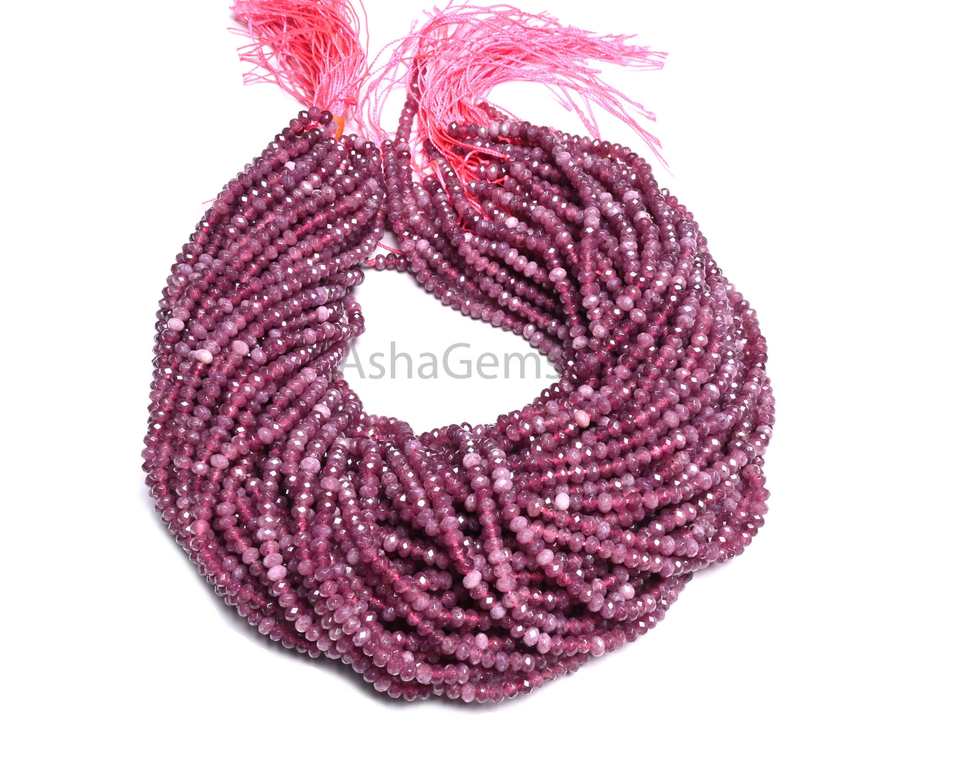 - 4.5 mm Fine Pink Jade Quartz faceted Rondelle Shape Beads, Magenta Ruby Pink Jade Quartz machine cut Gemstone Loose Bead Jewelry Making SALE