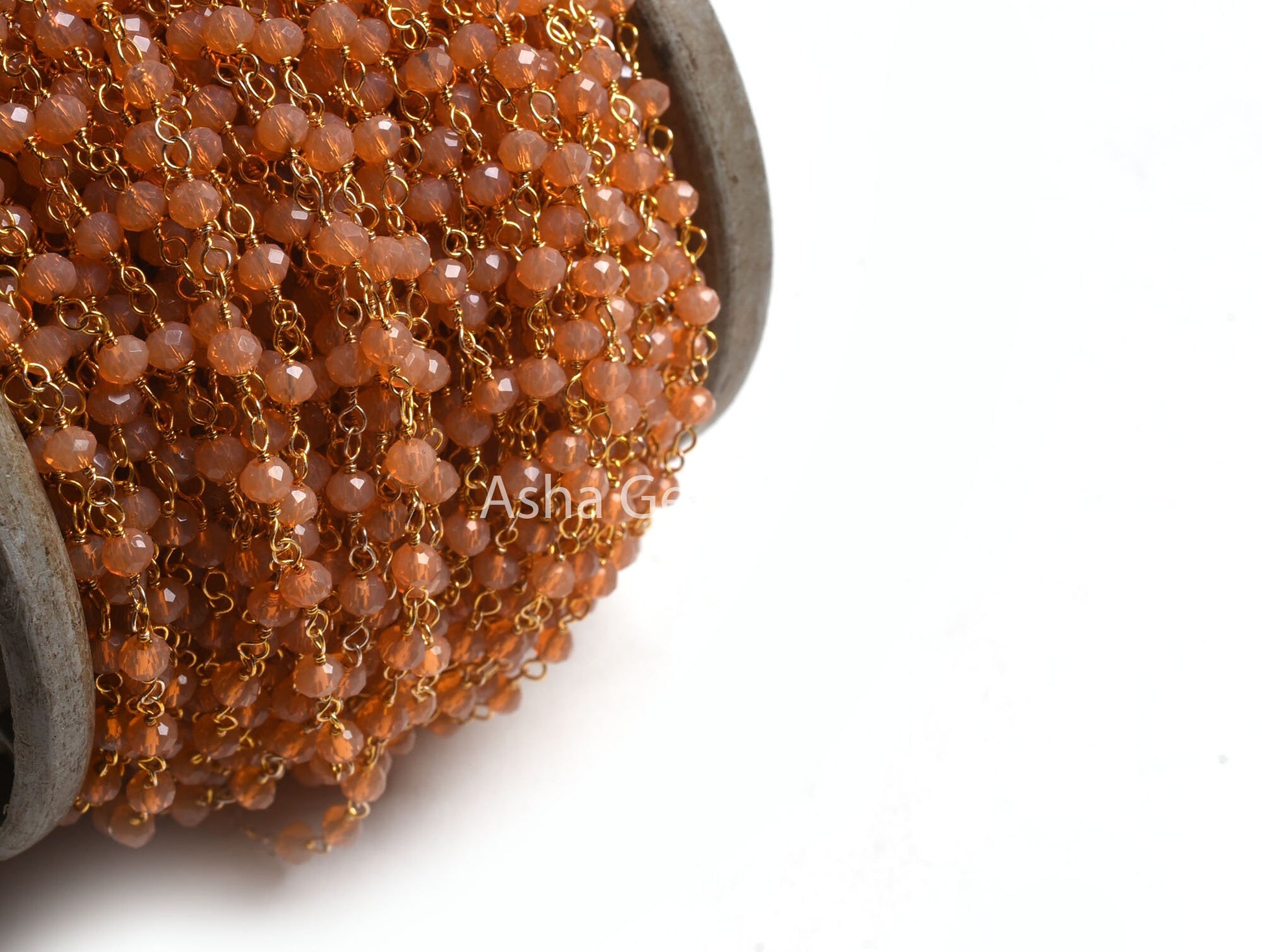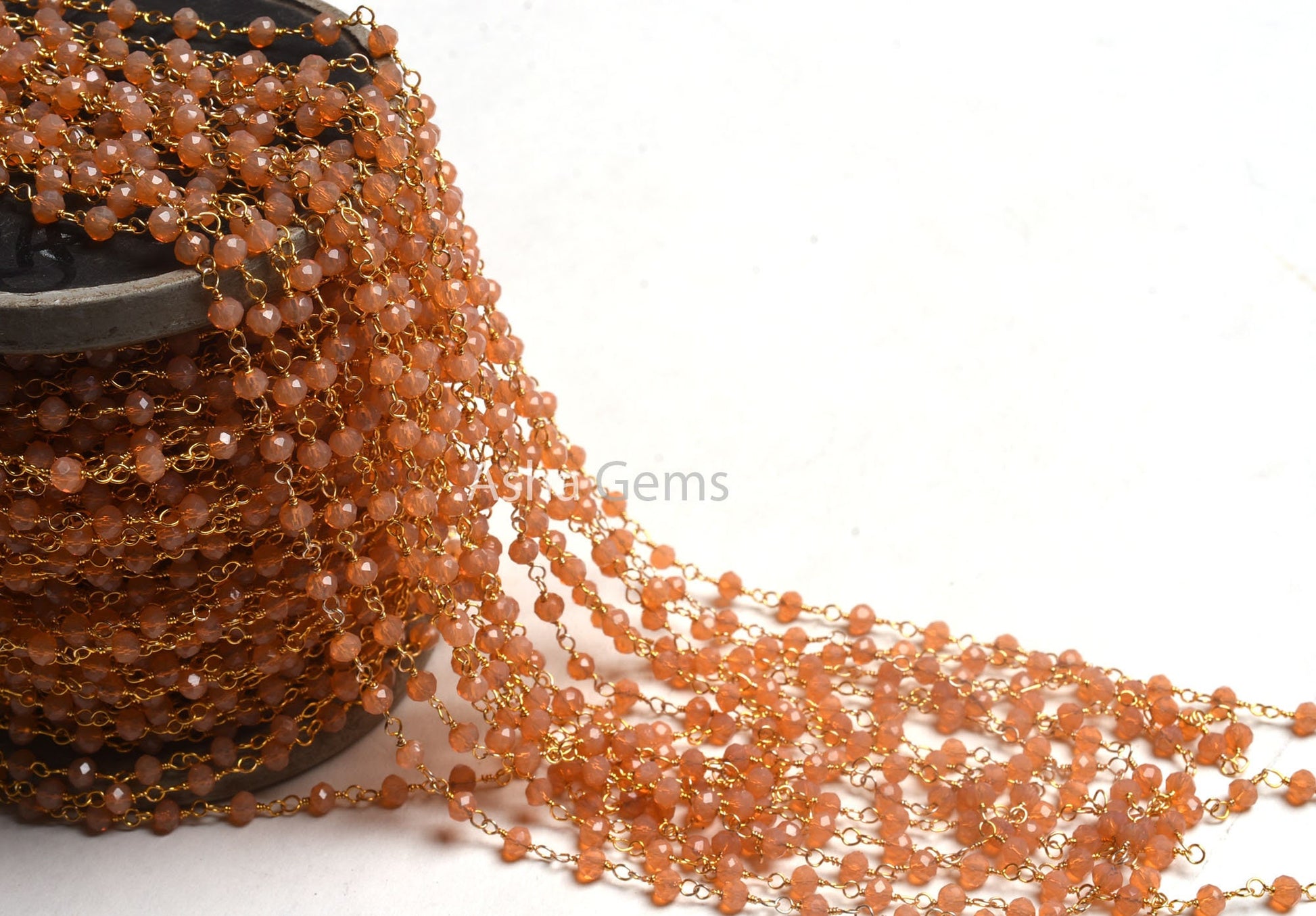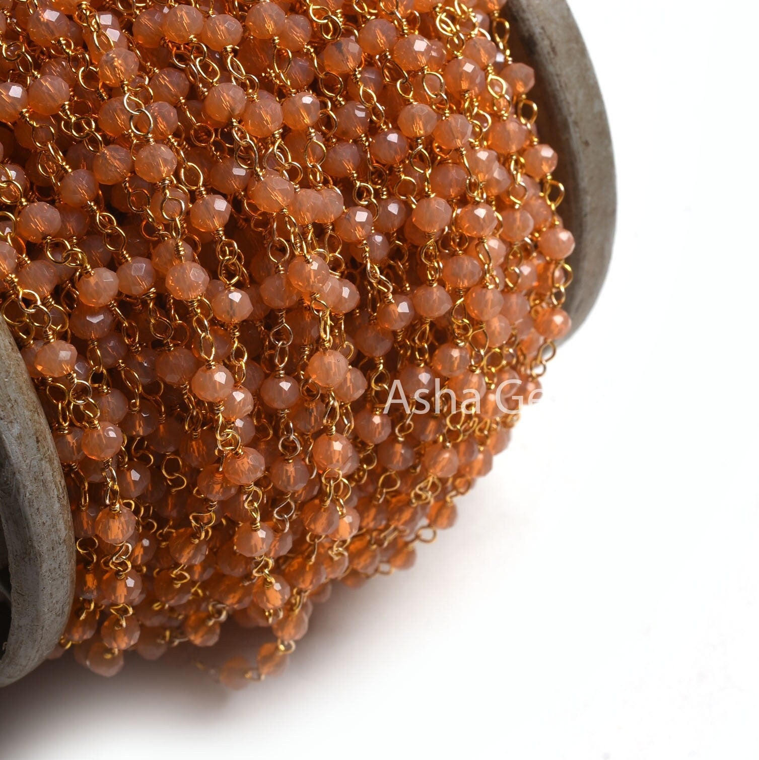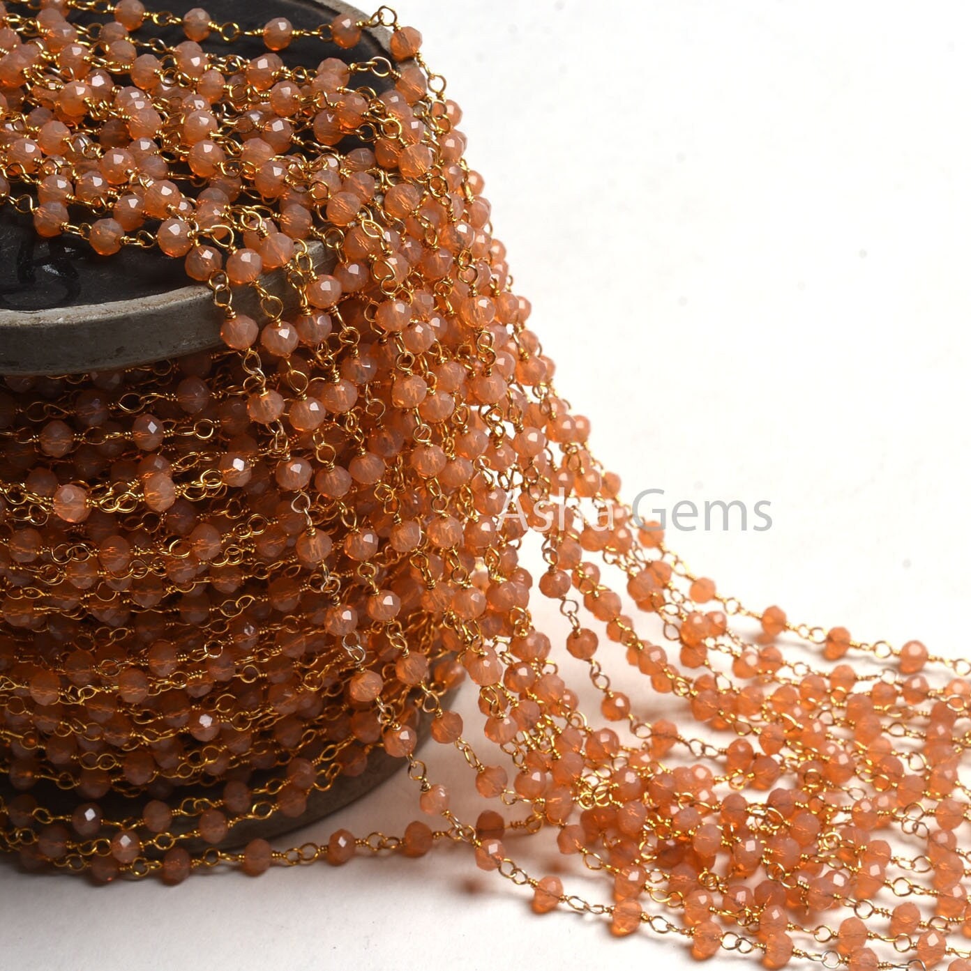 4 mm AAA Peach Moonstone Hydro Faceted Rondelle Beads Rosary Chain, Gold Plated Wire Wrap micro cut Beaded Handmade Chain Jewelry Craft SALE