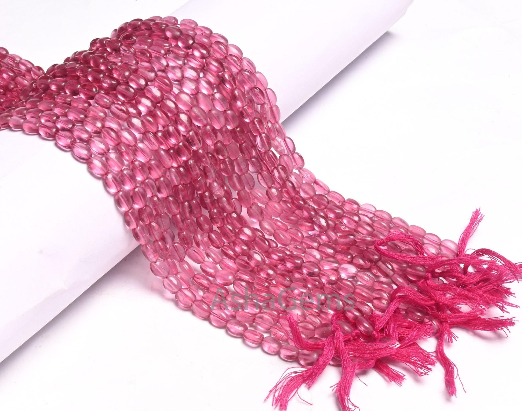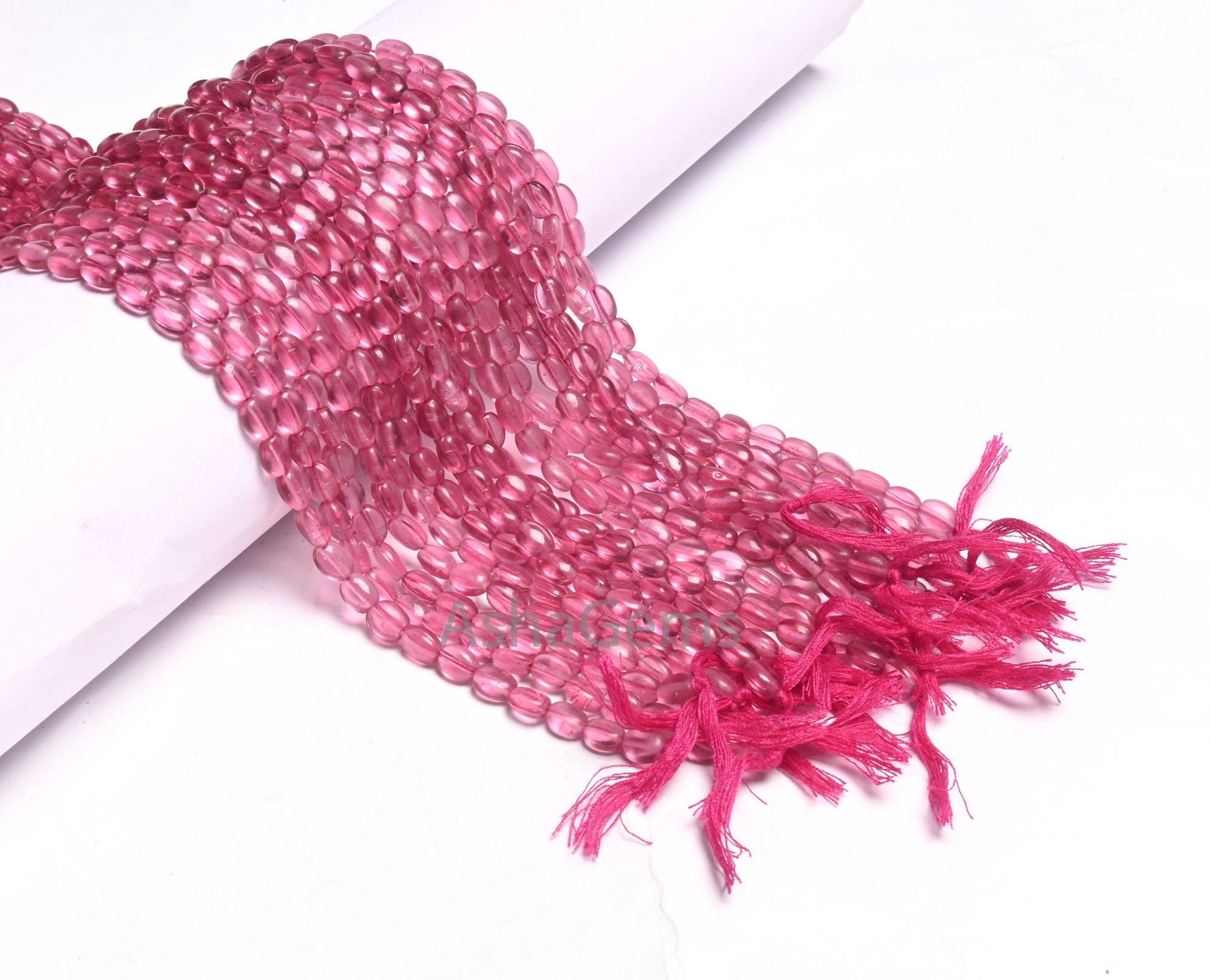 5.5-7.5mm Beautiful Pink Hydro Smooth Oval Shape Handmade Beads,13" AAA Pink Rubellite Color Hydro Plain Oval Bead Jewelry making Craft SALE