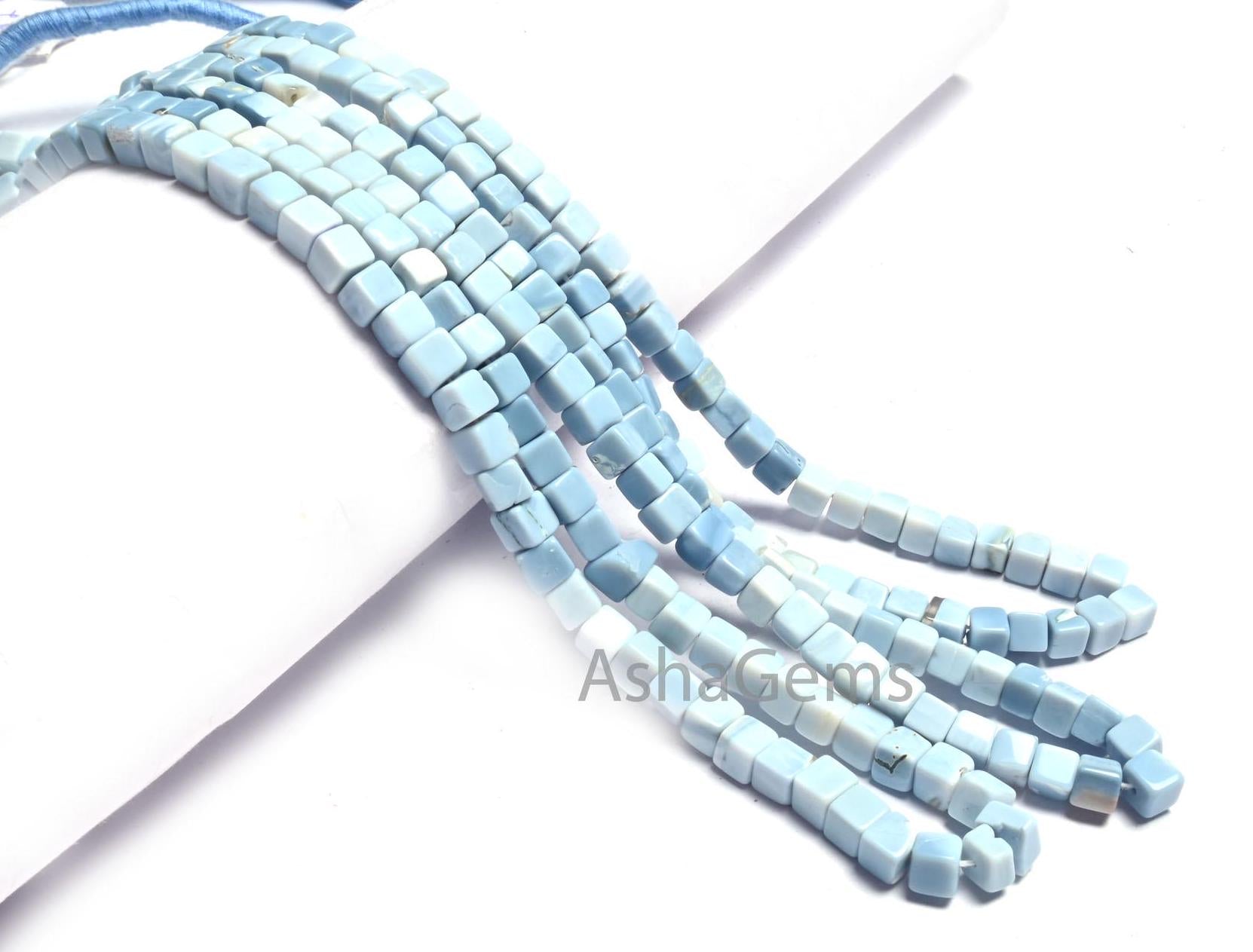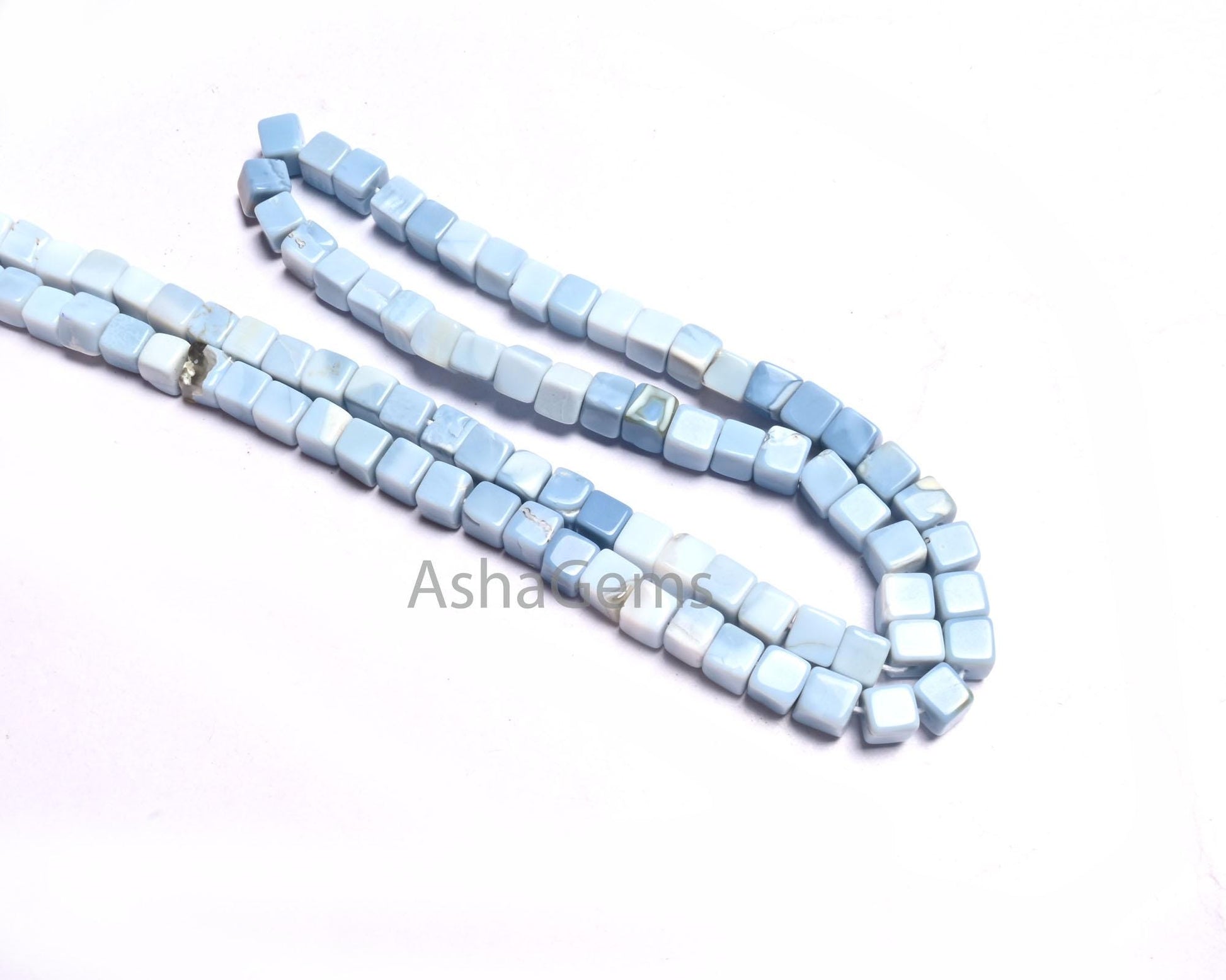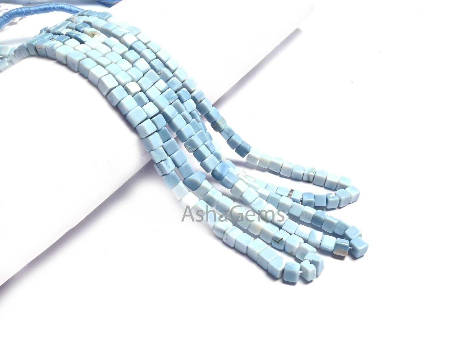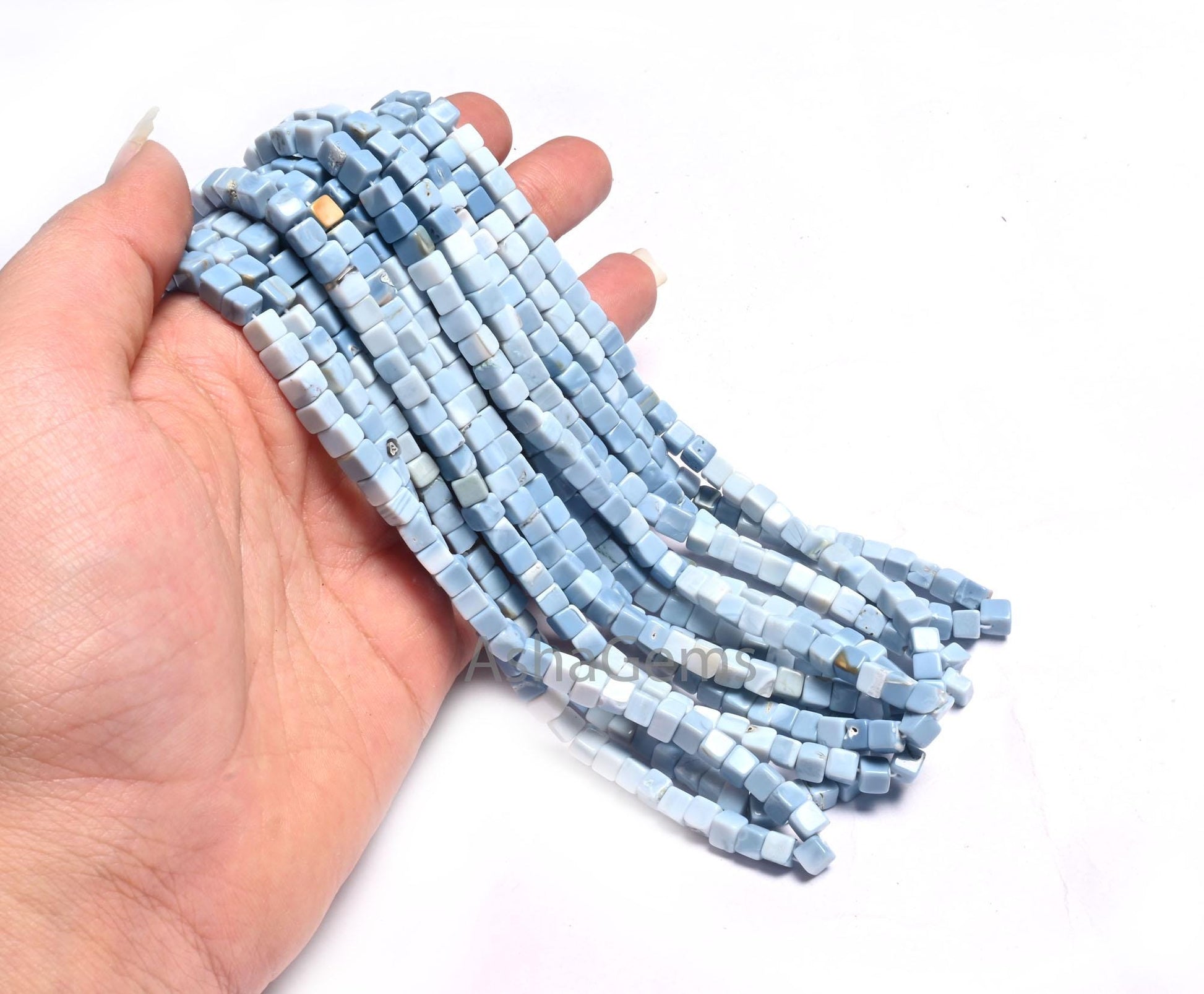 5 mm Blue Oregon Opal Smooth Box Shape Beads,8/16" Shaded Blue Opal Beads, Opal Plain 3D Cube Box Handmade Gemstone Beads Jewelry Craft Sale