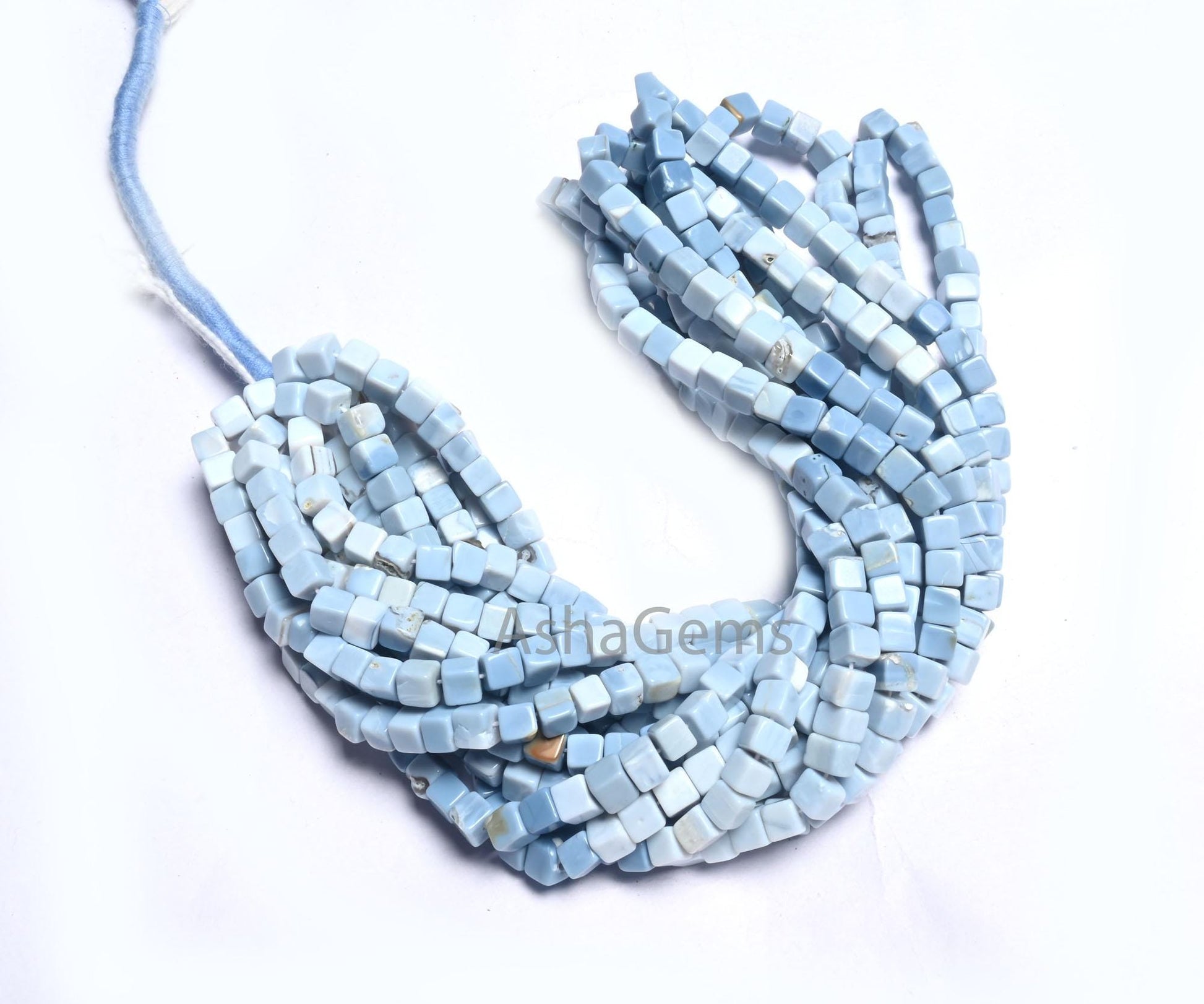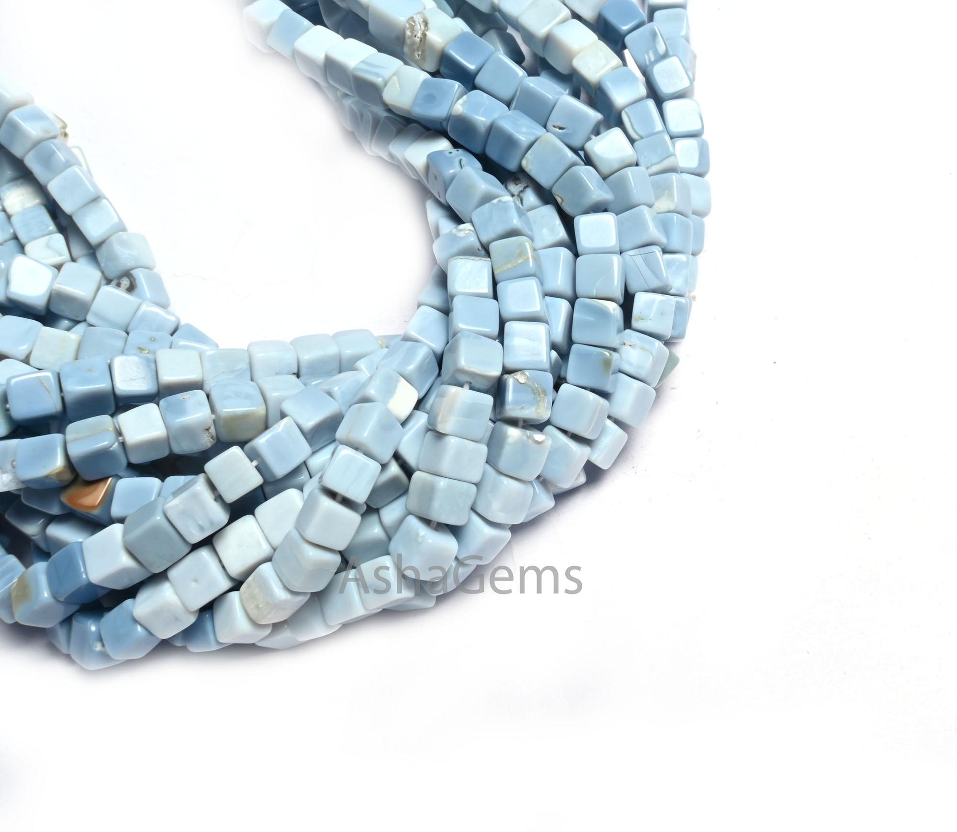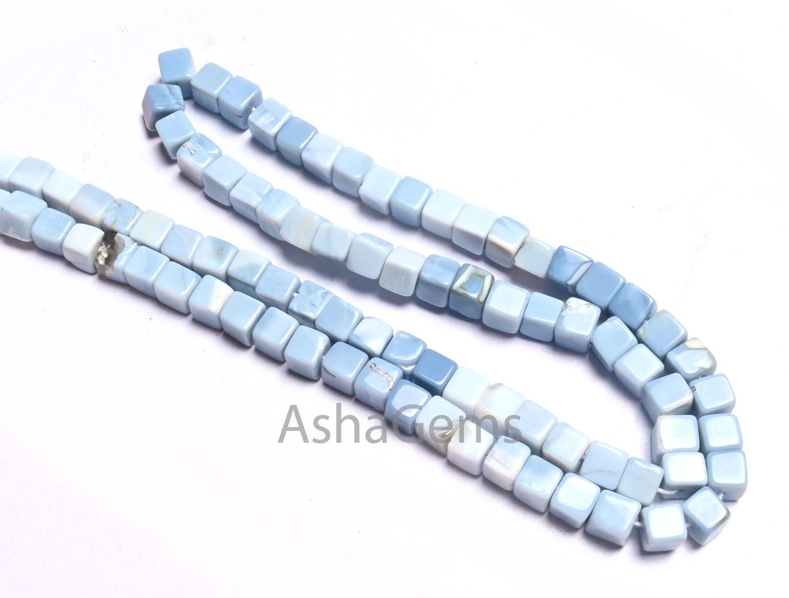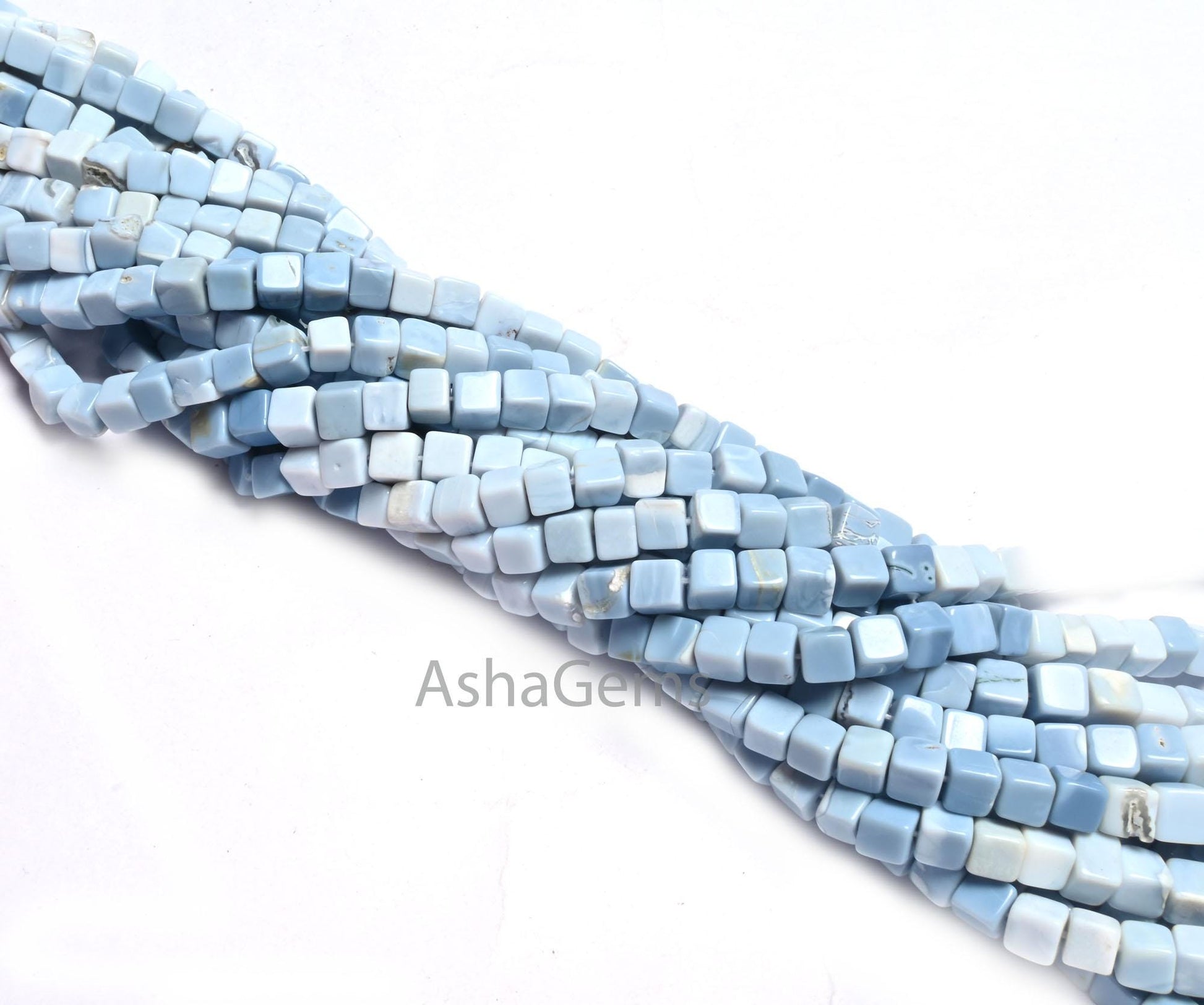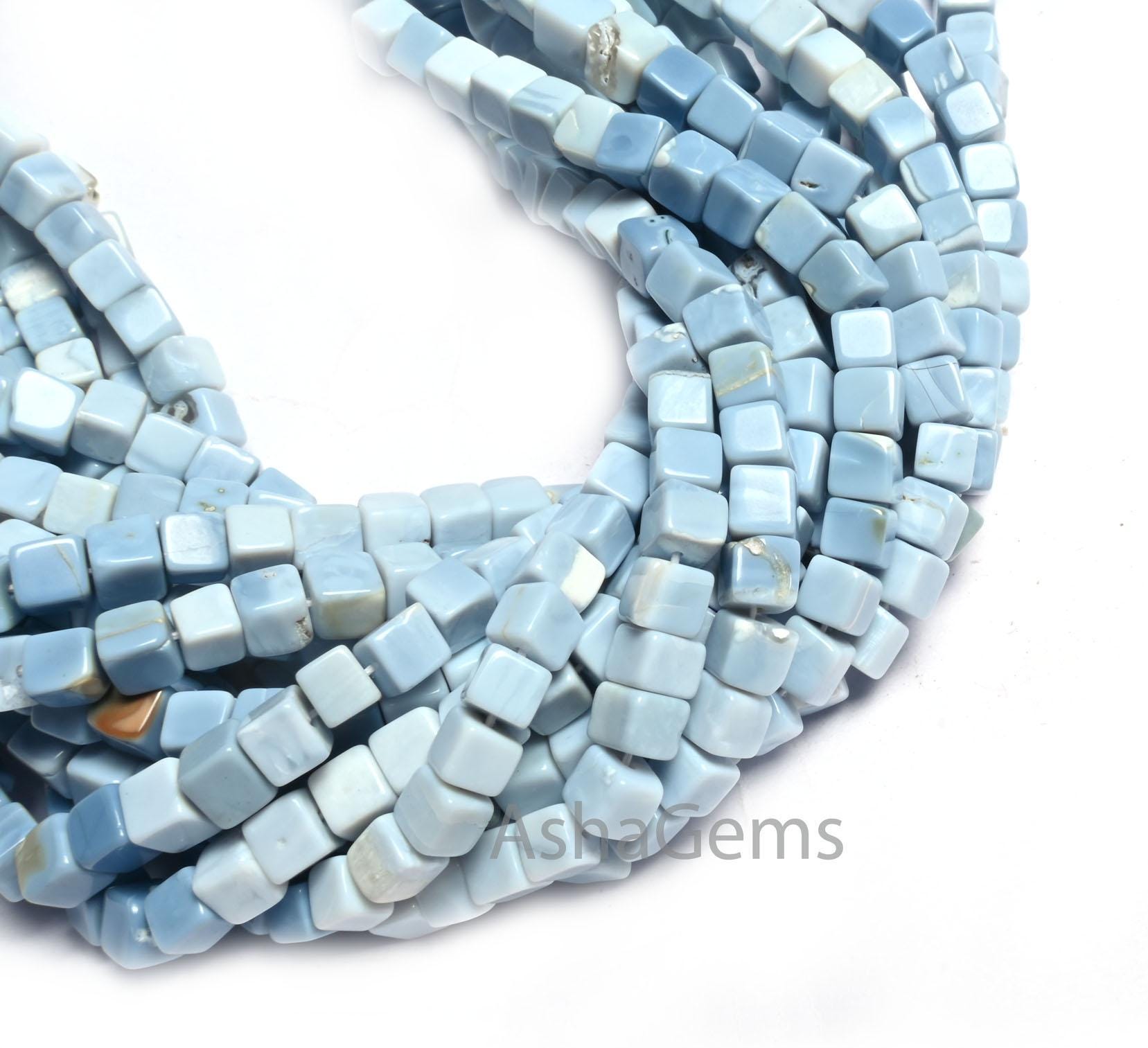 5 mm Blue Oregon Opal Smooth Box Shape Beads,8/16" Shaded Blue Opal Beads, Opal Plain 3D Cube Box Handmade Gemstone Beads Jewelry Craft Sale