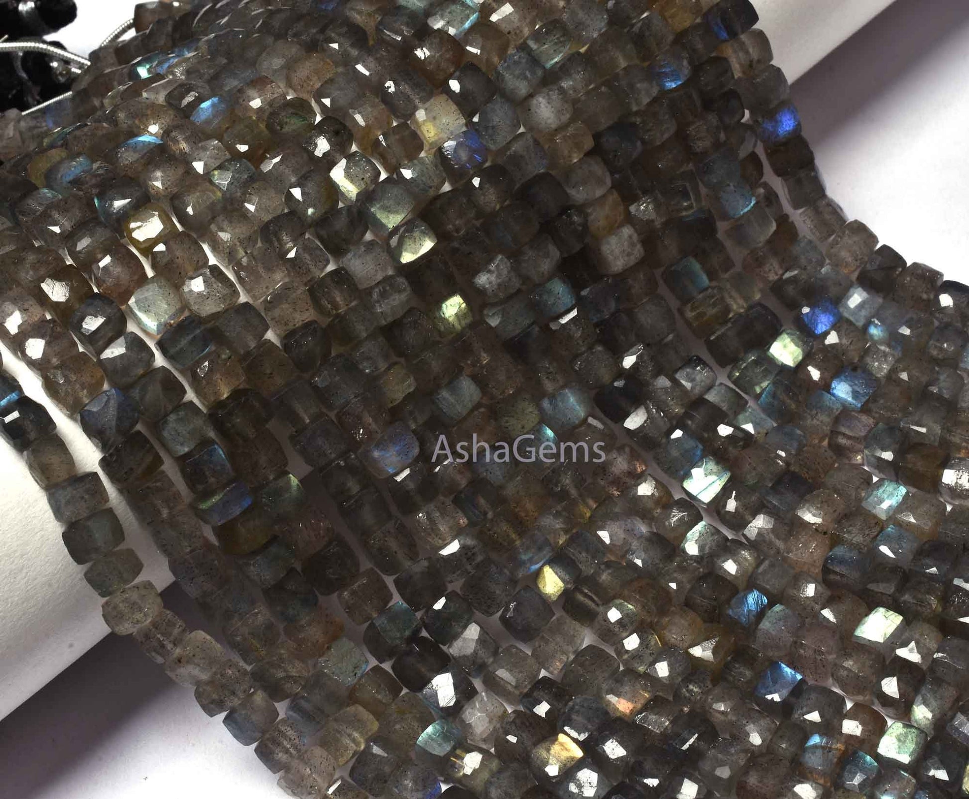5 mm Labradorite Faceted Cube Gemstone Beads,7" Strand Natural Fire ;abradorite Faceted 3D Cube Box Beads, Black rainbow Box beads Jewelry