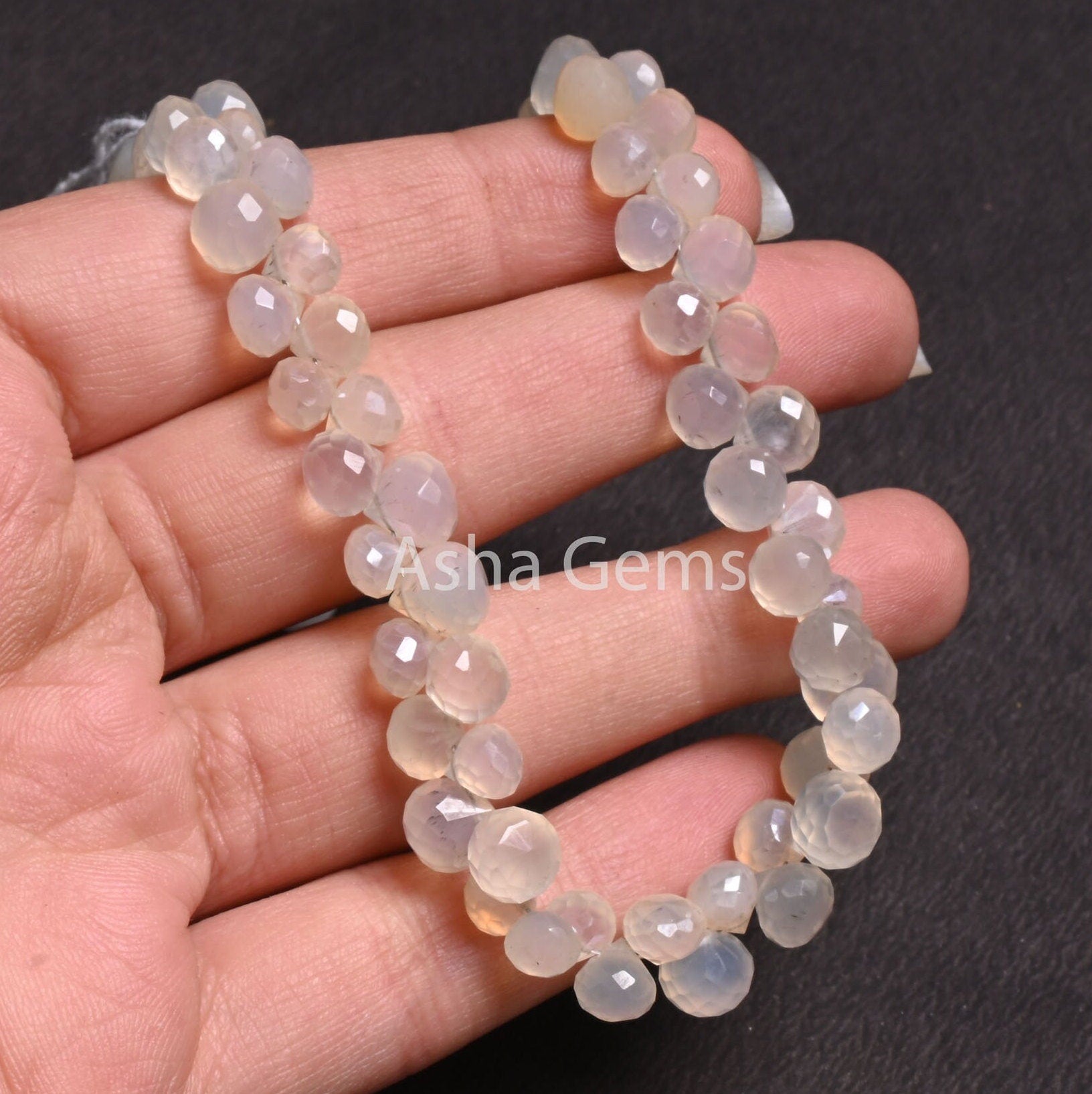 6-8 mm AAA Silver Coated White Chalcedony Onion Shape Beads,9" Strand Chalcedony Fancy Onion faceted Briolette Gemstone Bead Jewelry Makings