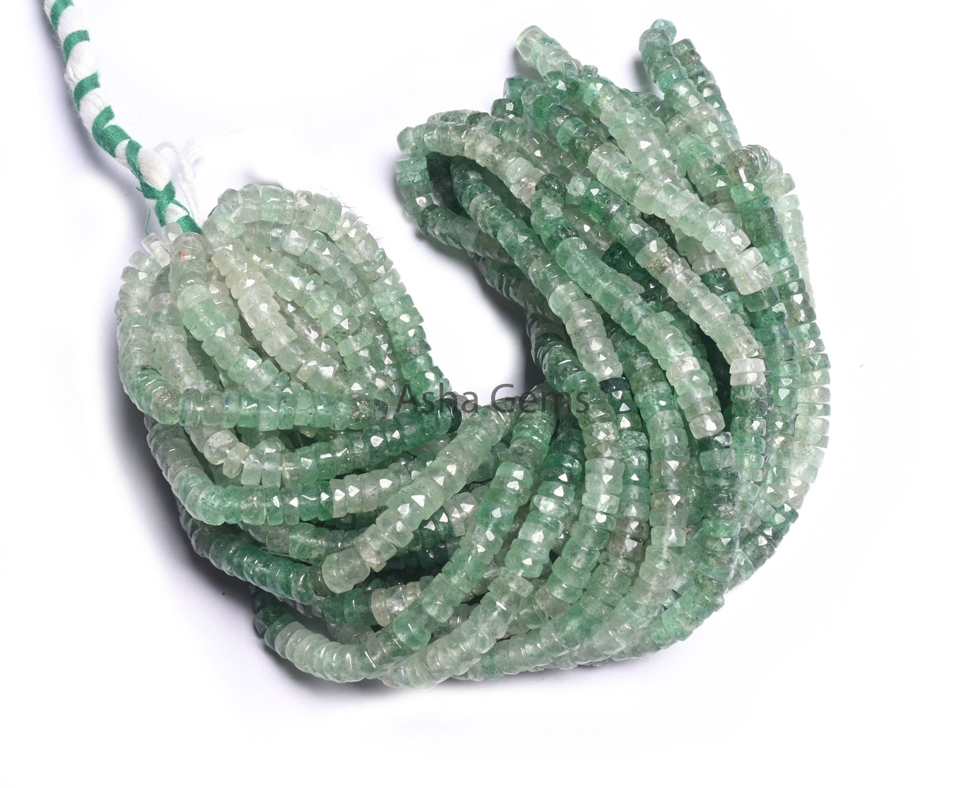 6 mm Beautiful Strawberry Quartz Faceted Flat Tyre Heishi Gemstone Beads, Fine Natural Shaded Green Strawberry Indian Cut Wheel Bead Jewelry